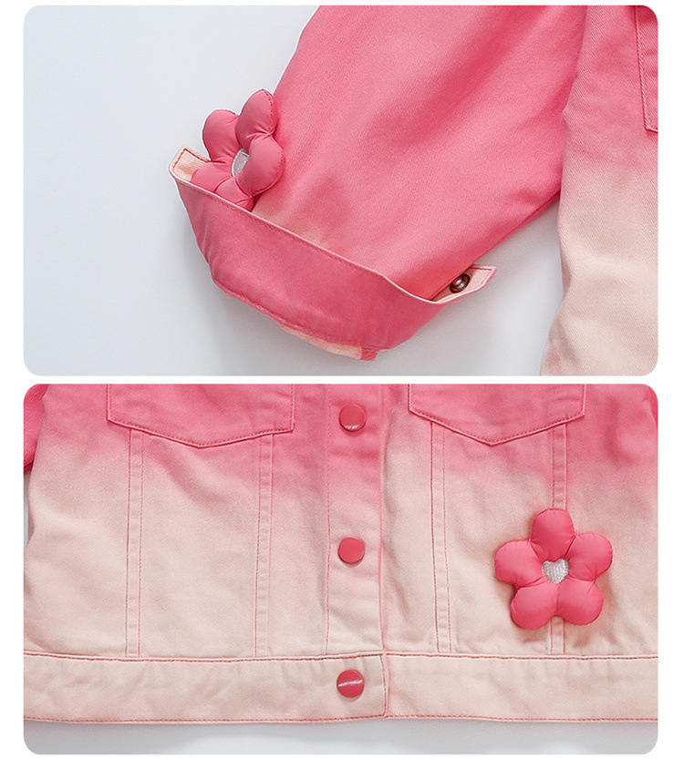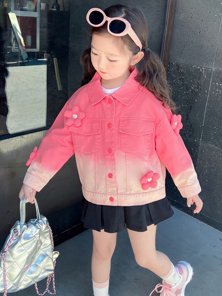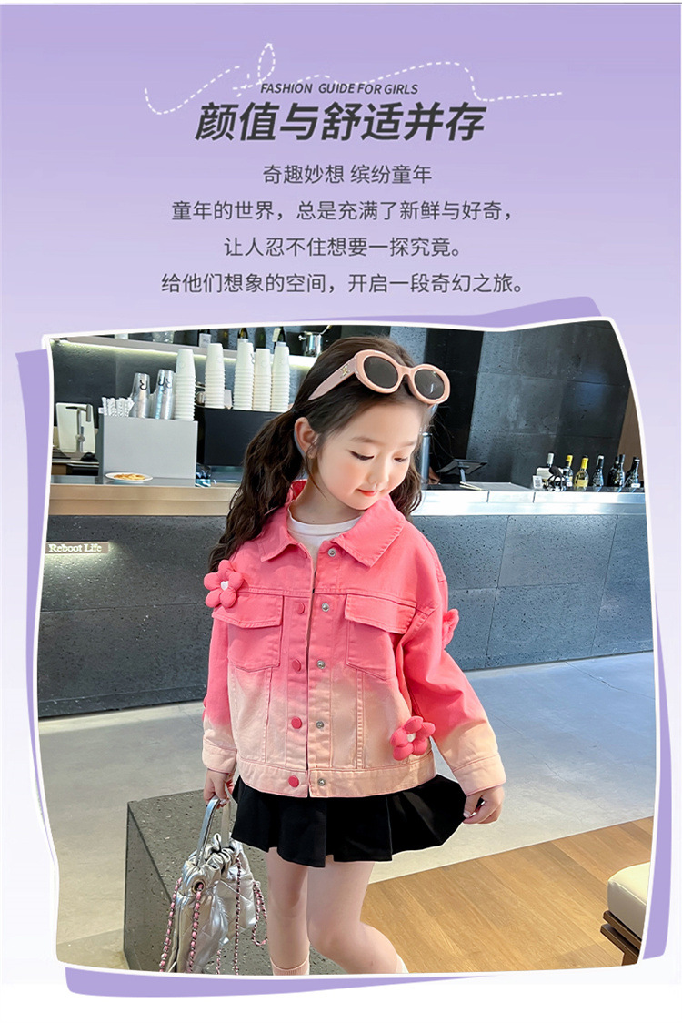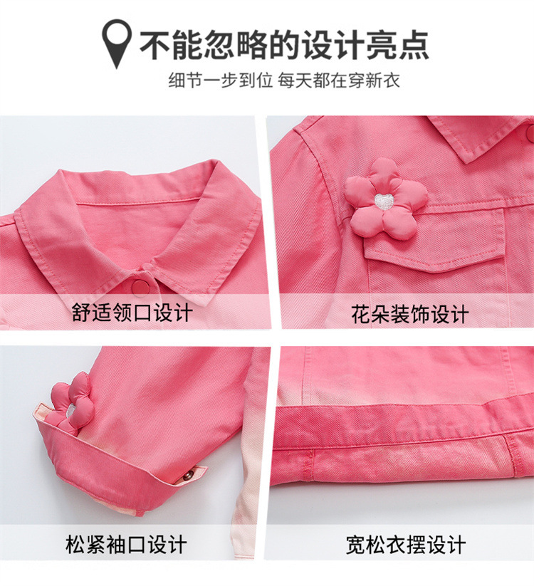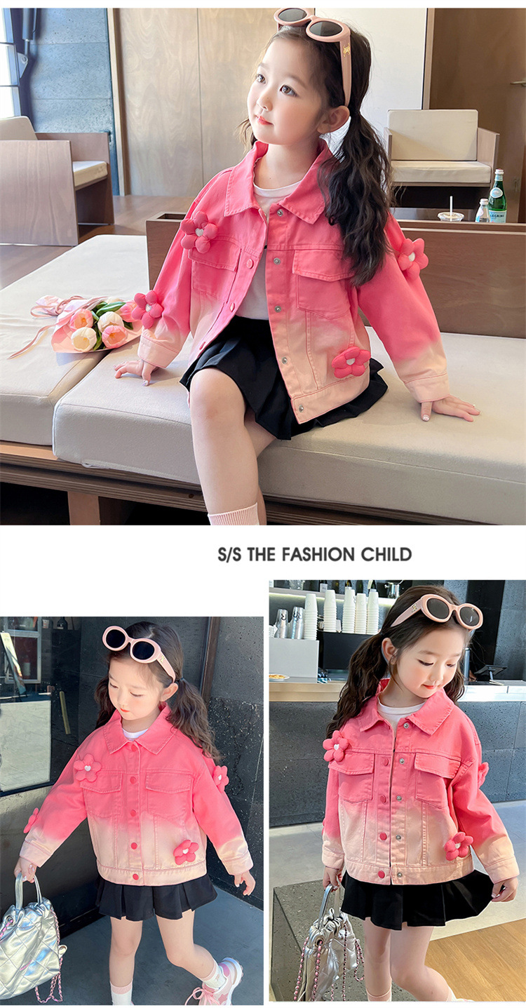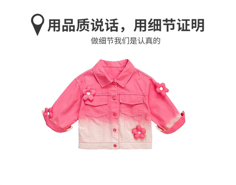 儿童秋装女童牛仔外套女孩渐变立体小花夹克上衣女宝2024新款衣服