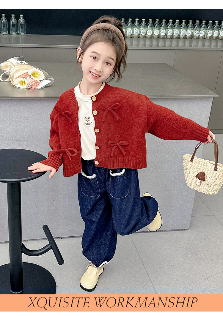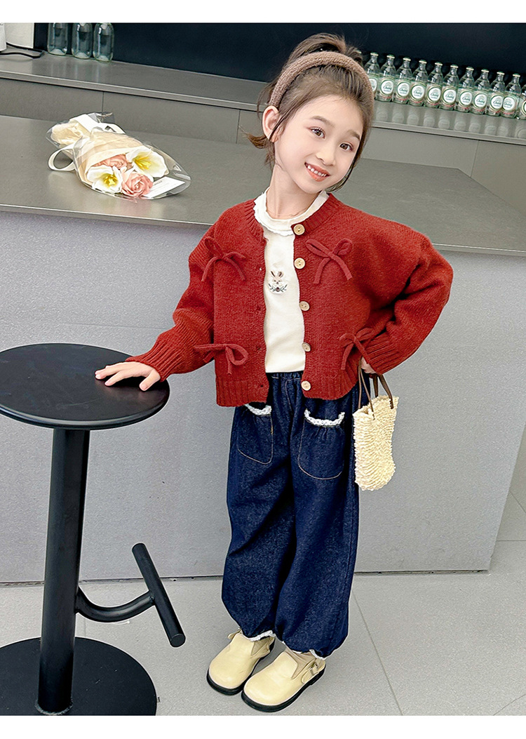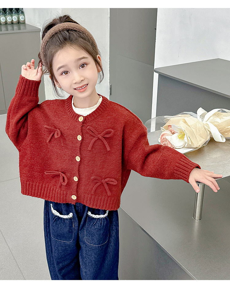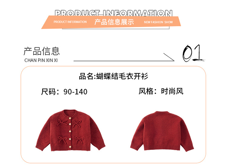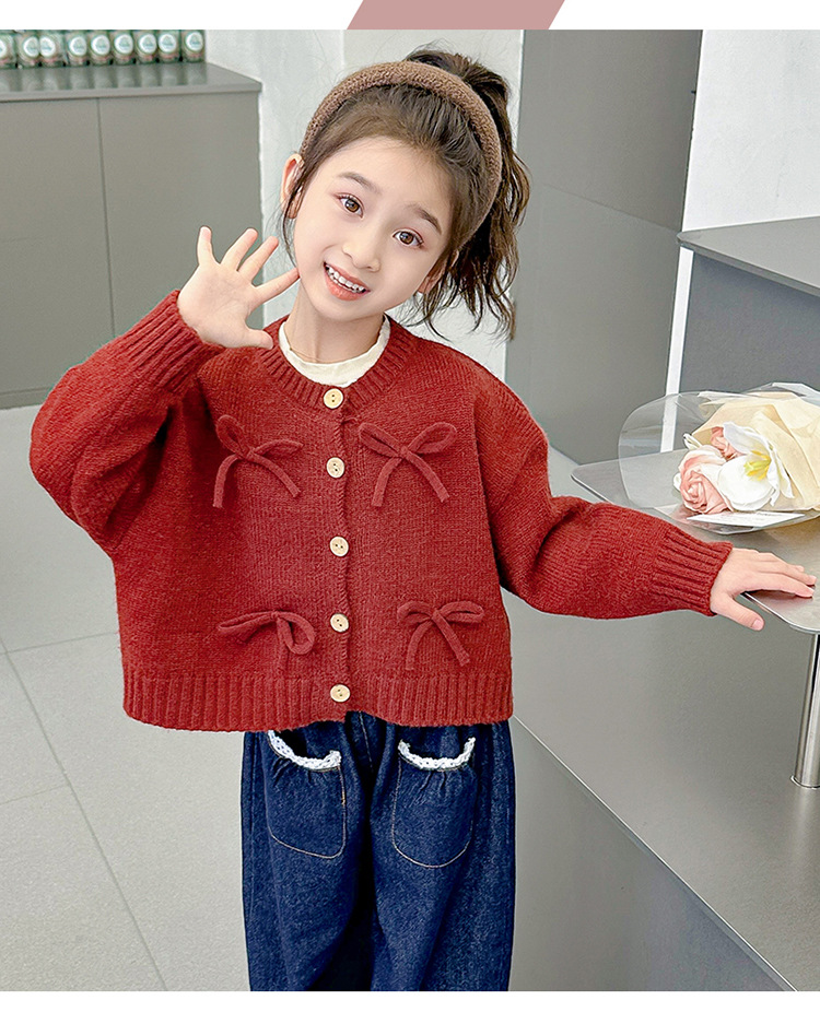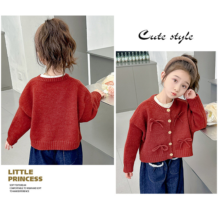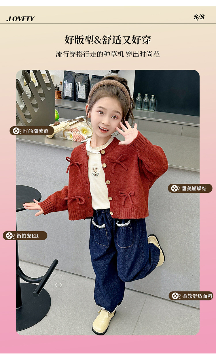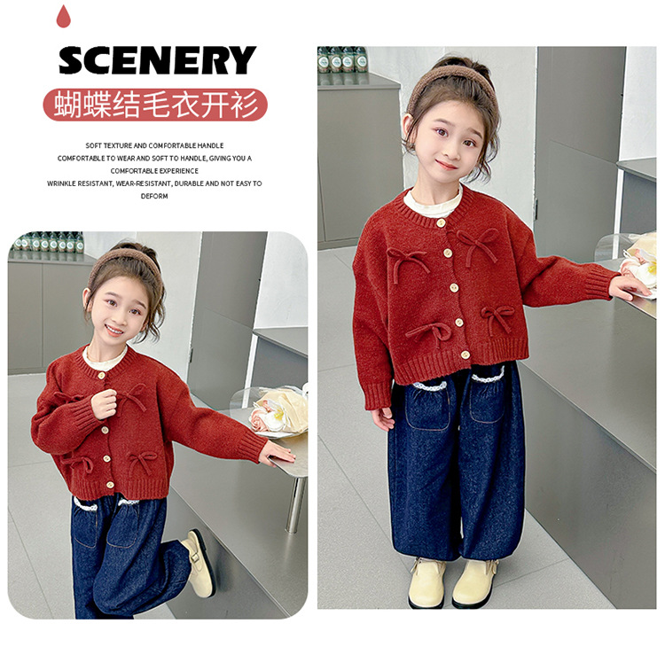 女小童蝴蝶结毛衣秋款2024新款女宝宝开衫外套春秋装小女孩针织衫