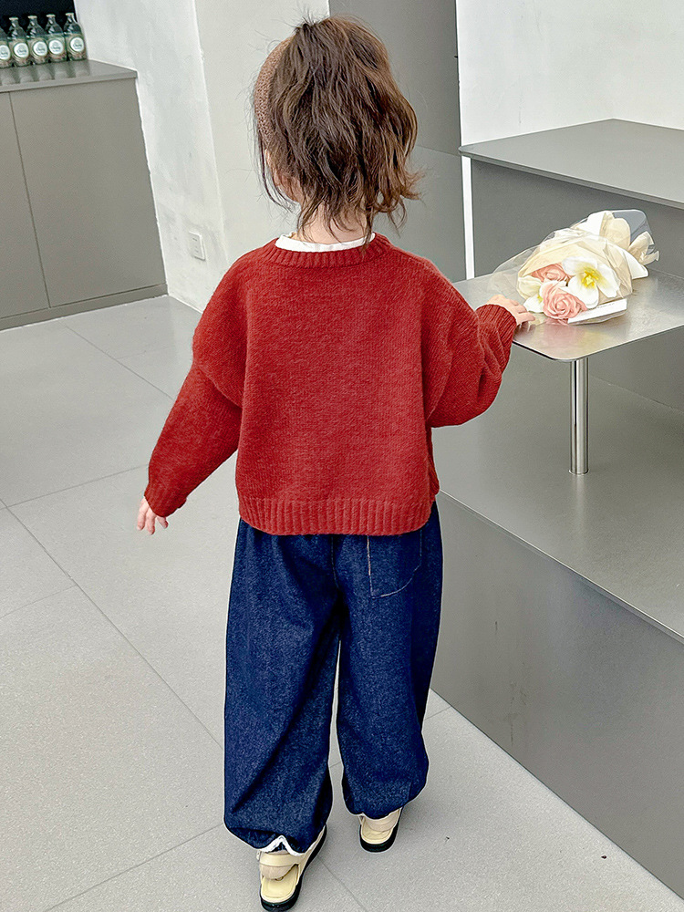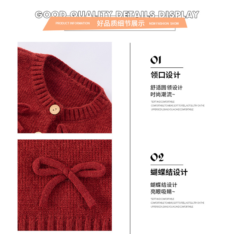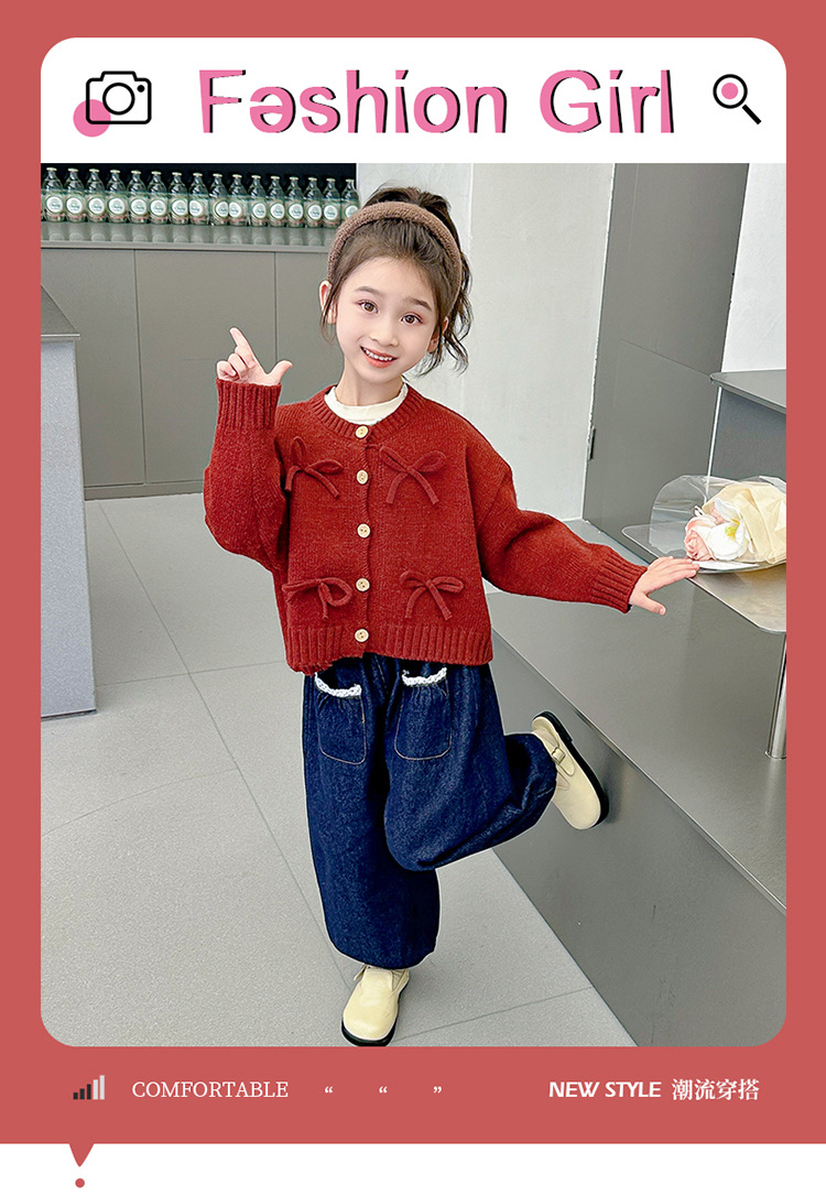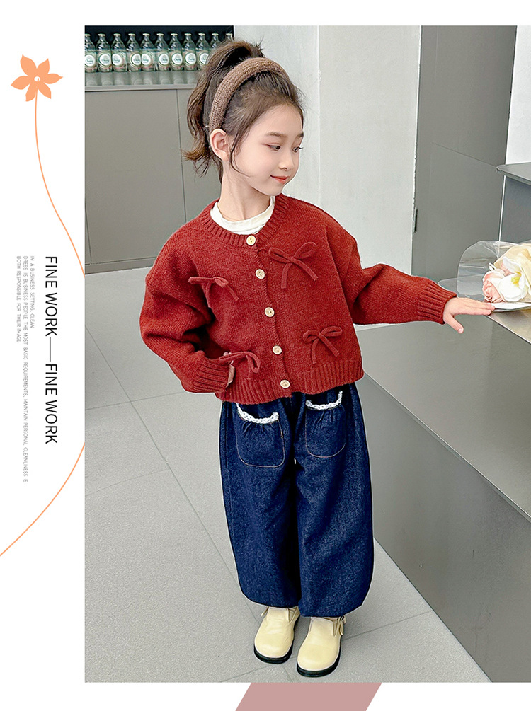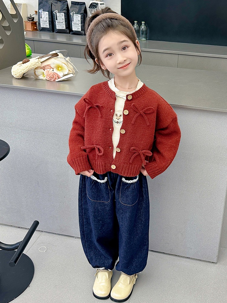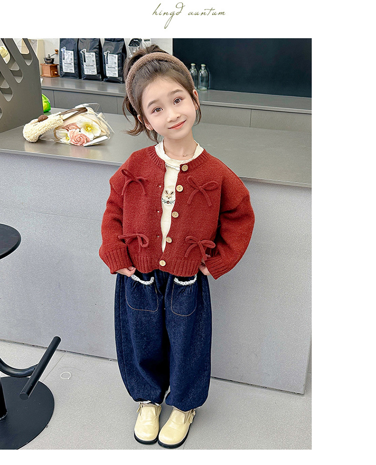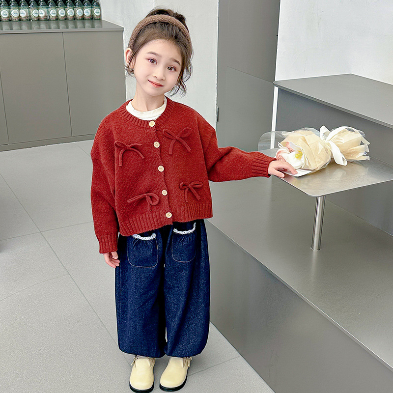 女小童蝴蝶结毛衣秋款2024新款女宝宝开衫外套春秋装小女孩针织衫