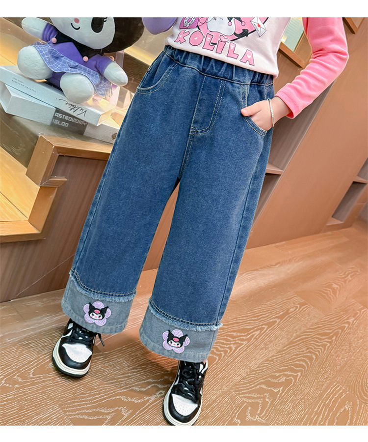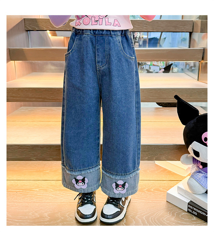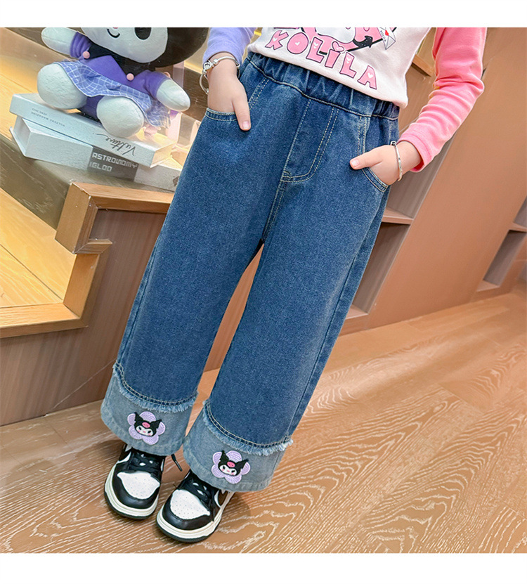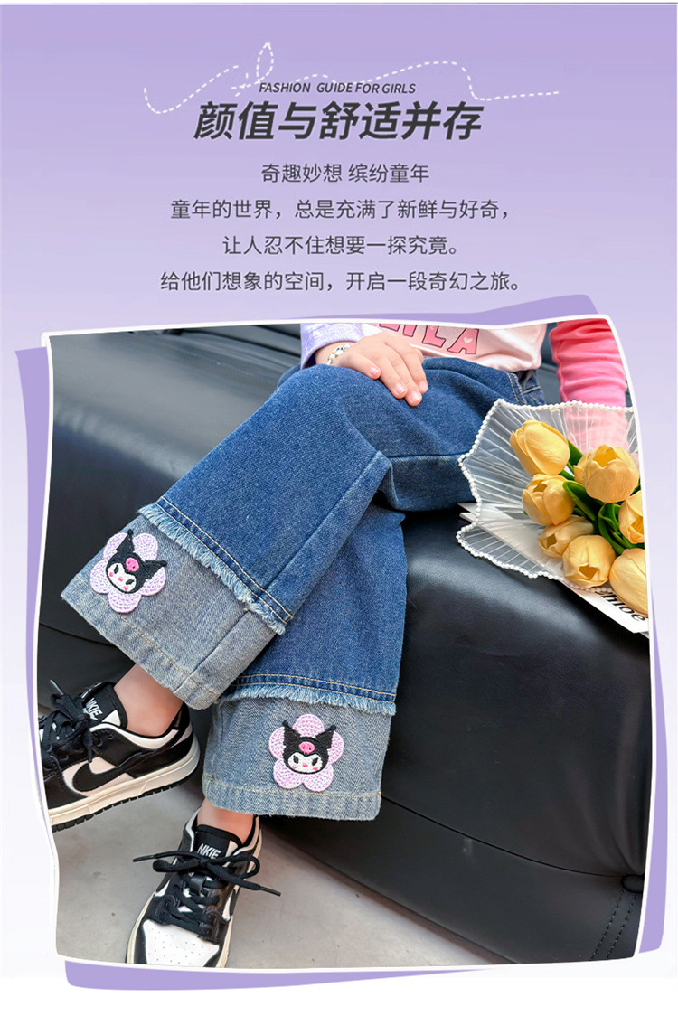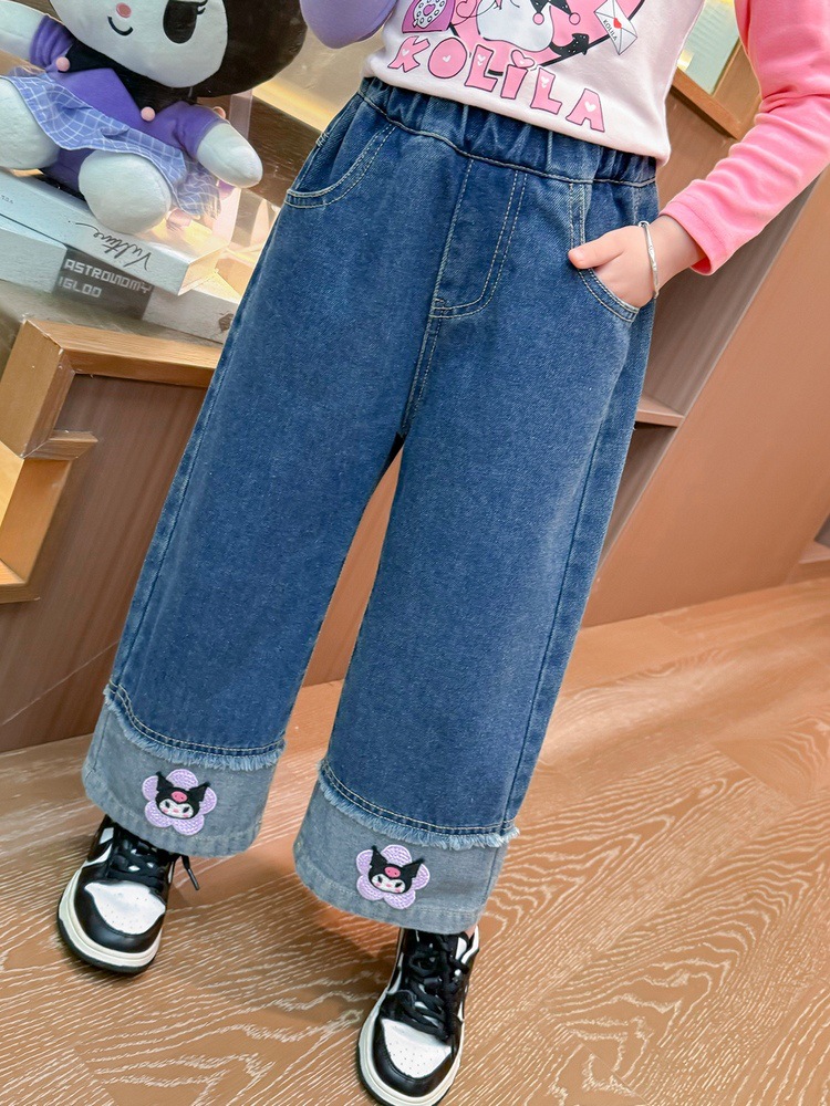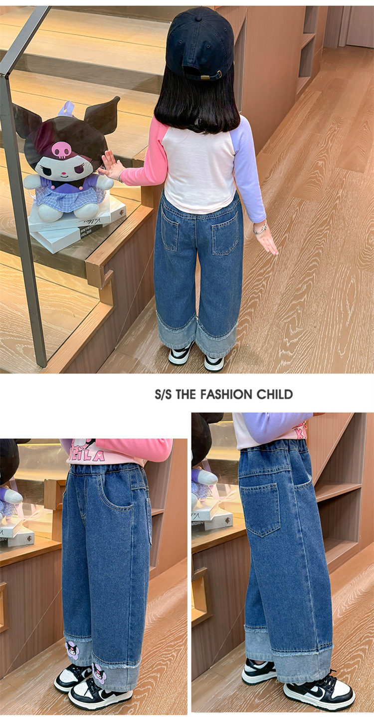 女童秋季牛仔裤2024新款女宝宝春秋卡通洋气阔腿裤儿童秋装裤子潮