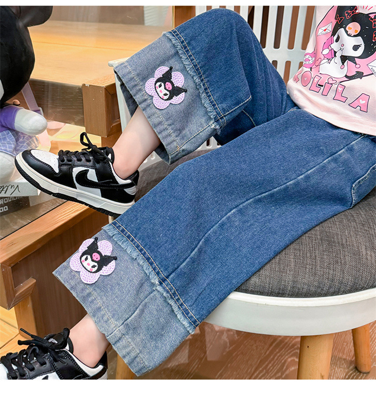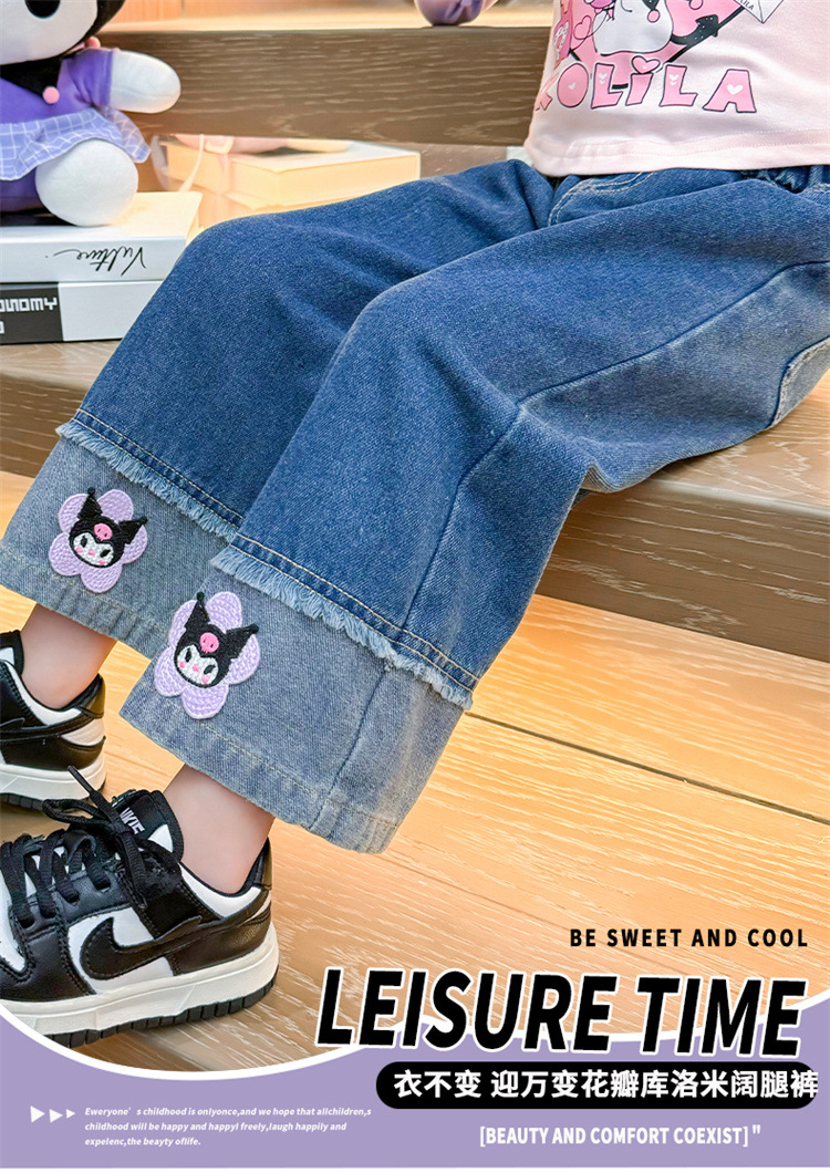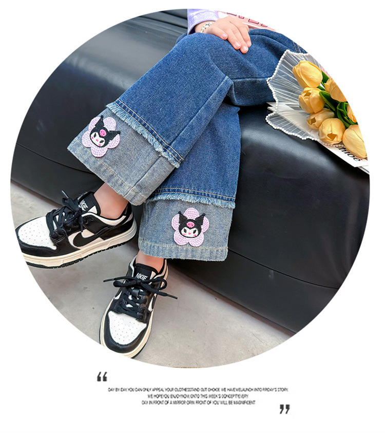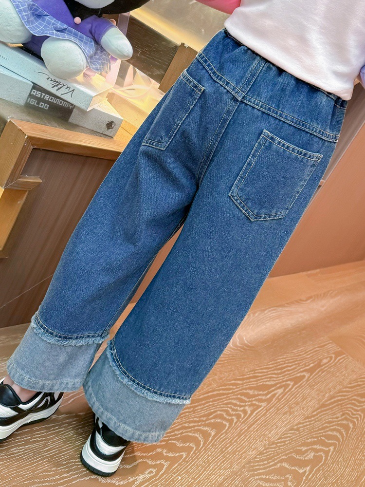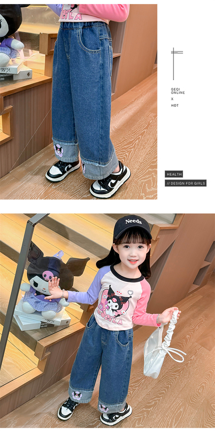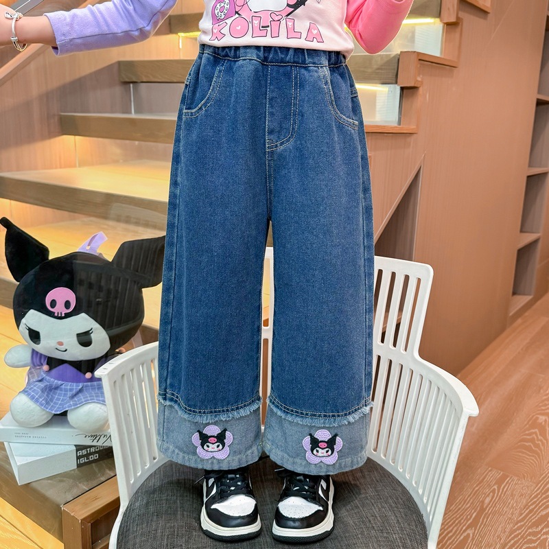 女童秋季牛仔裤2024新款女宝宝春秋卡通洋气阔腿裤儿童秋装裤子潮