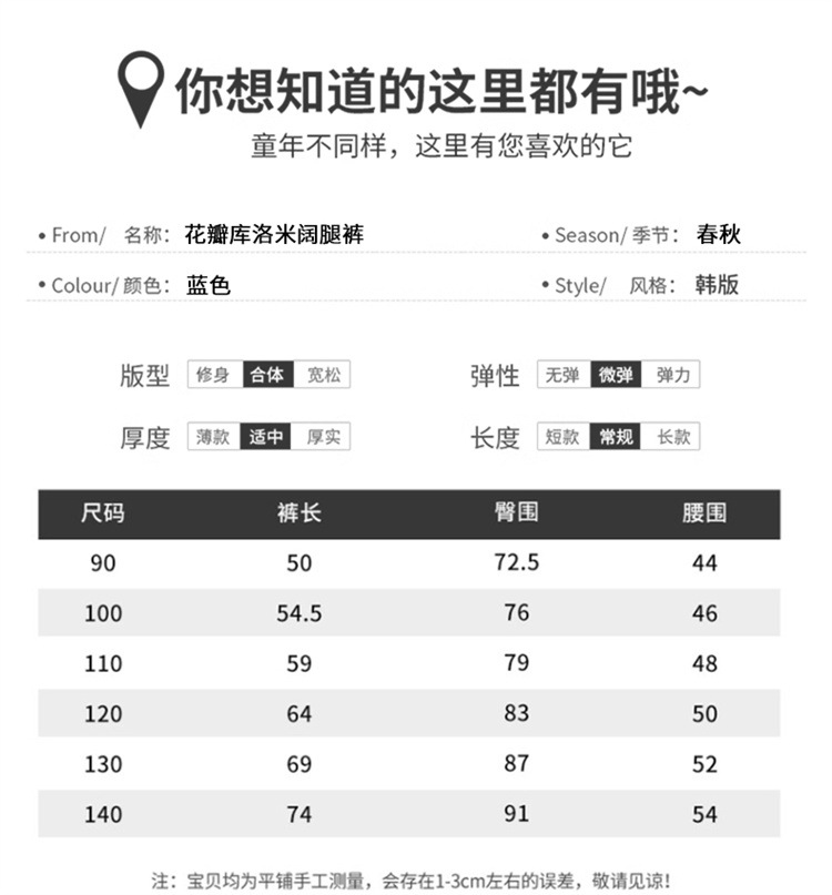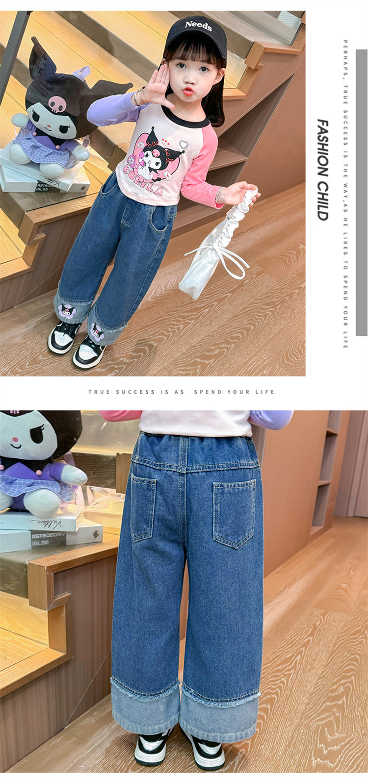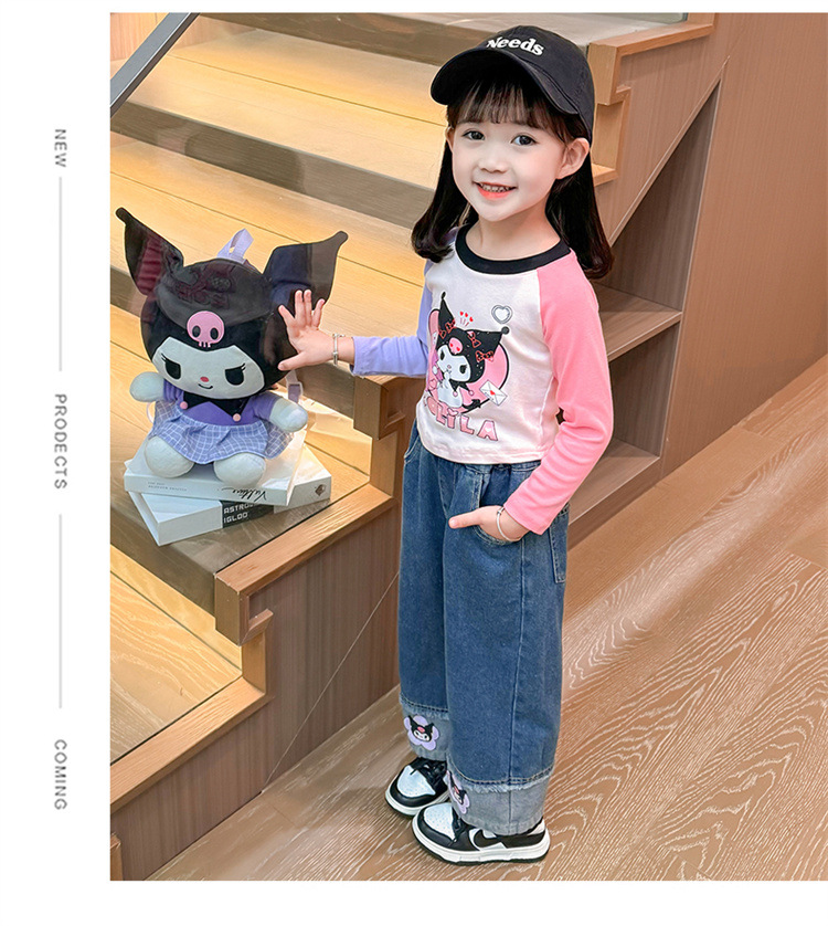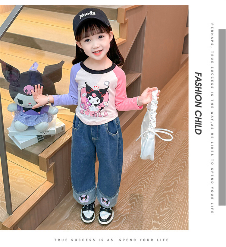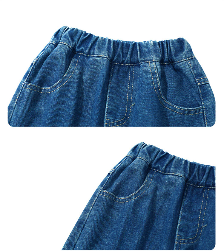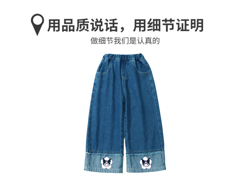 女童秋季牛仔裤2024新款女宝宝春秋卡通洋气阔腿裤儿童秋装裤子潮
