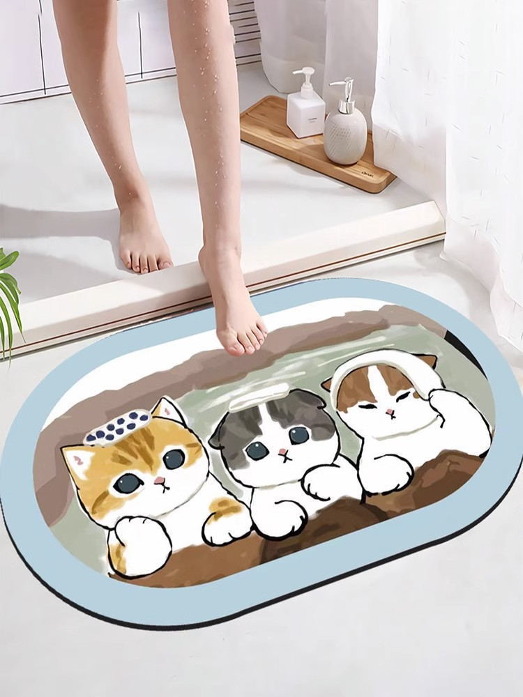 猫咪卡通硅藻泥地垫卫生间耐脏防滑速干浴室门口吸水速干地垫批发