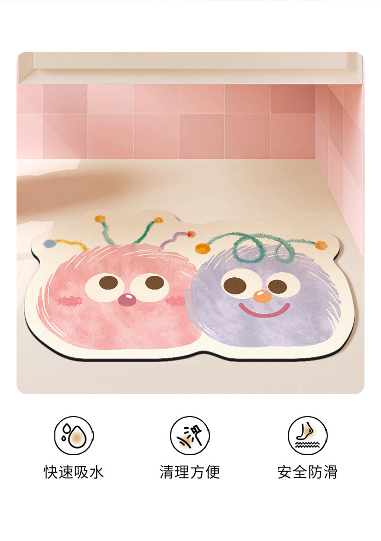 卡通浴室地垫吸水耐脏趣味卫生间门口速干硅藻泥地垫厕所防滑垫
