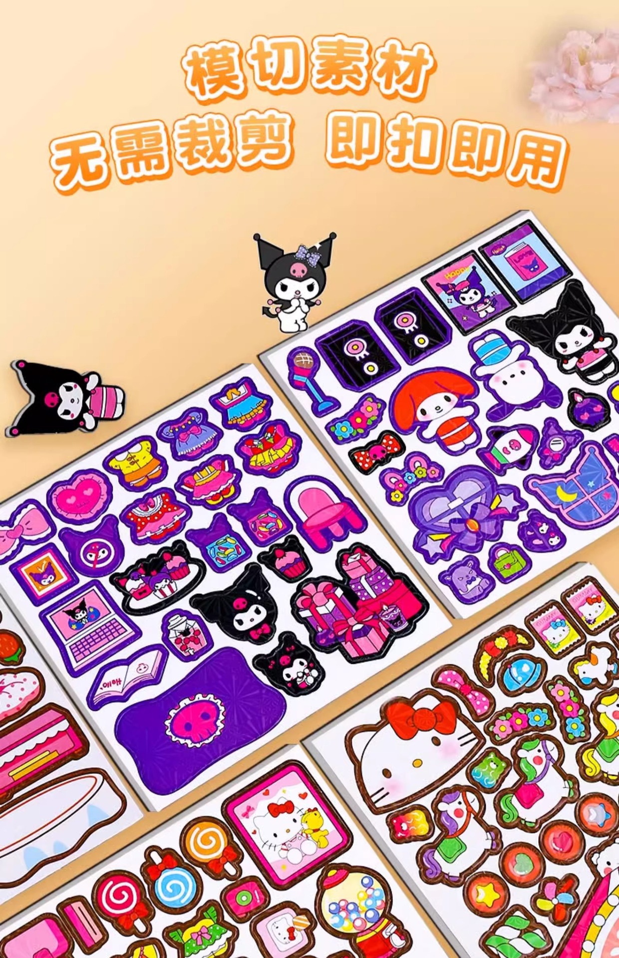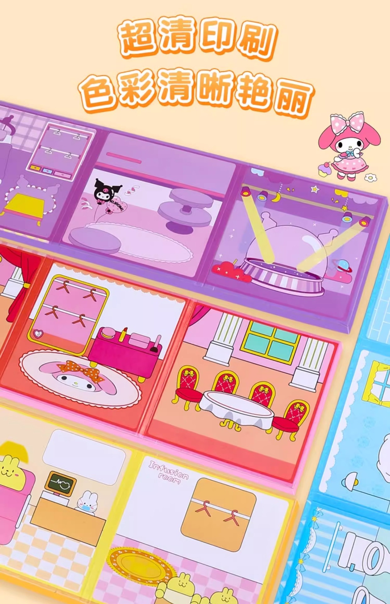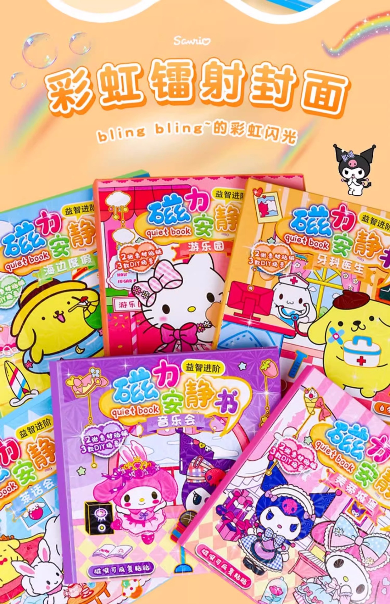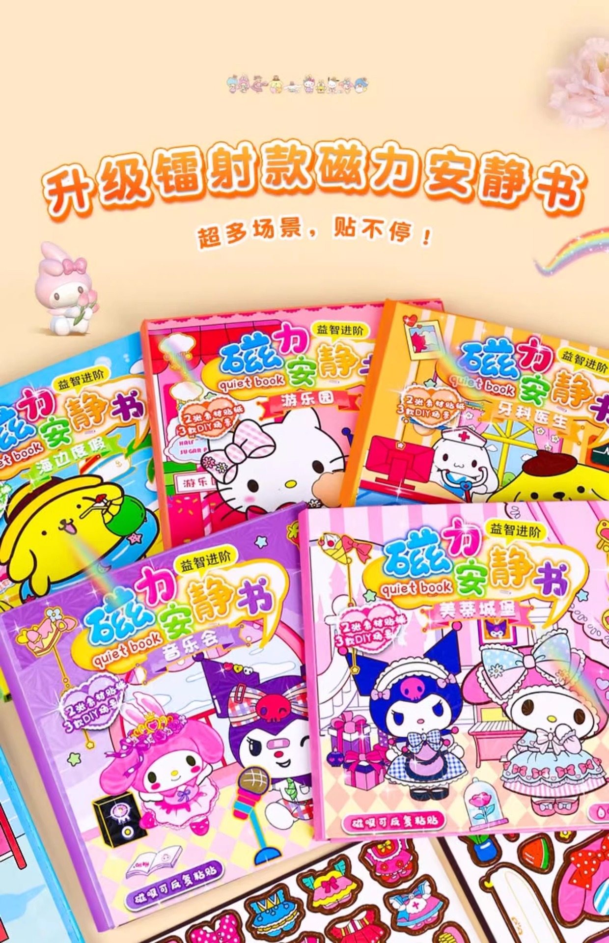 磁力安静书磁吸贴纸书三丽鸥库洛米美乐蒂免裁剪diy益智玩具批发
