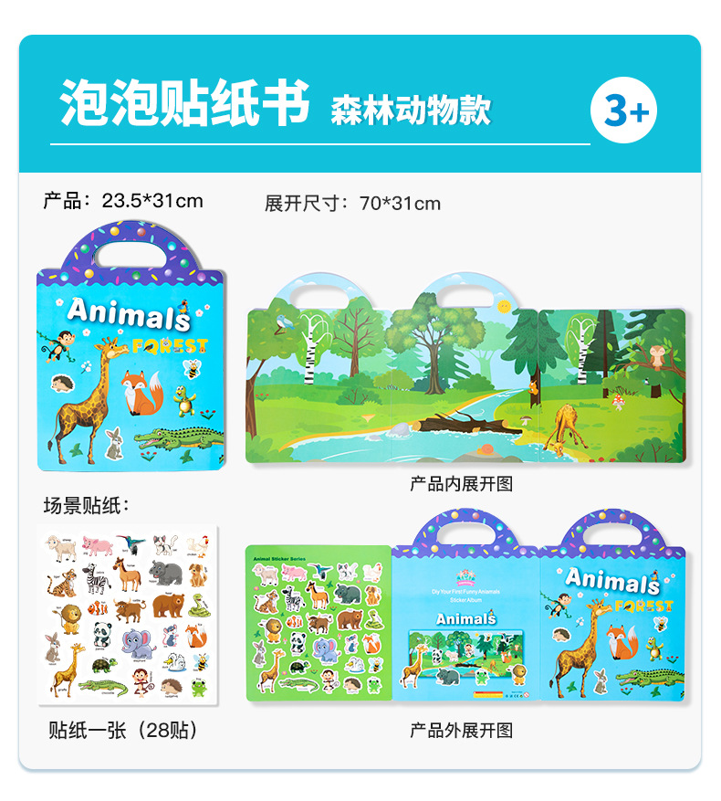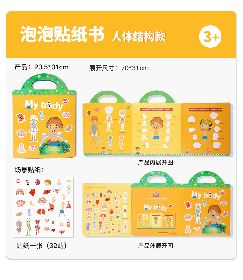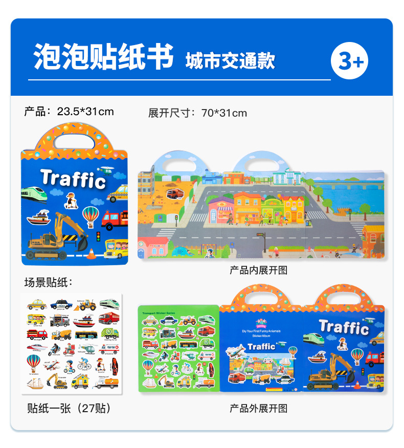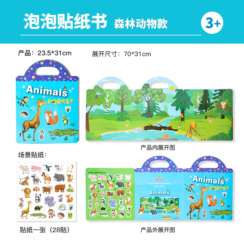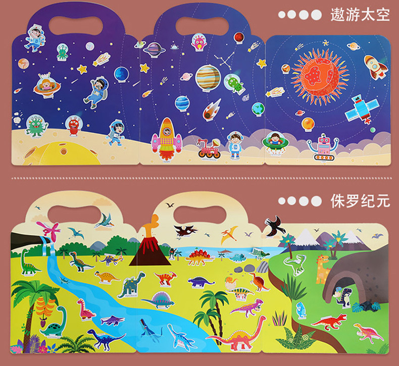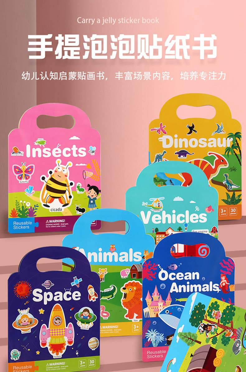 跨境手提果冻安静贴纸书儿童启蒙早教宝宝动手动脑益智拼图玩具
