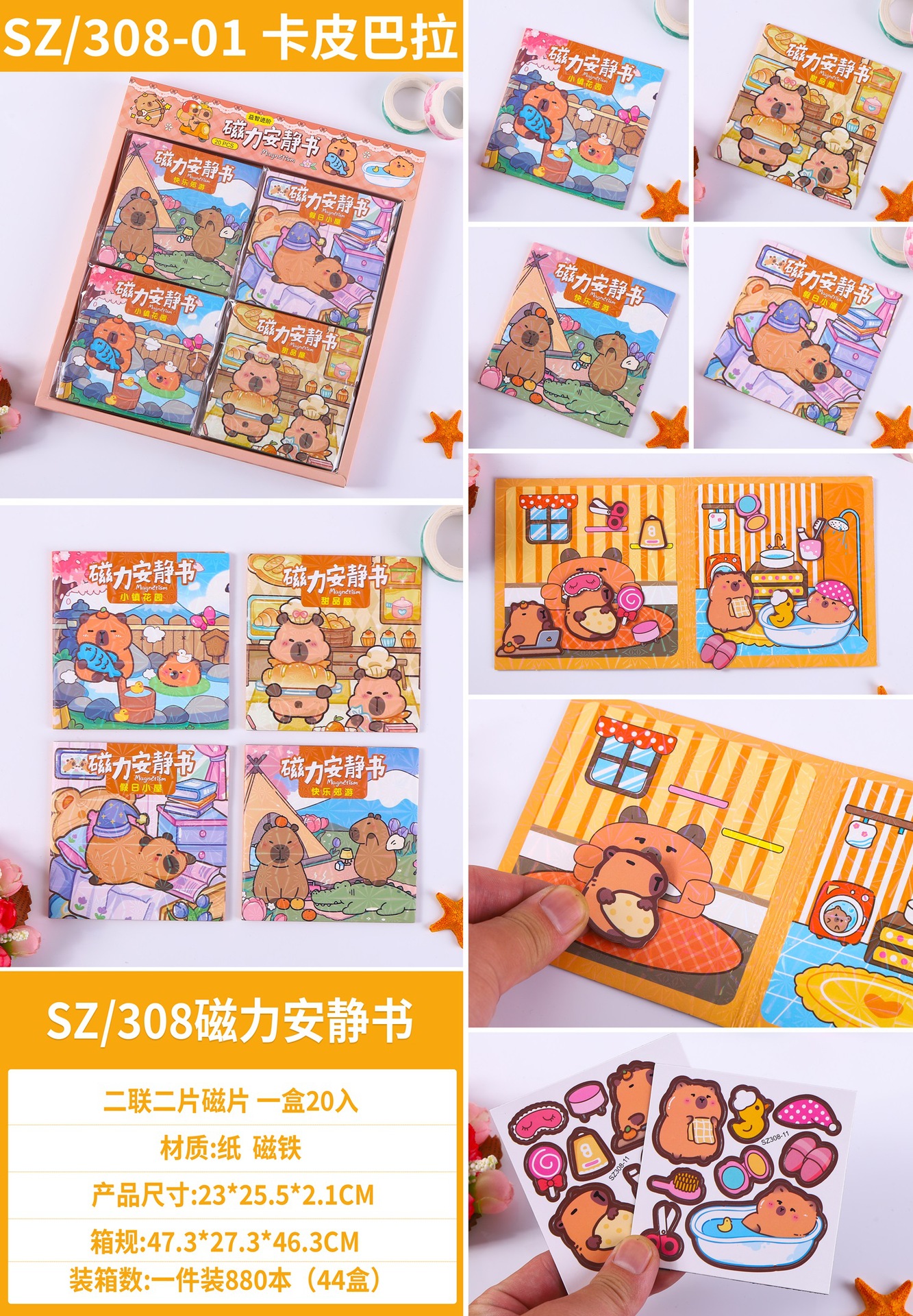 新款迷你卡皮巴拉磁力安静书批发免裁剪三丽鸥磁吸贴纸书安静书