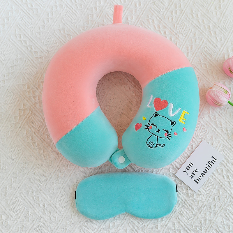 卡通护颈枕眼罩u型枕记忆棉慢回弹护脖午睡旅行办公旅游颈枕