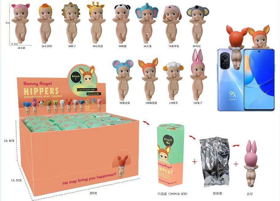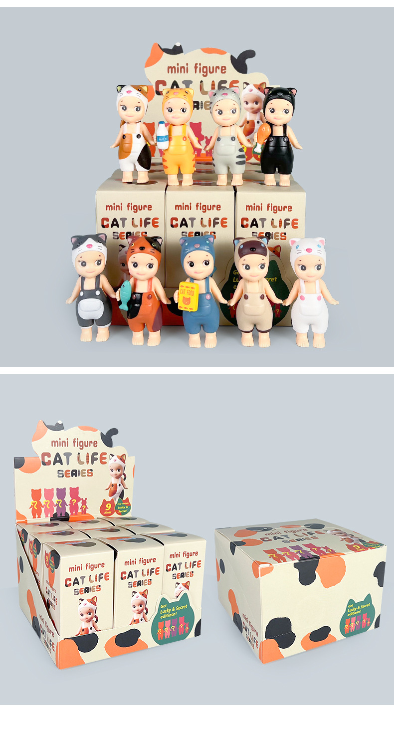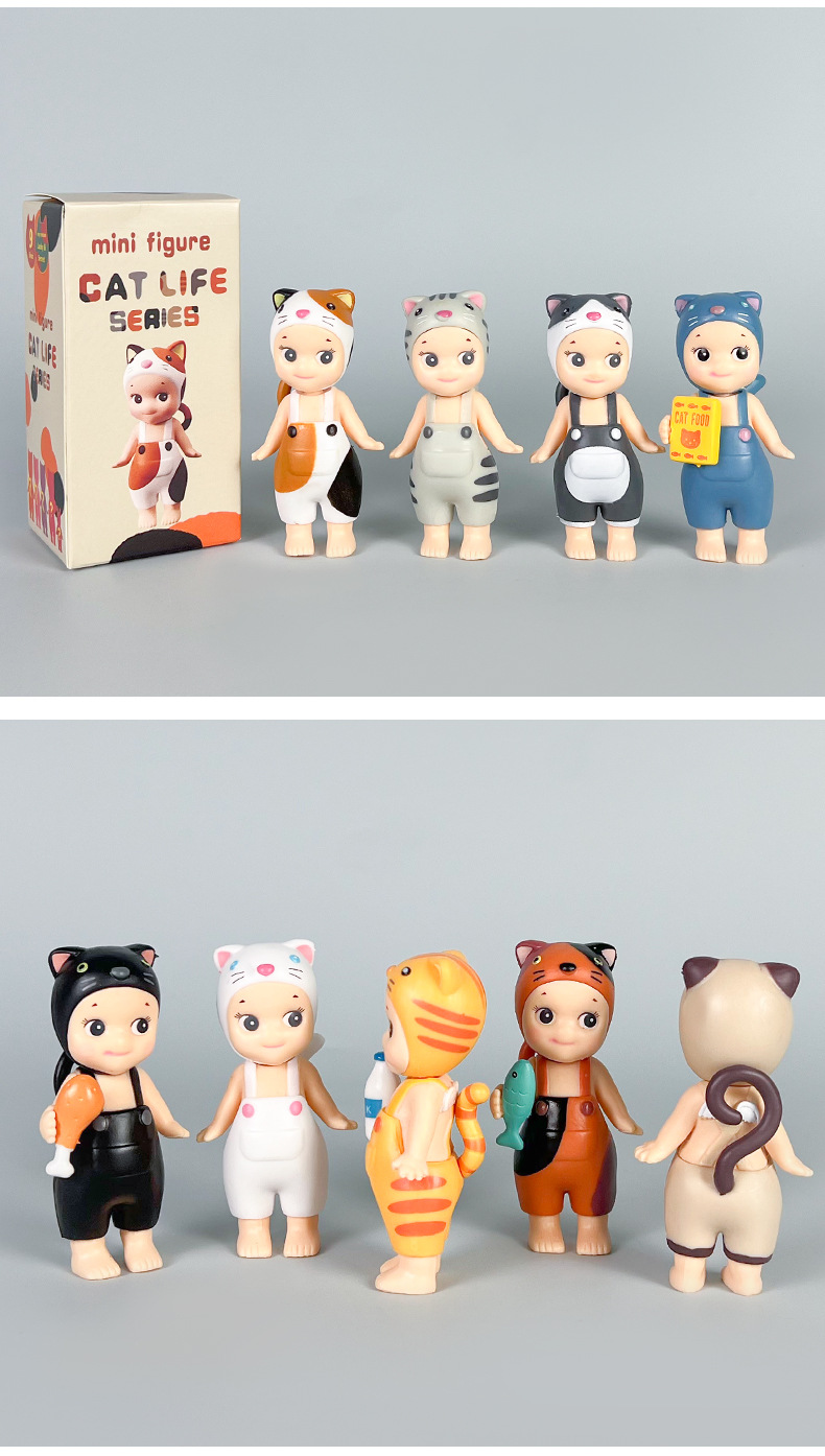 跨境新品 迷你猫 趴趴天使托腮盲盒套装手机装饰品丘比特潮玩动漫