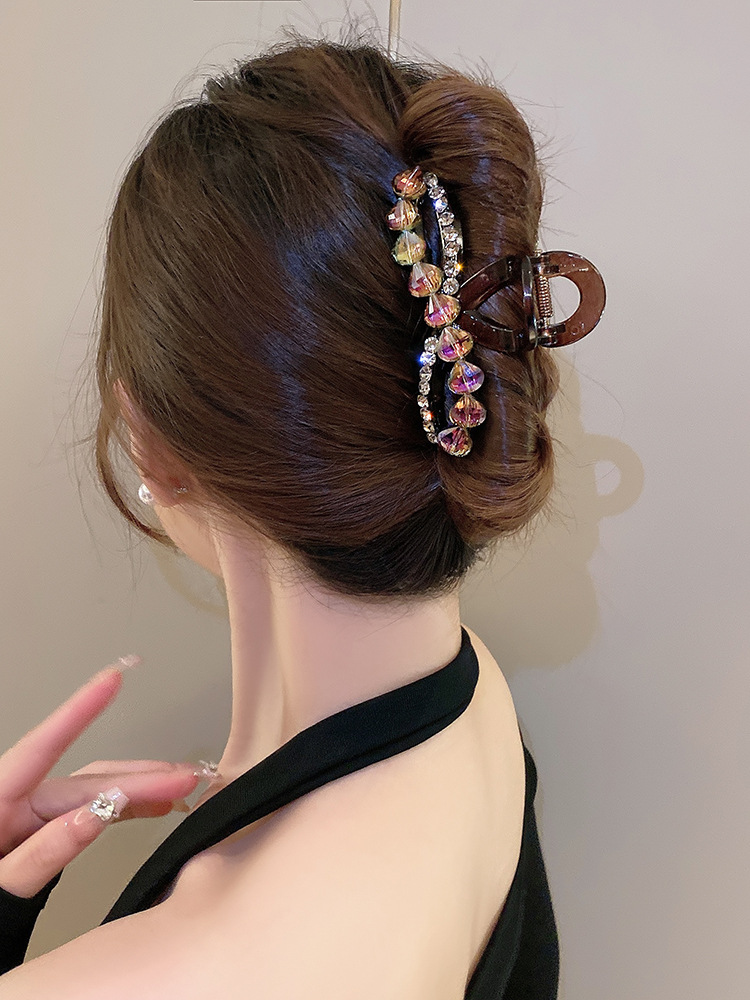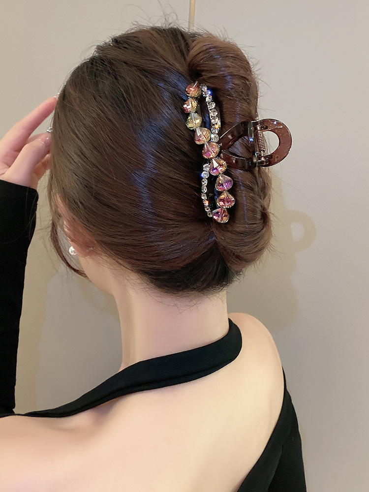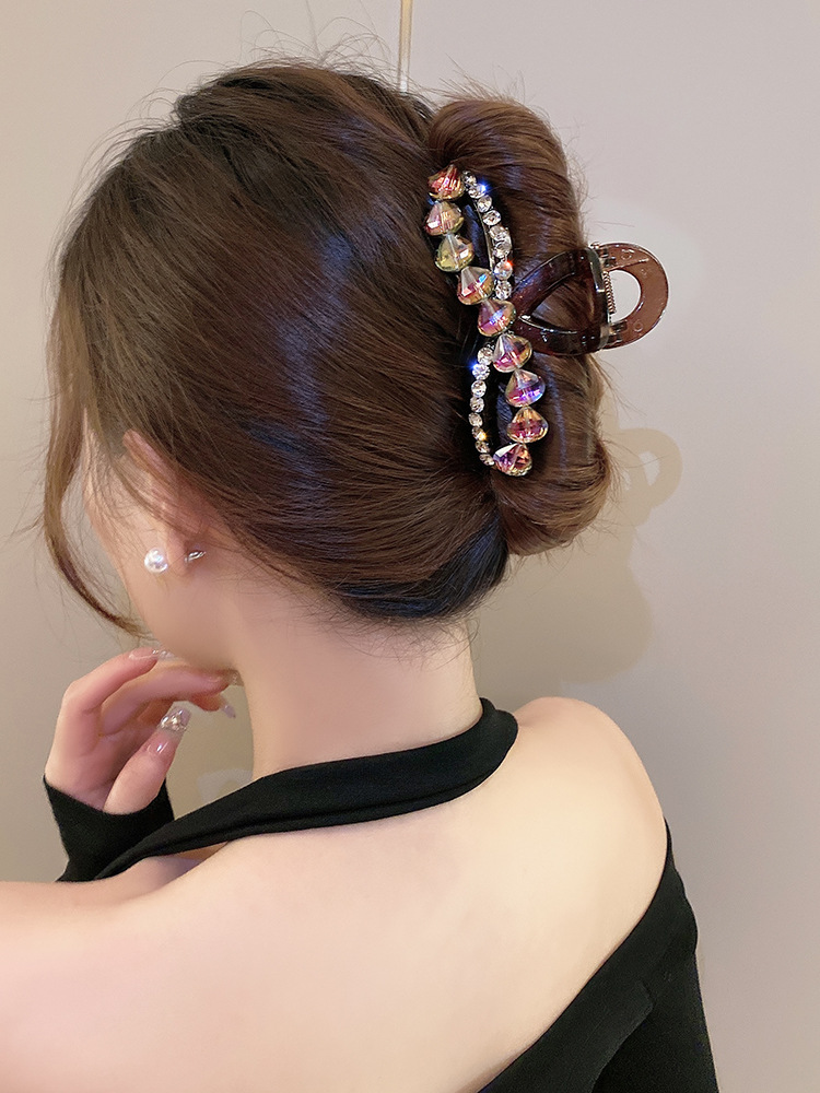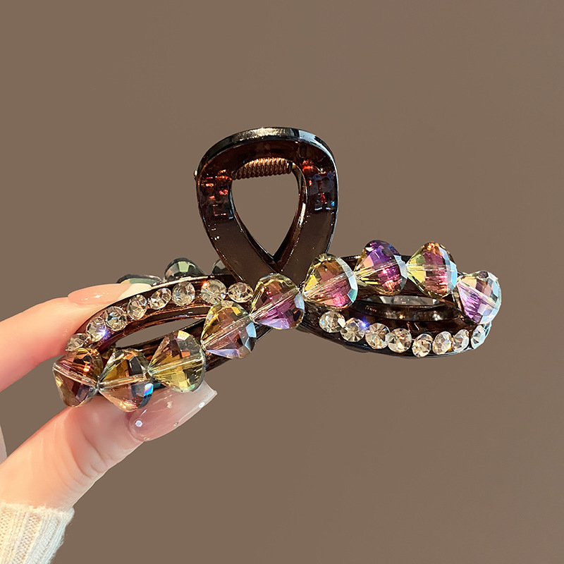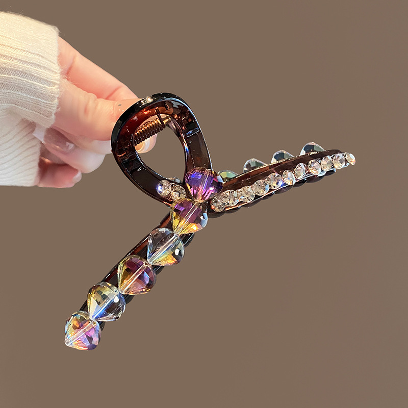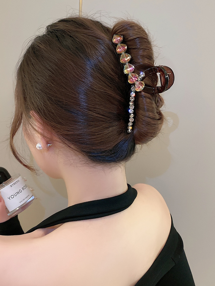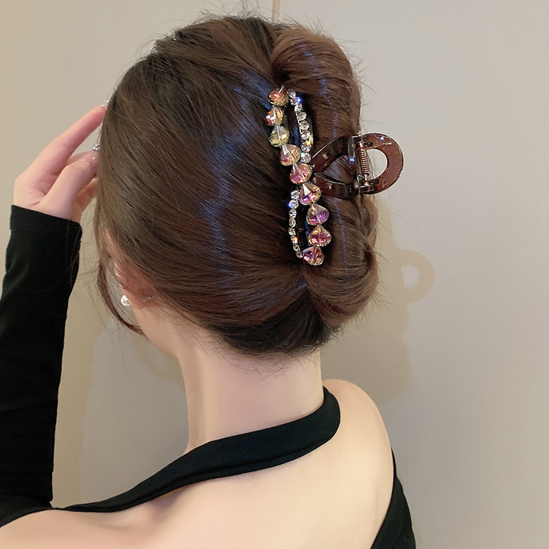高级感韩版水晶爱心抓夹女轻奢闪钻鲨鱼夹后脑勺盘发夹子大号发卡