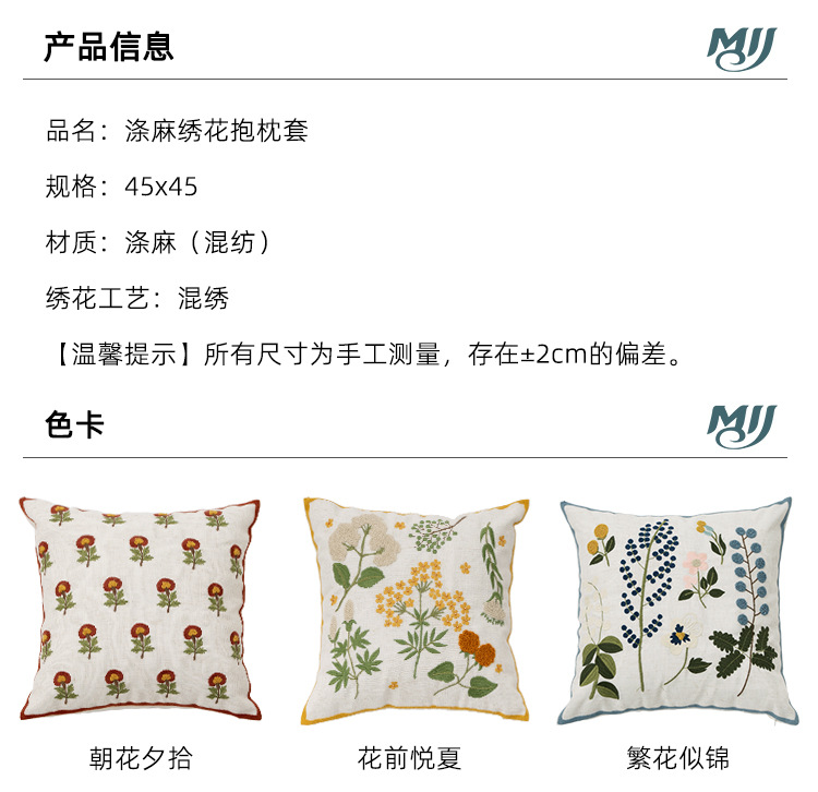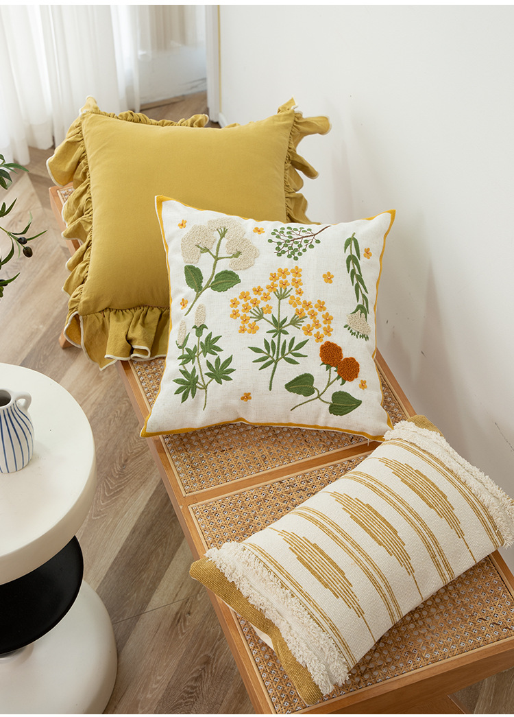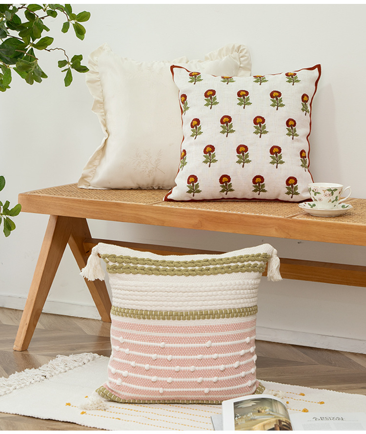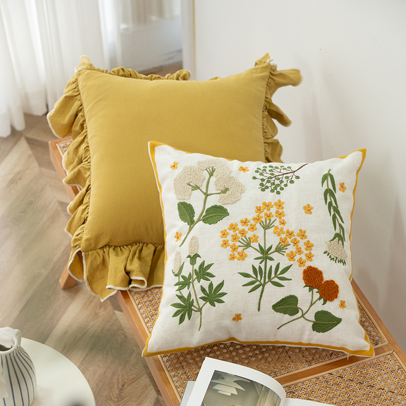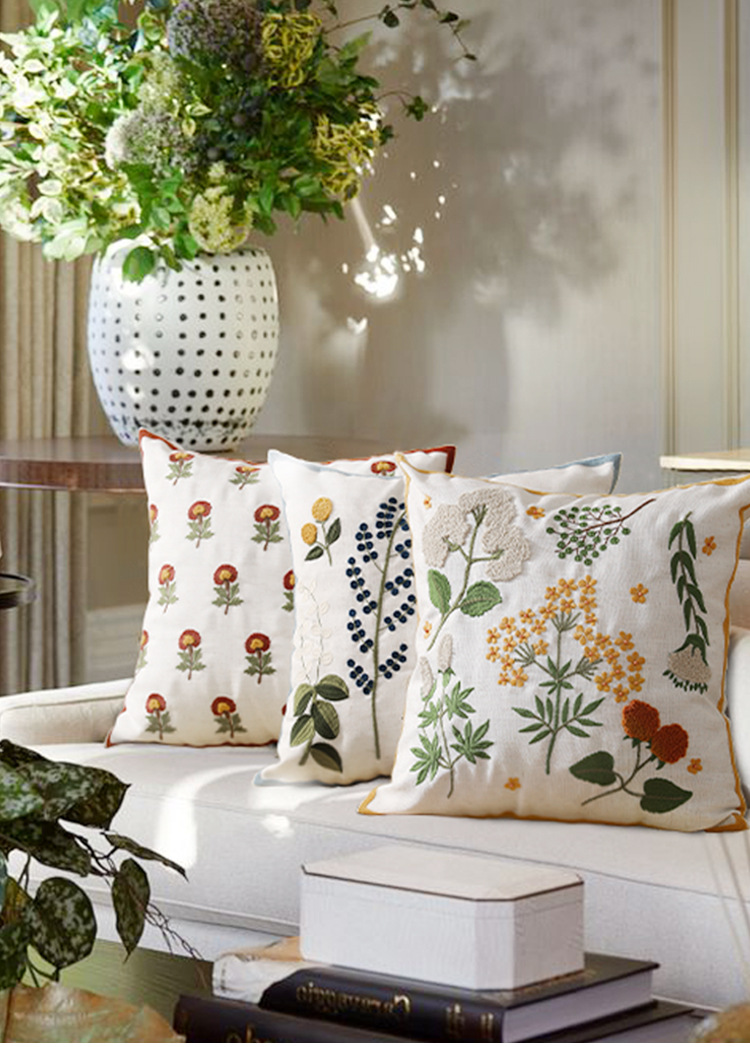 小清新ins风绣花抱枕套客厅沙发刺绣靠枕卧室抱枕榻榻米花语靠垫