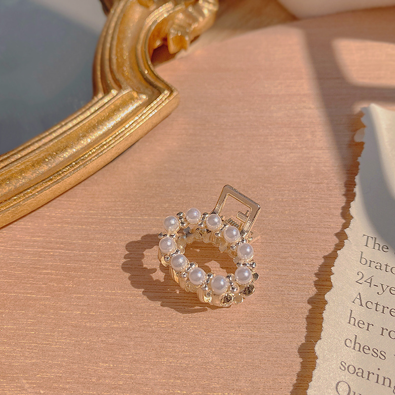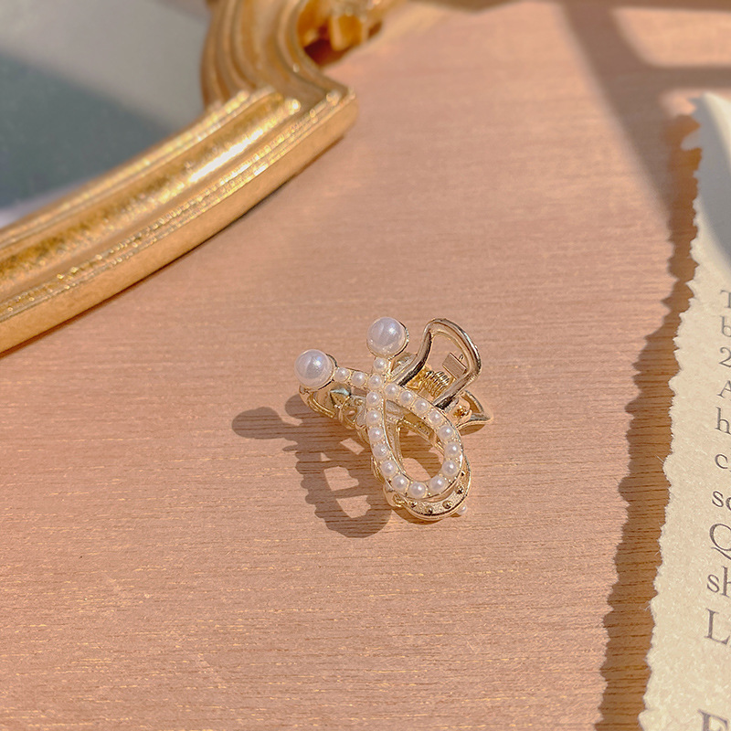2023年新款仙美扇子边夹气质复古优雅发夹珍珠吊坠侧边发卡头饰女