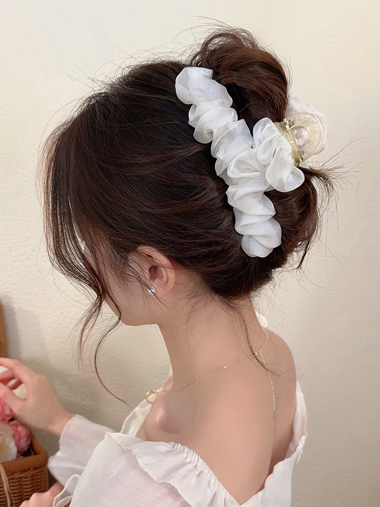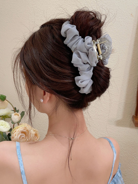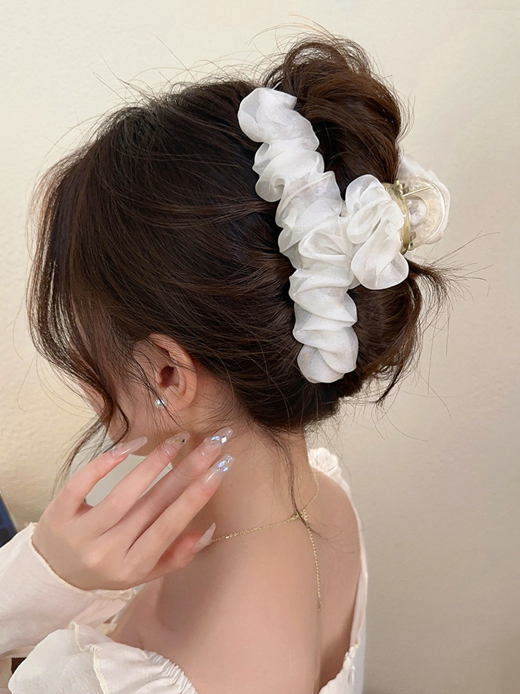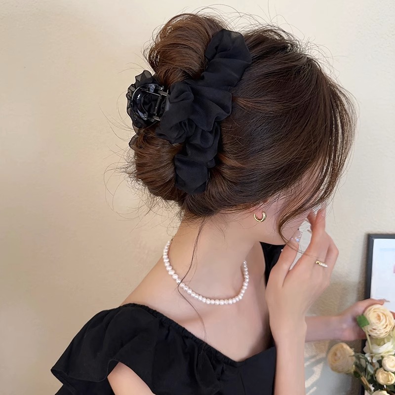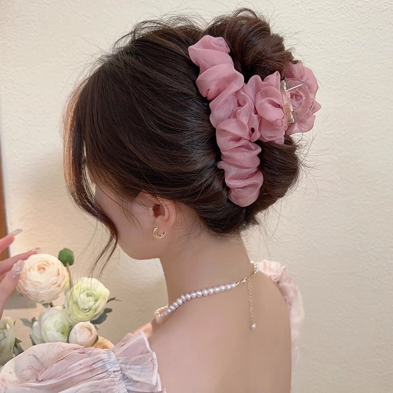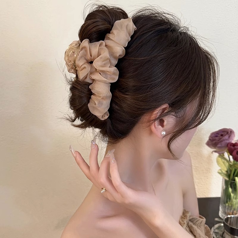 显发量多超仙网纱抓夹大号褶皱发夹女高级感后脑勺盘发鲨鱼夹发饰