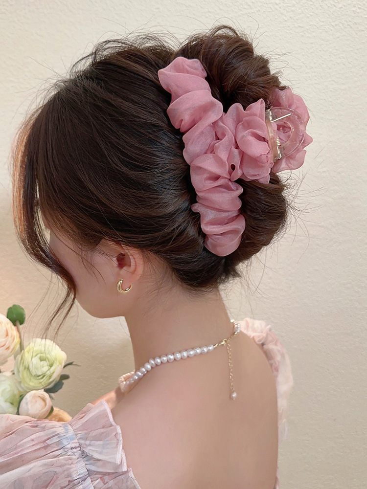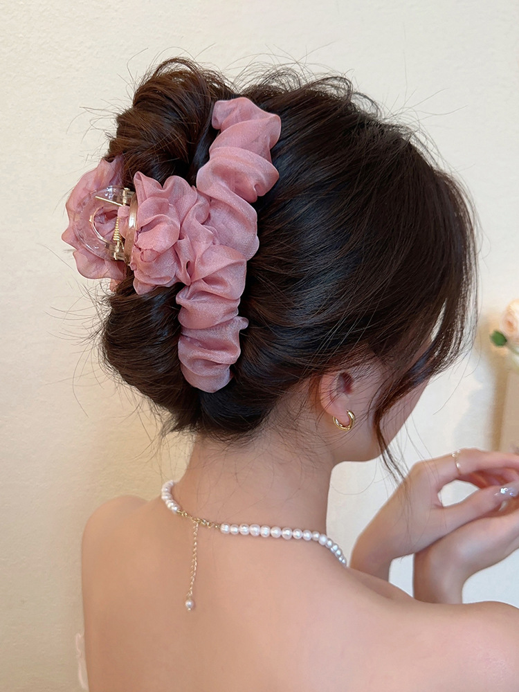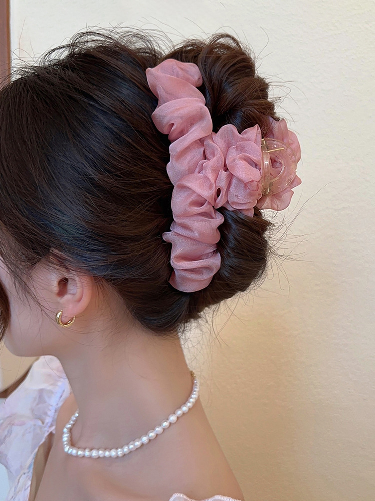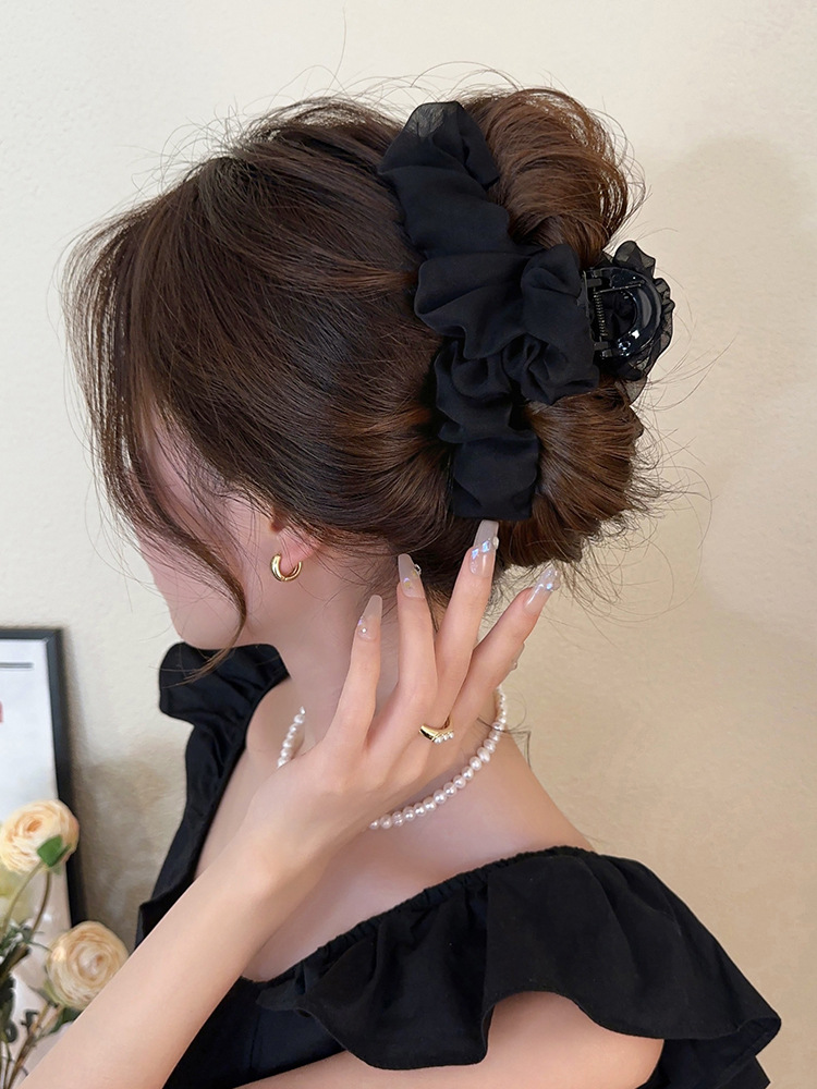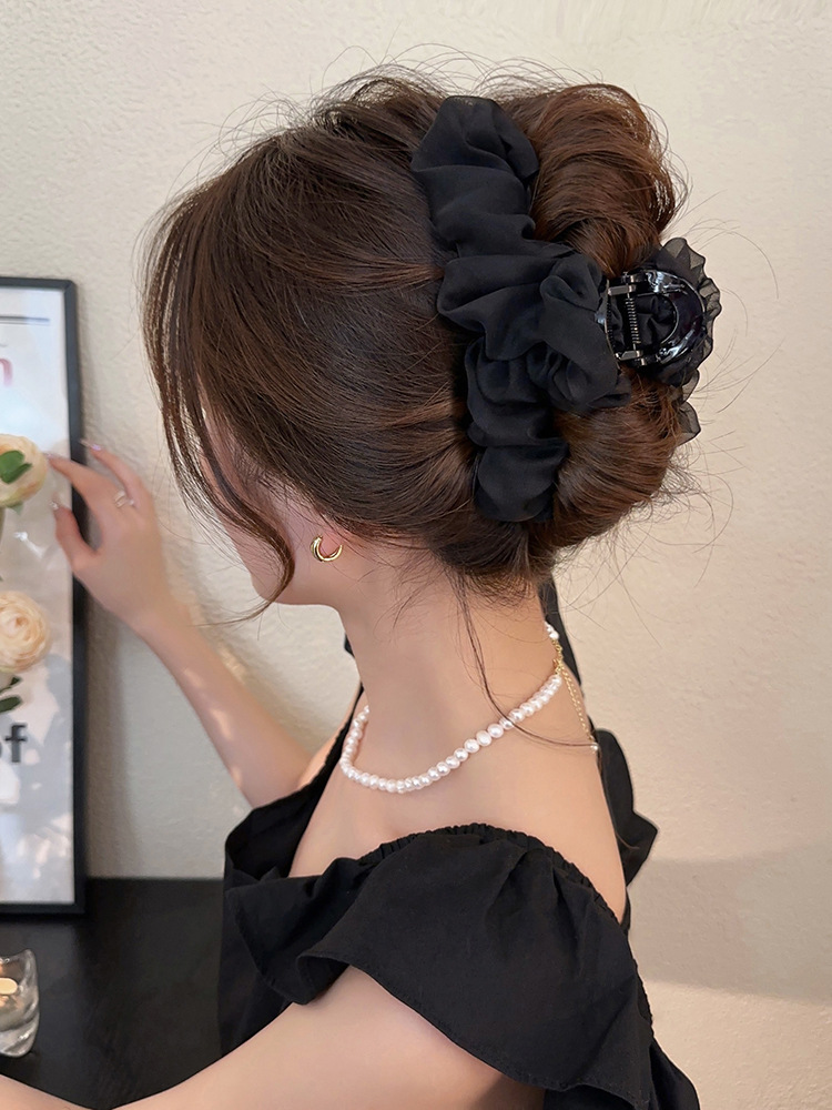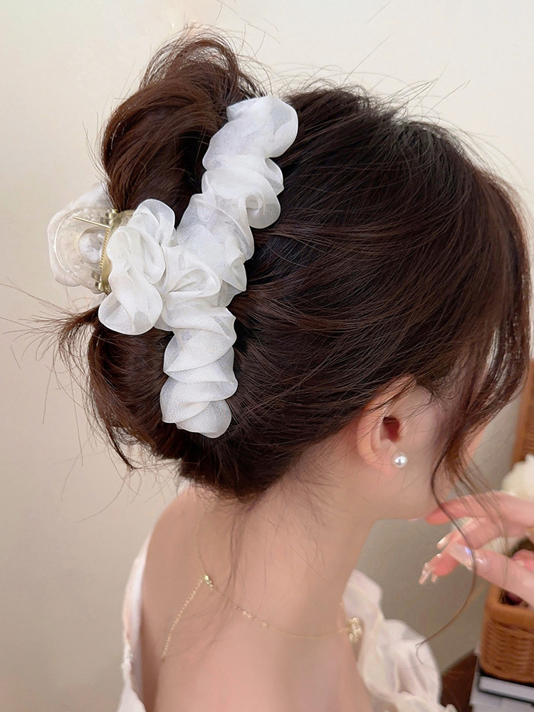 显发量多超仙网纱抓夹大号褶皱发夹女高级感后脑勺盘发鲨鱼夹发饰