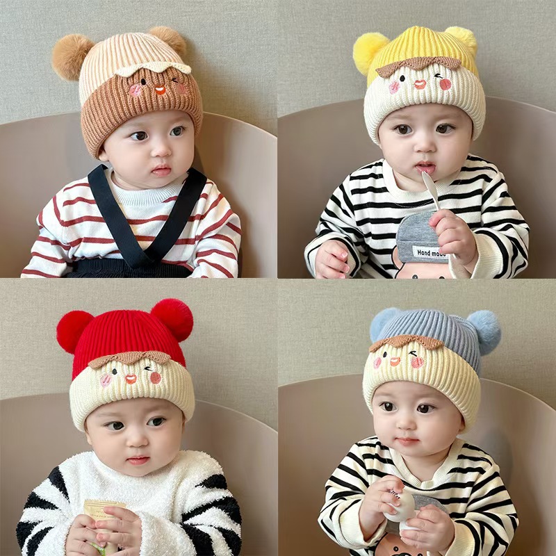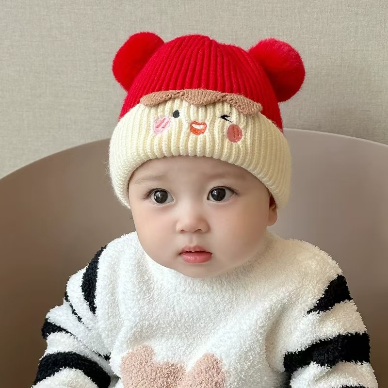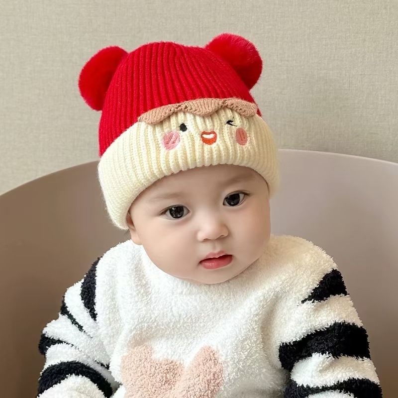 韩版秋冬季婴儿帽宝宝可爱毛球针织帽男女童毛线保暖护耳套头帽