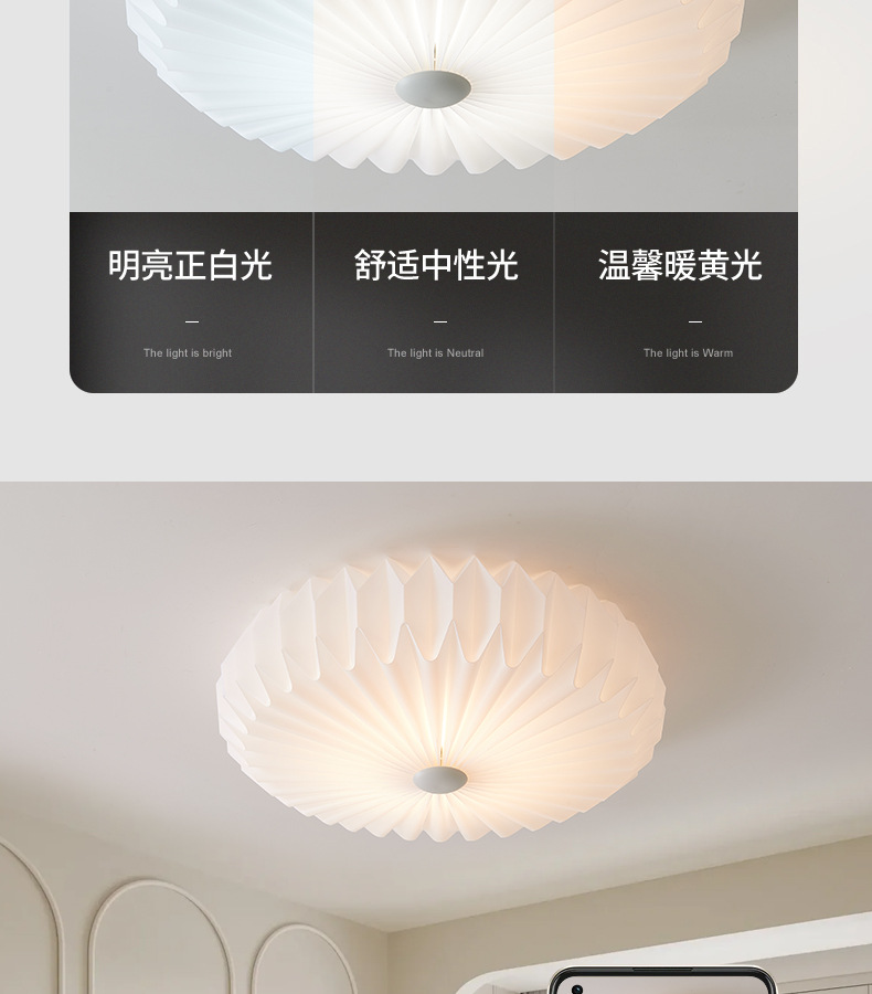 外贸专供法式灯温馨个性吸顶灯书房房圆形百褶led护眼灯