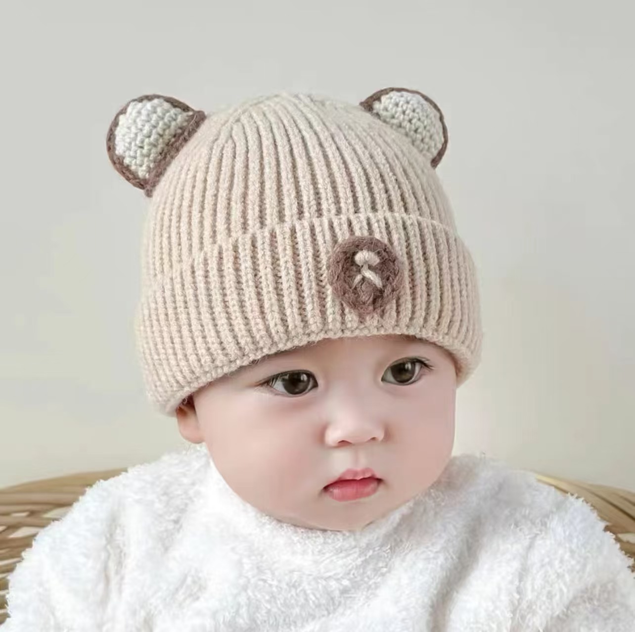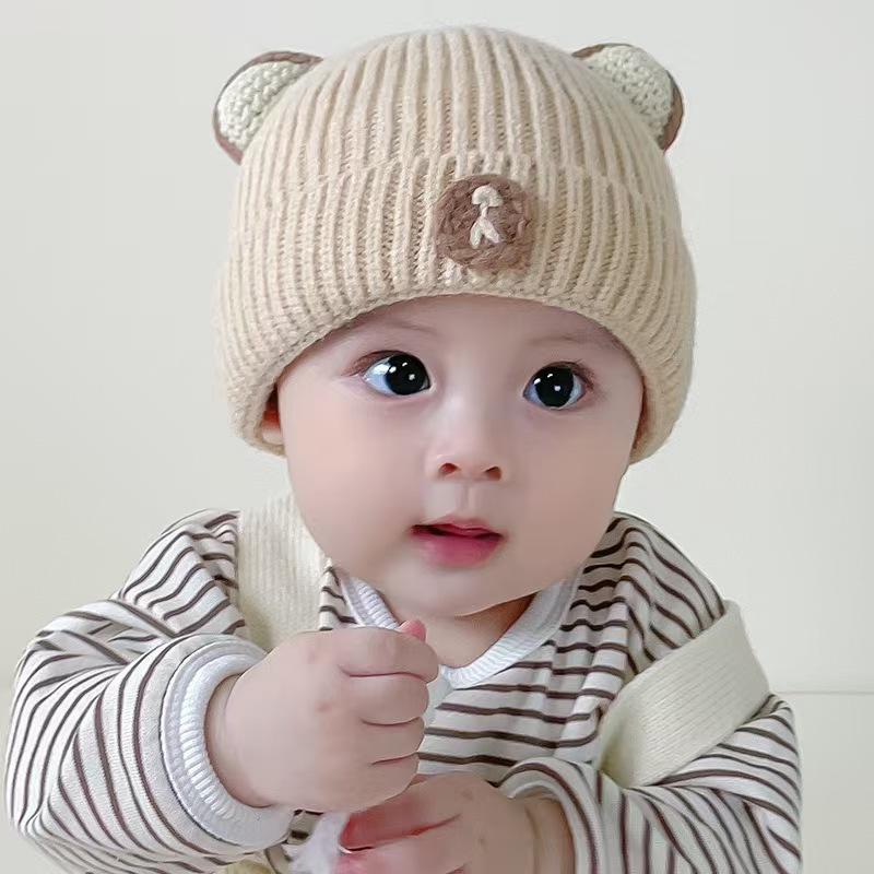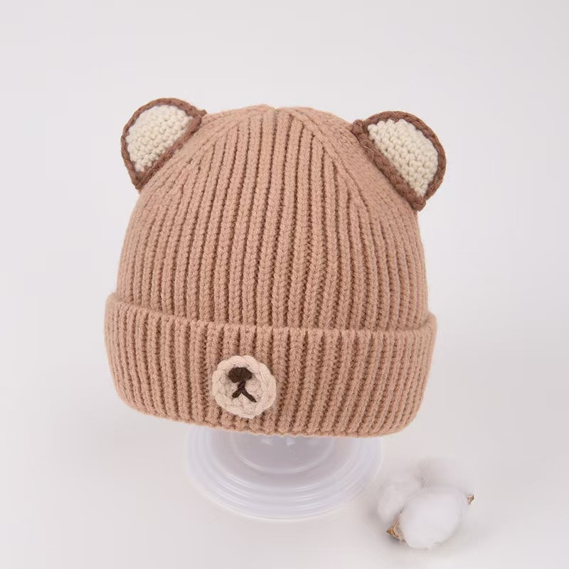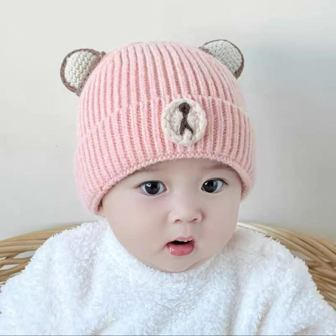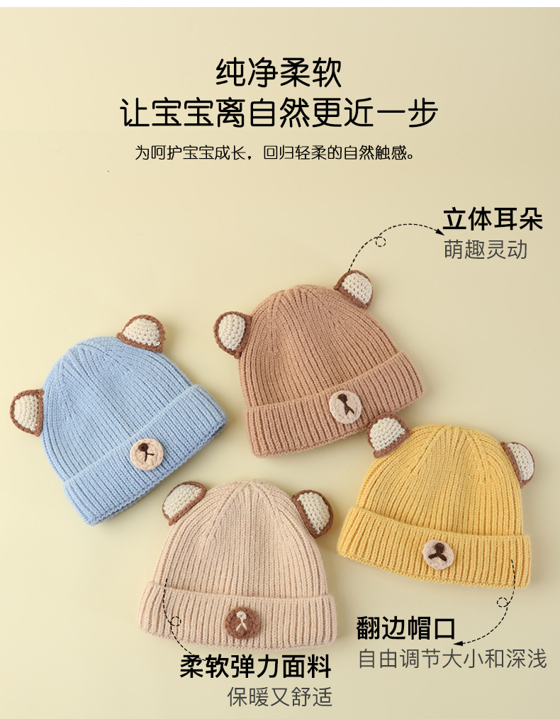 新款超萌小熊帽男女宝宝秋冬保暖针织帽可爱卡通造型儿童毛线帽