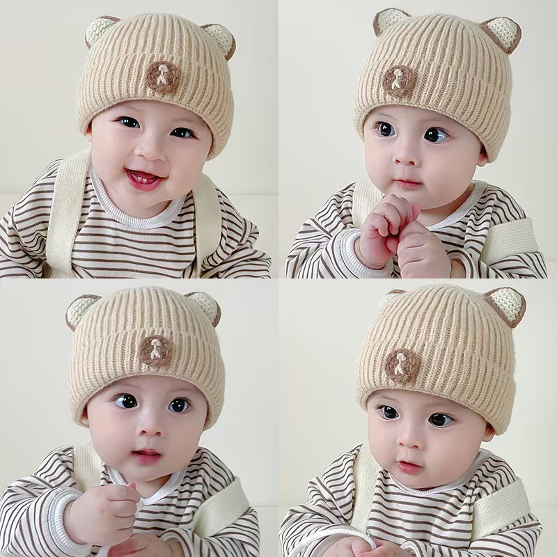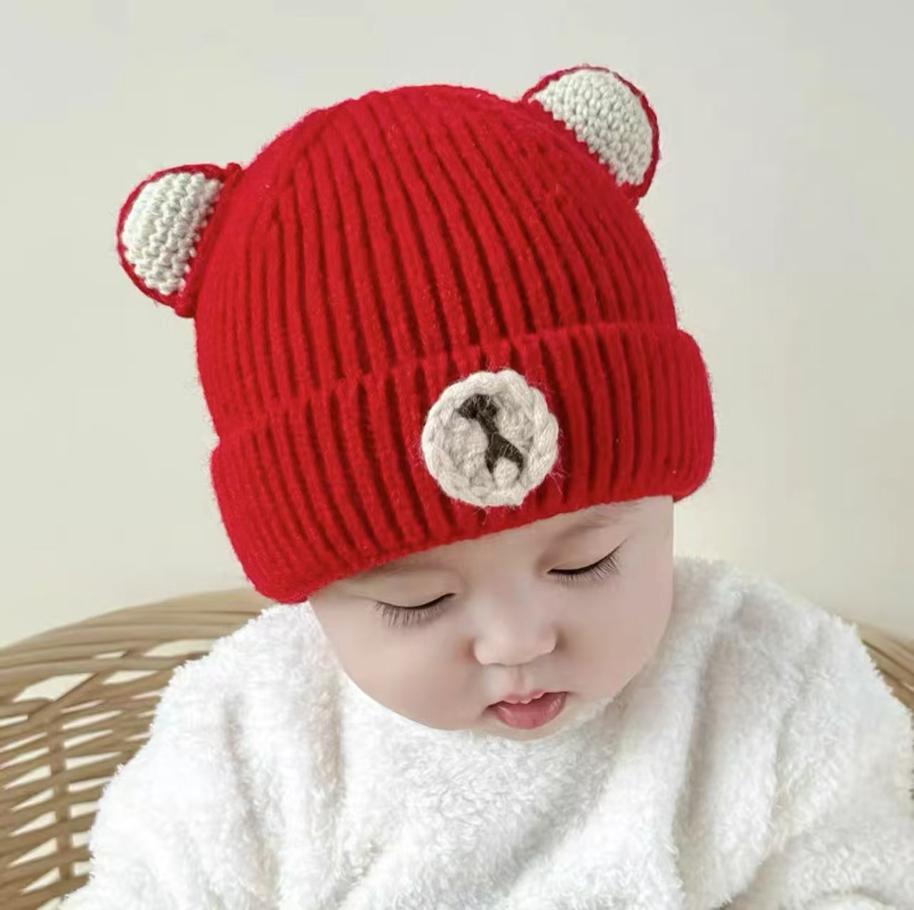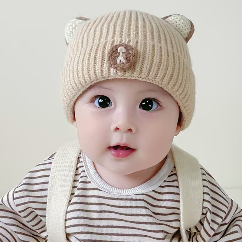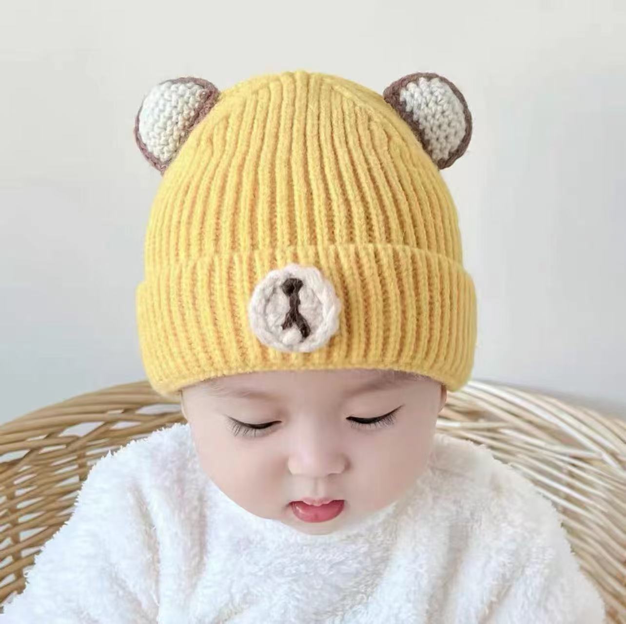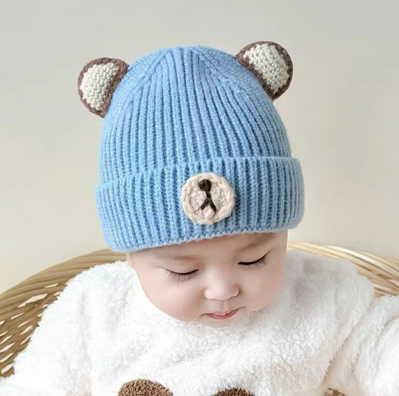 新款超萌小熊帽男女宝宝秋冬保暖针织帽可爱卡通造型儿童毛线帽