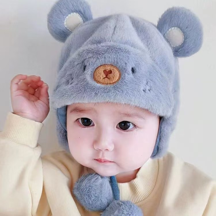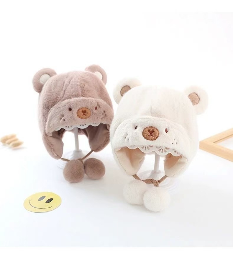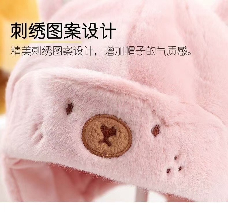 原版正品秋冬儿童男女宝宝护耳毛绒帽卡通超萌防寒小熊婴幼儿帽子