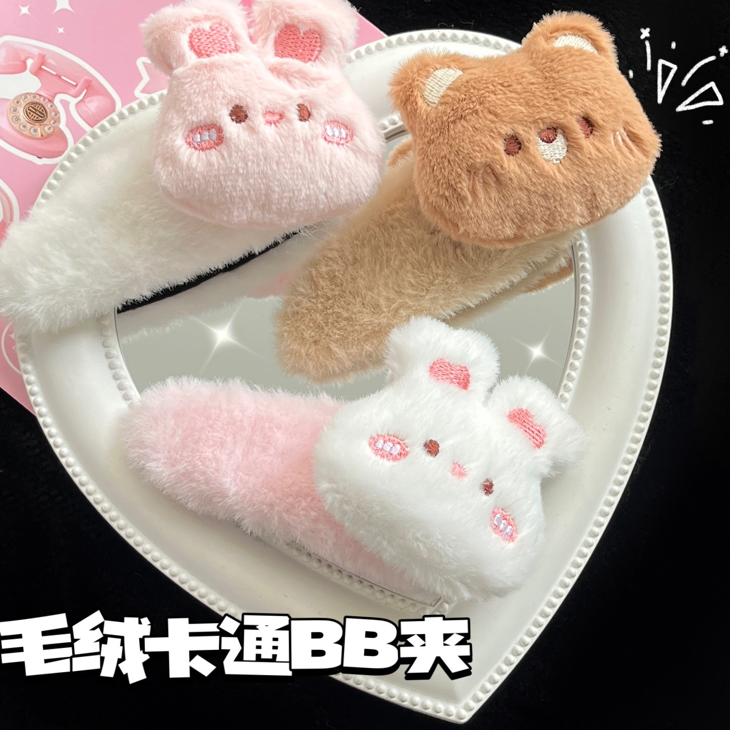 毛绒卡通小熊小兔大号BB夹可爱秋冬少女甜美边夹学生毛茸发饰发卡