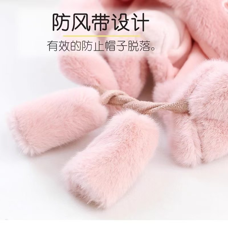 秋冬超萌婴儿帽子 可爱宝宝毛绒帽子 加厚绒儿童兔子保暖护耳帽