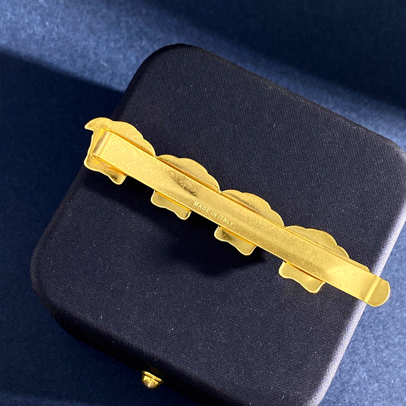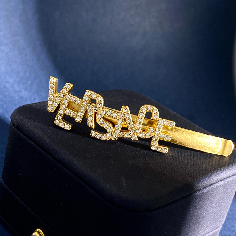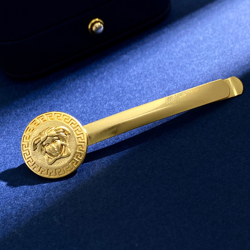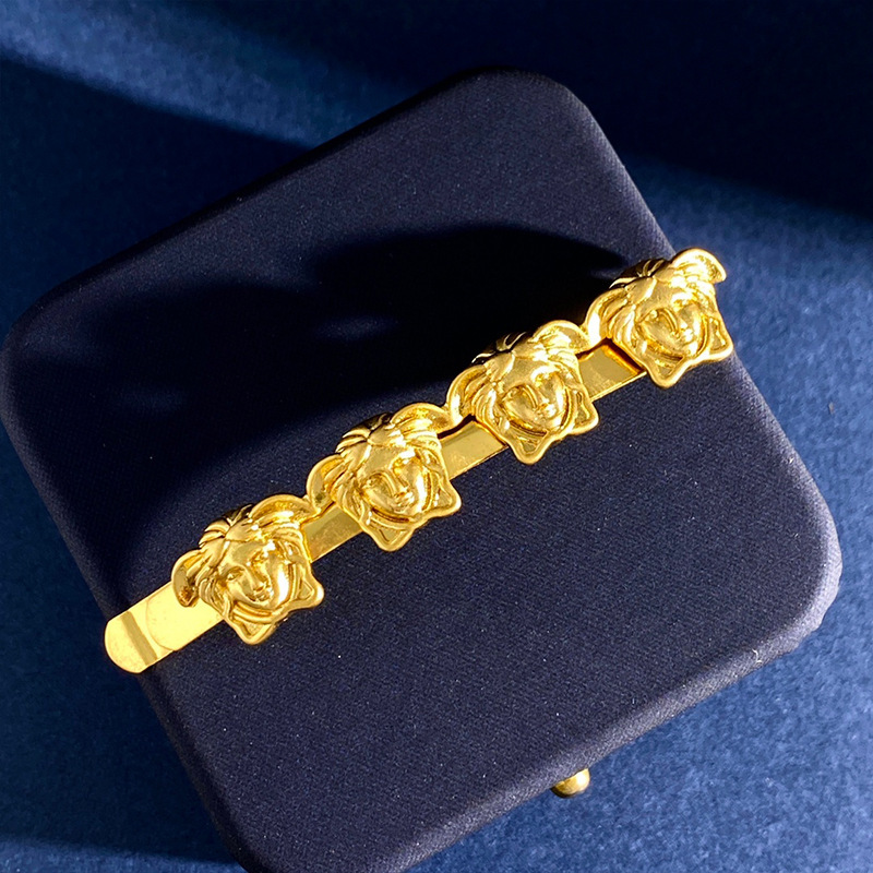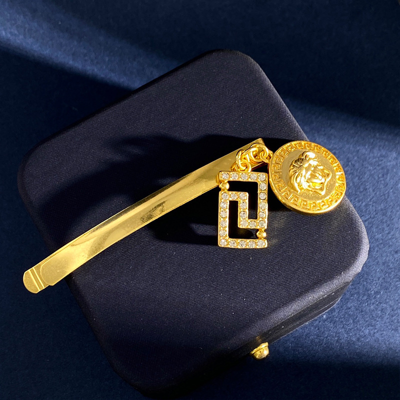 美杜莎镶钻回纹走秀设计边夹发夹金色圆形钱币一字夹发卡吊坠头饰