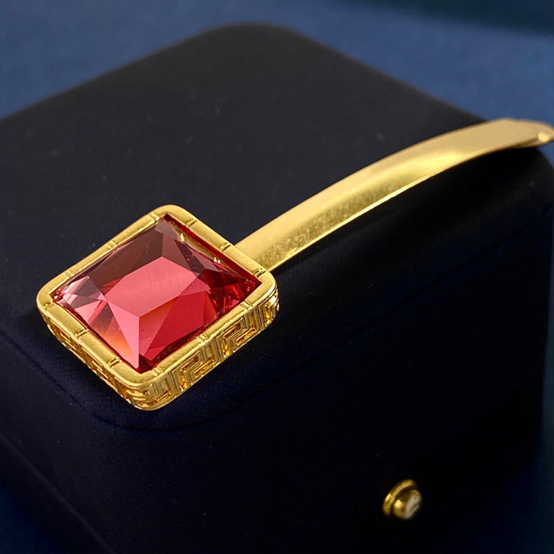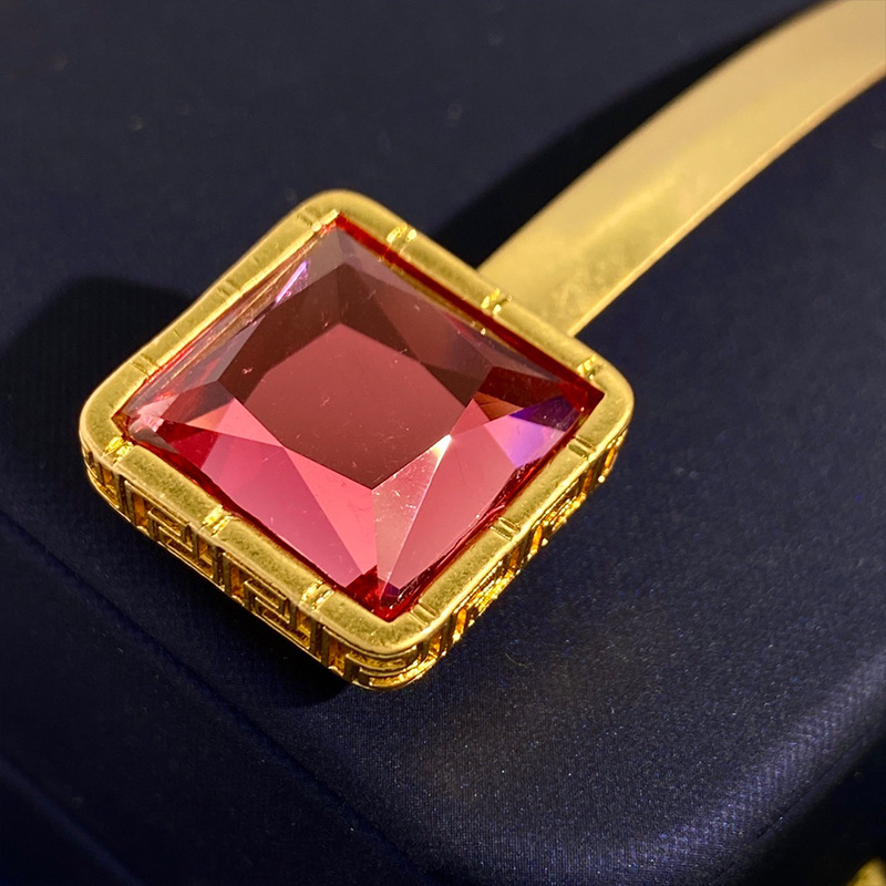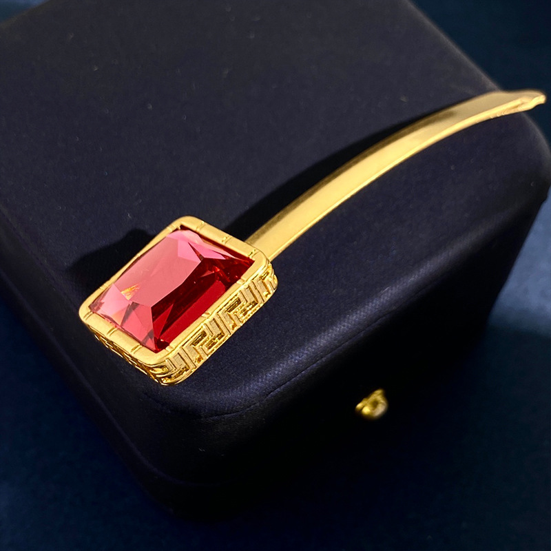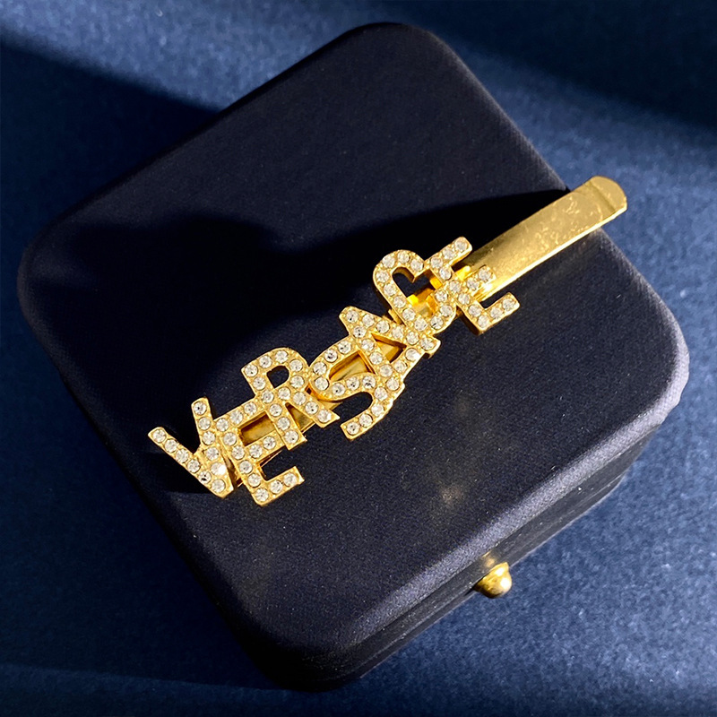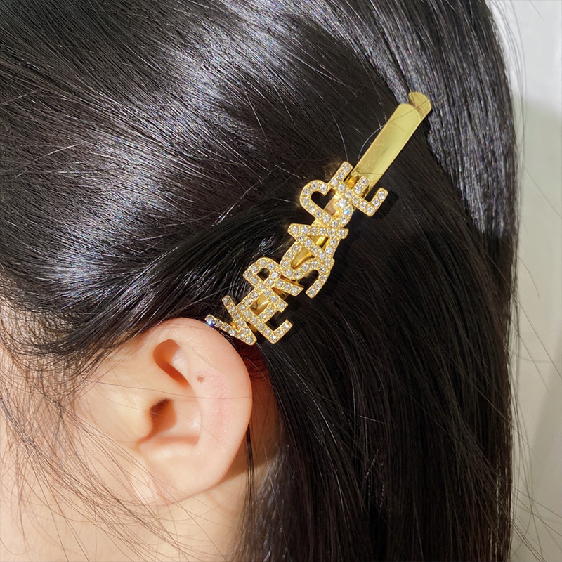 美杜莎镶钻回纹走秀设计边夹发夹金色圆形钱币一字夹发卡吊坠头饰