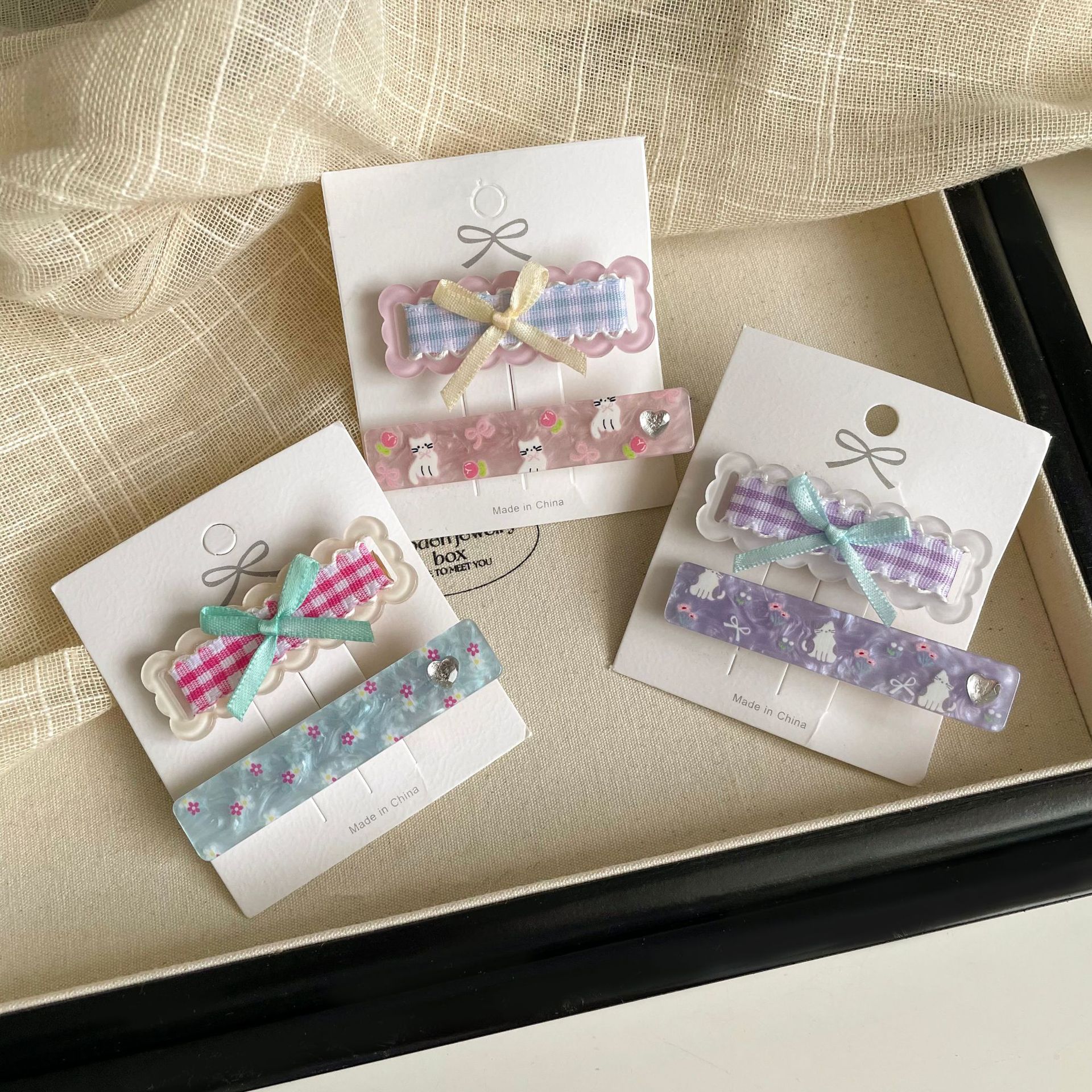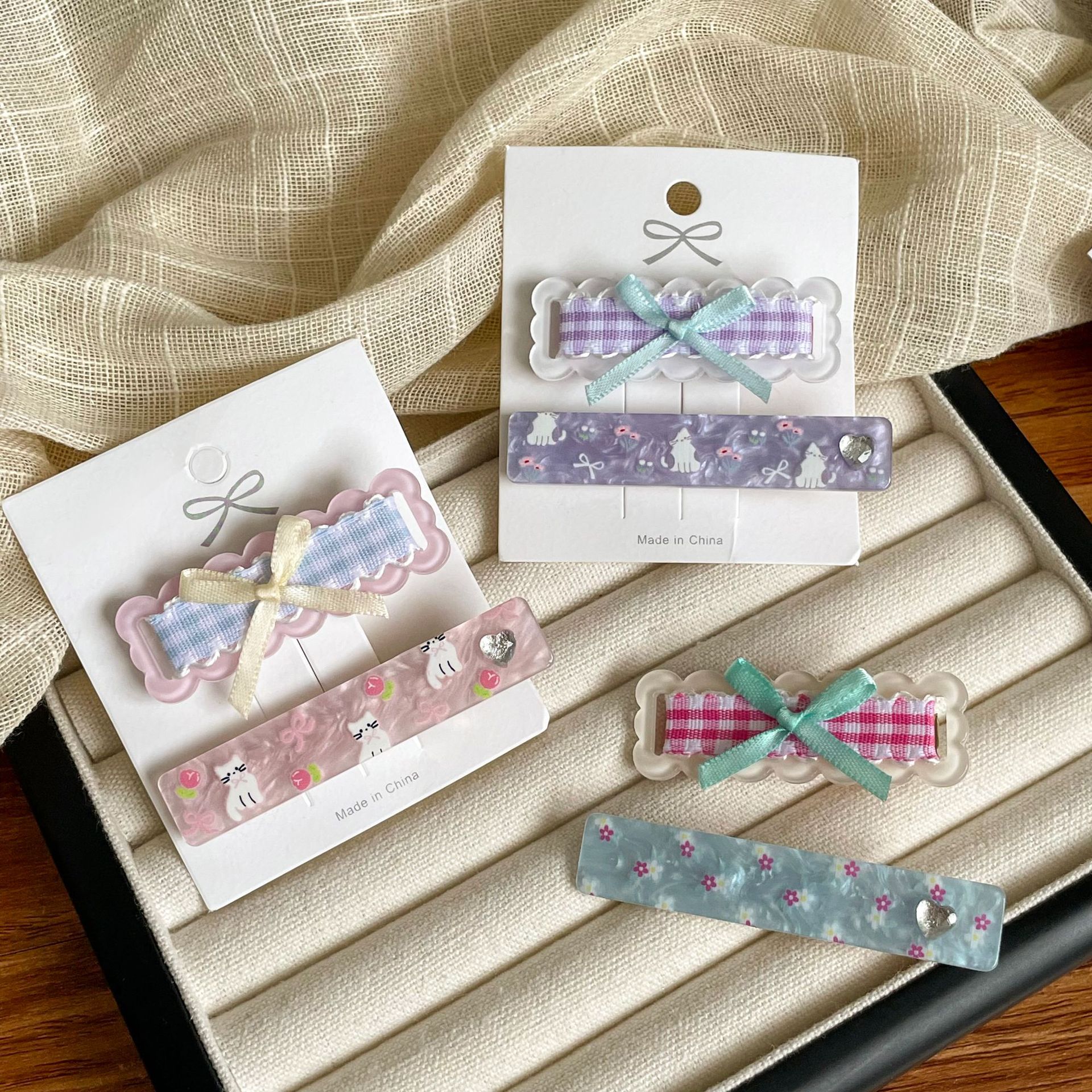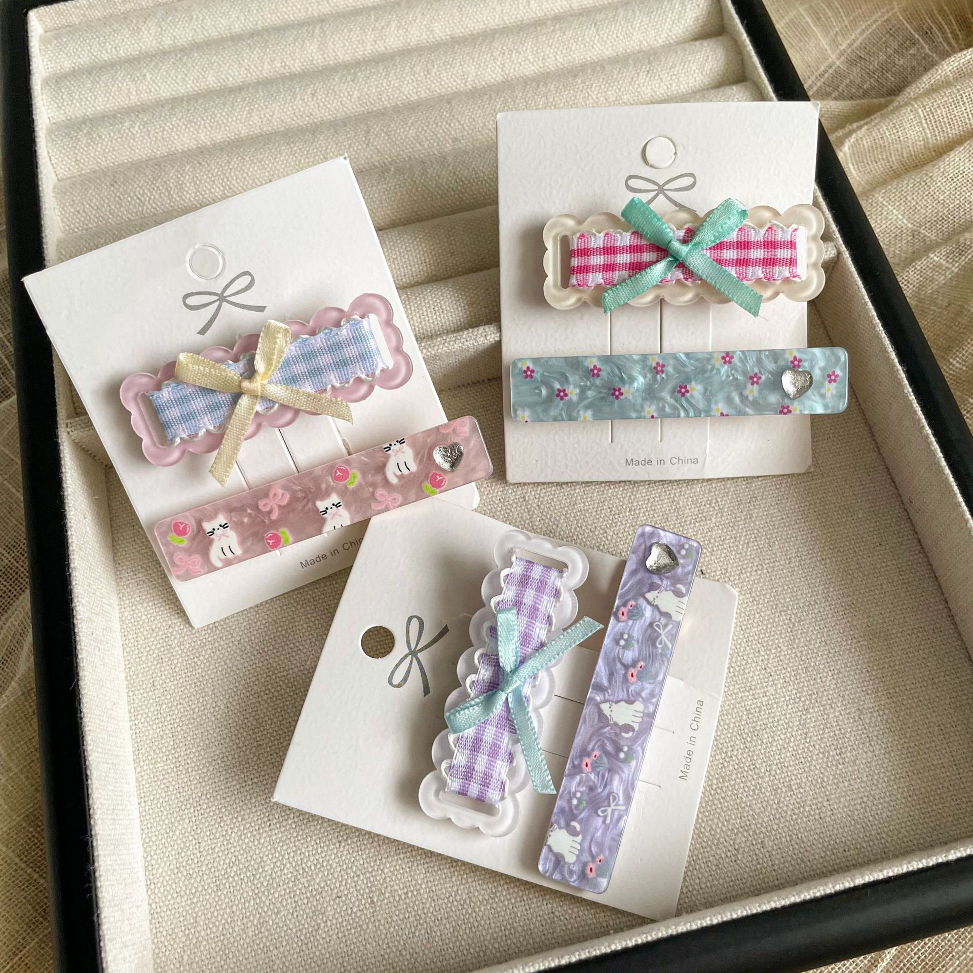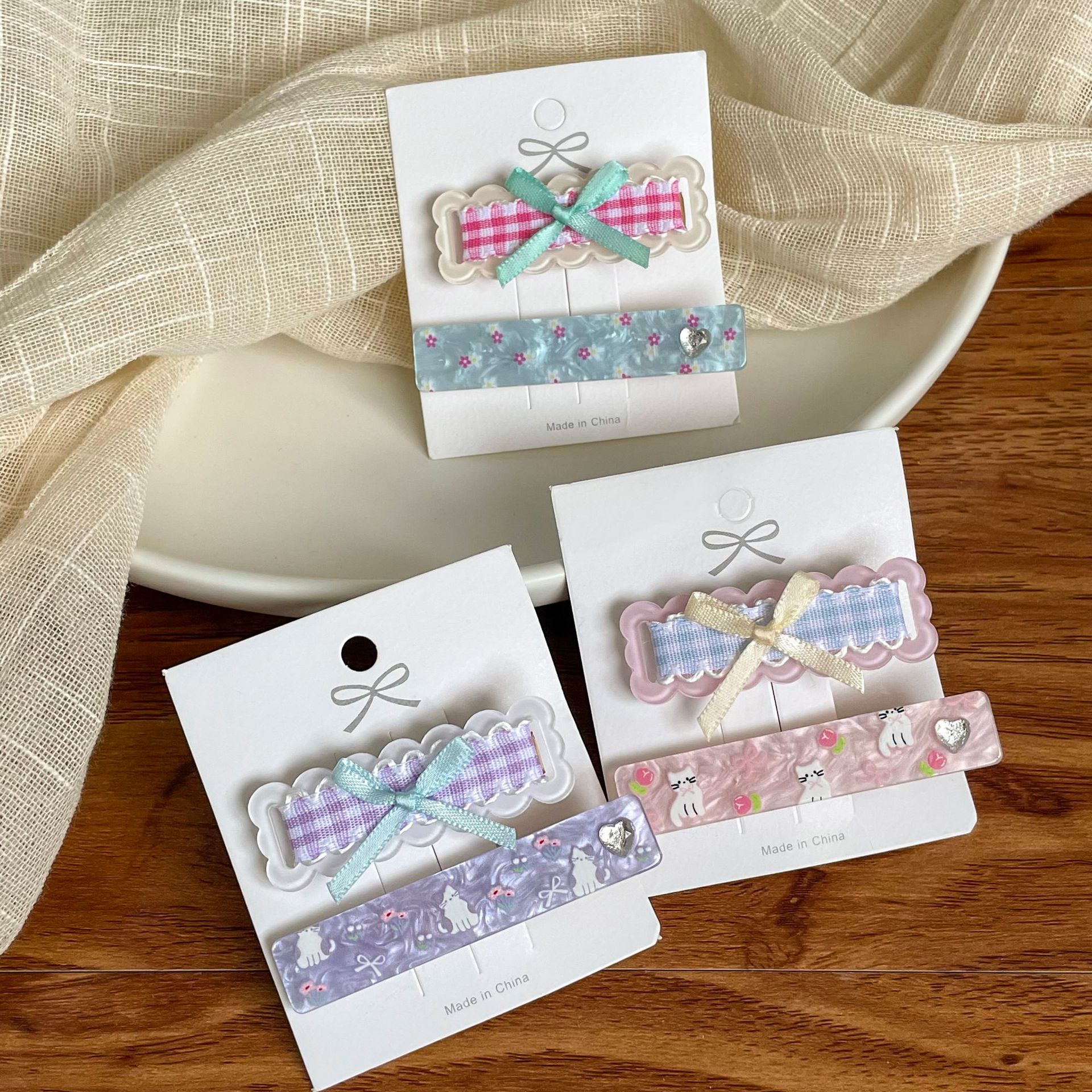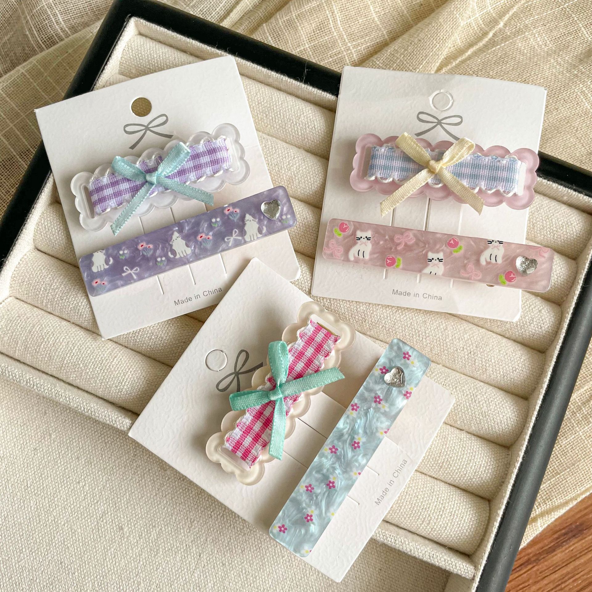 甜美丝带蝴蝶结发夹小清新碎花格纹刘海发卡侧边碎发夹少女心发饰