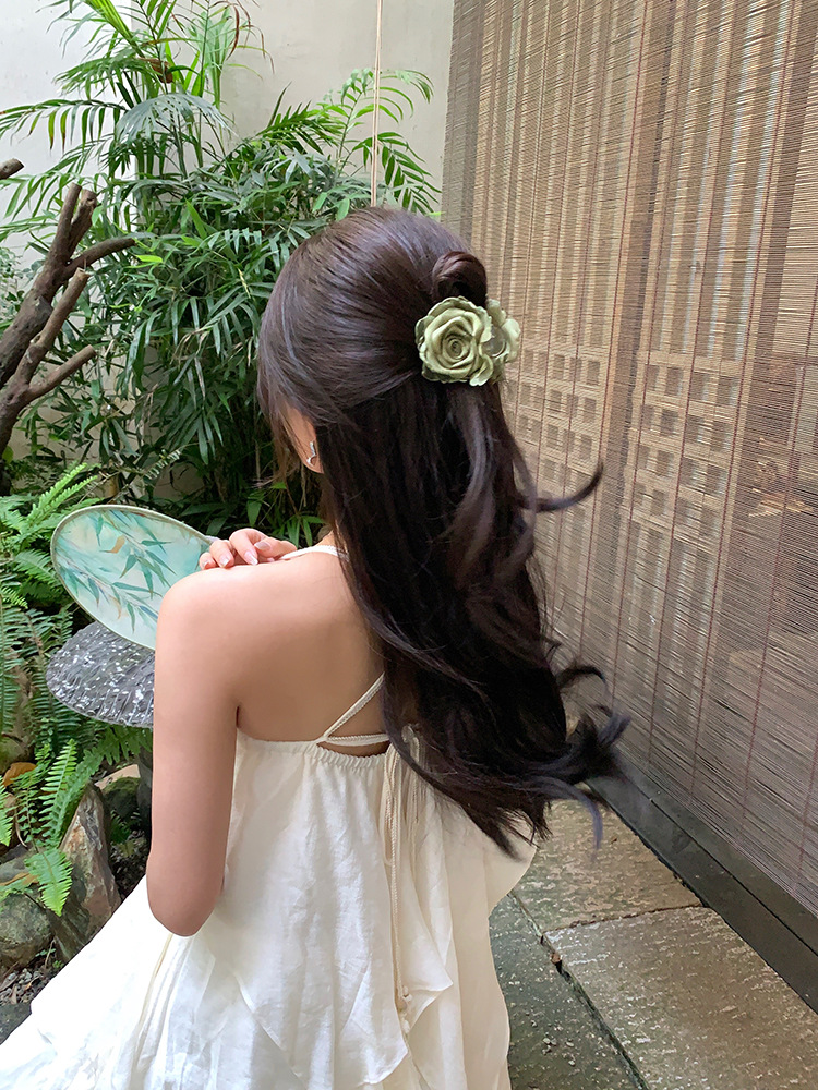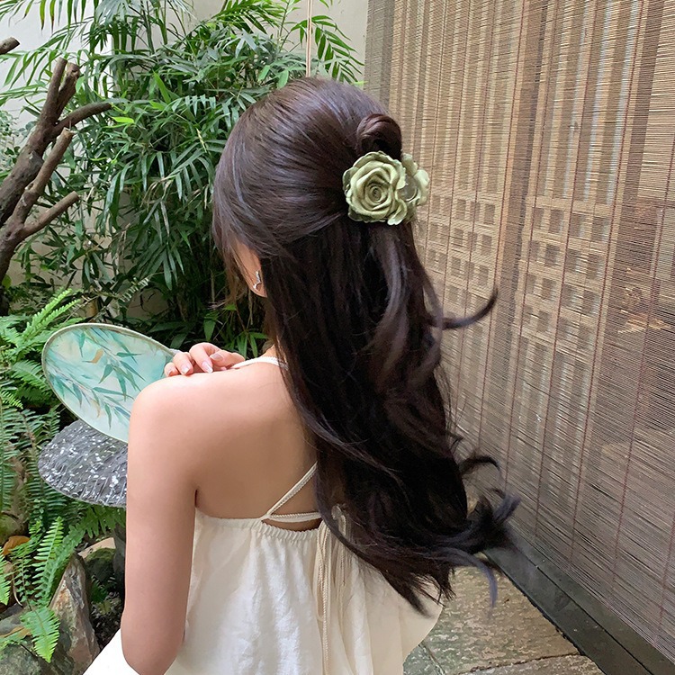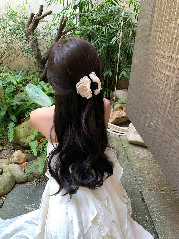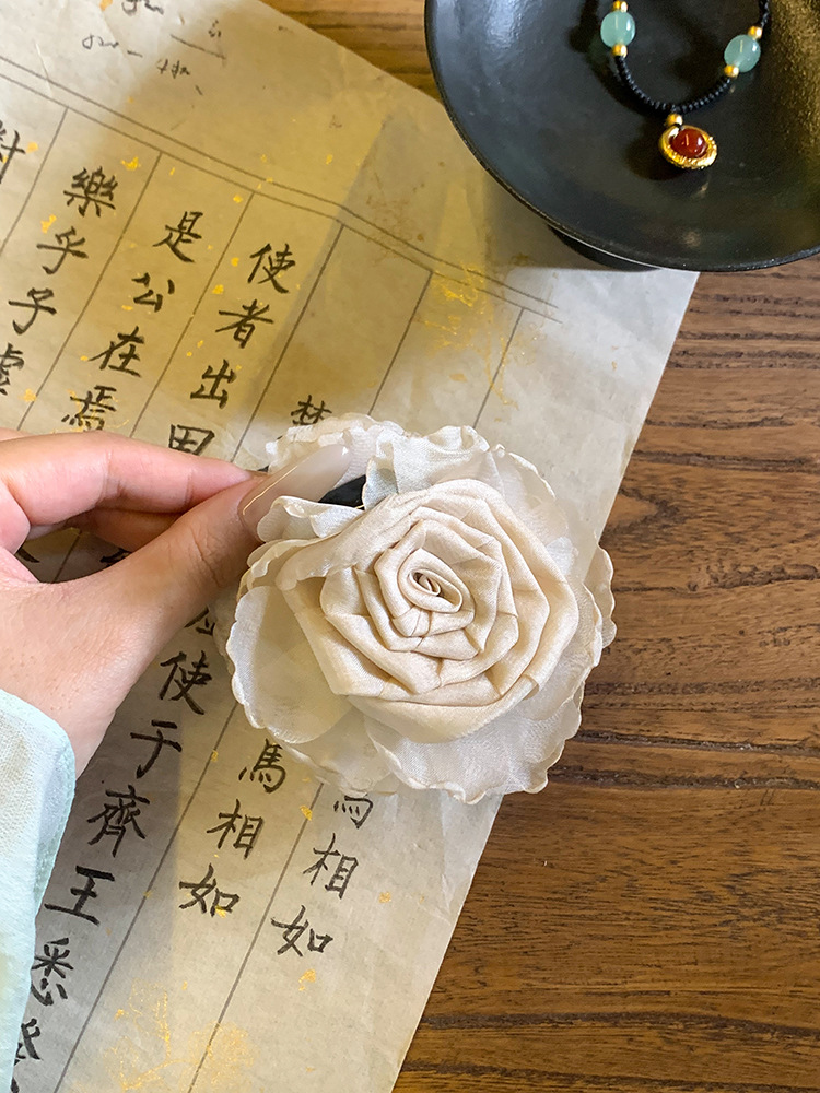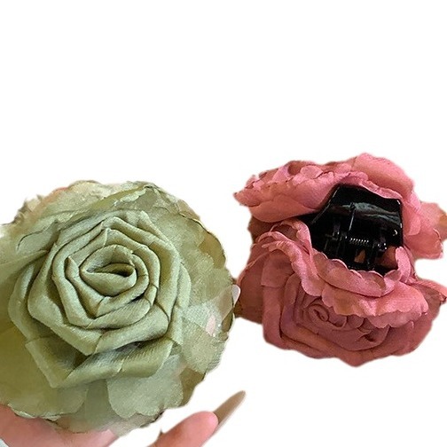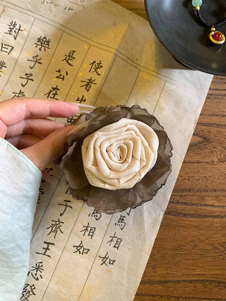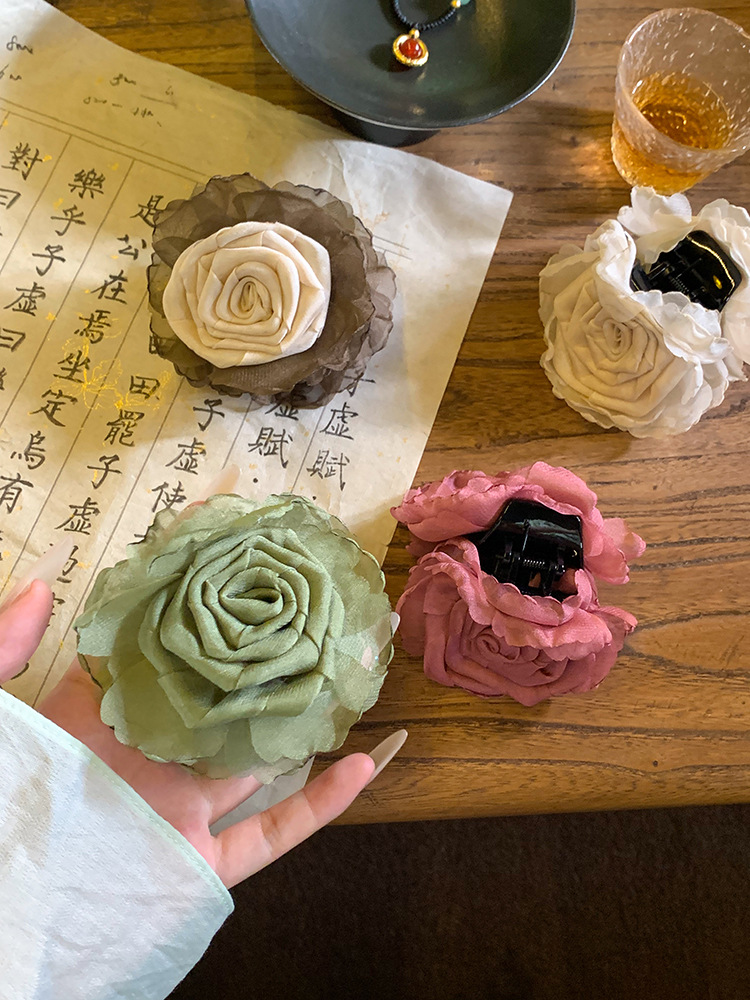 新中式干枯玫瑰花朵发夹女后脑勺半扎发头饰抓夹高级感头花鲨鱼夹