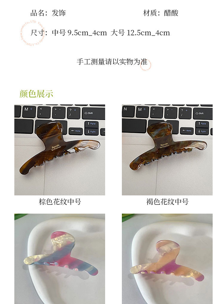 韩国france金标抓夹盘发鲨鱼夹醋酸发夹女夏发饰半扎发高级感头饰