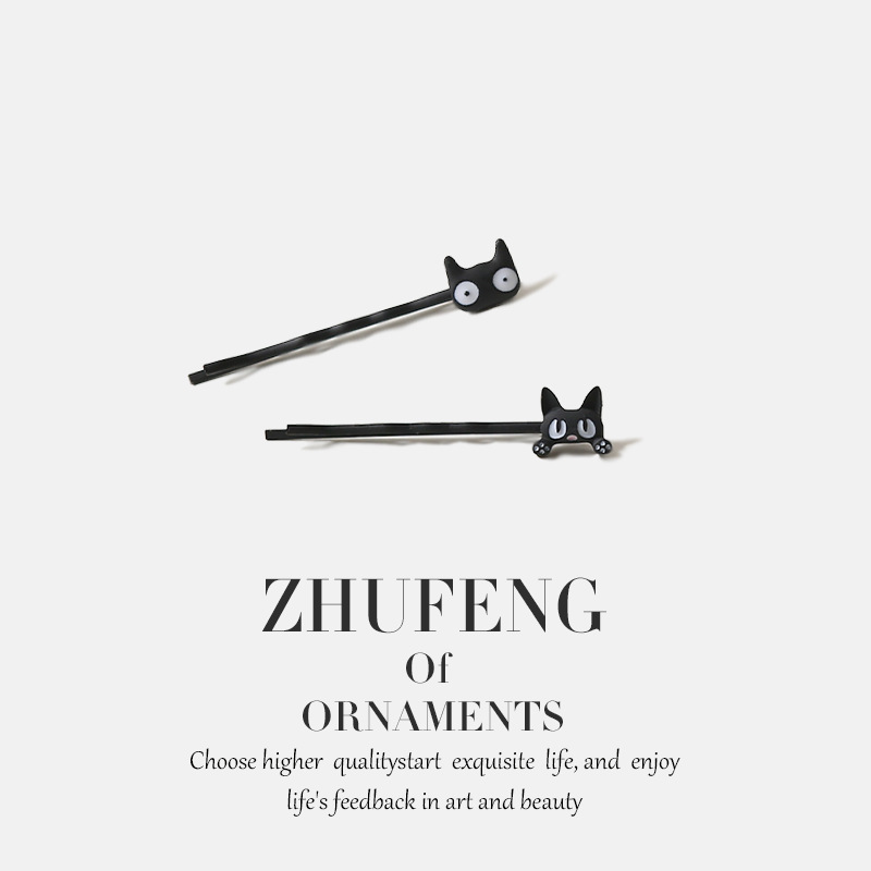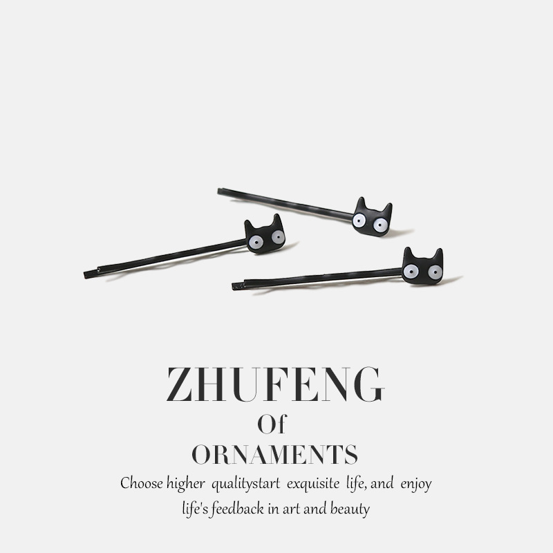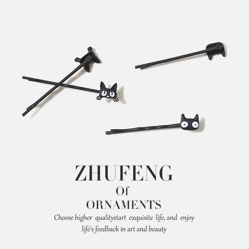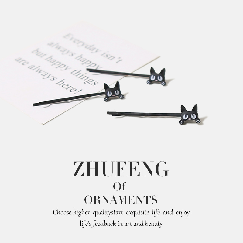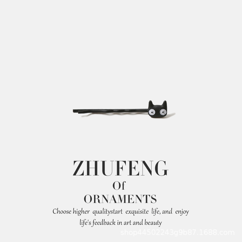 黑色小猫咪发夹日韩简约少女刘海夹可爱一字夹学生侧边夹头饰女