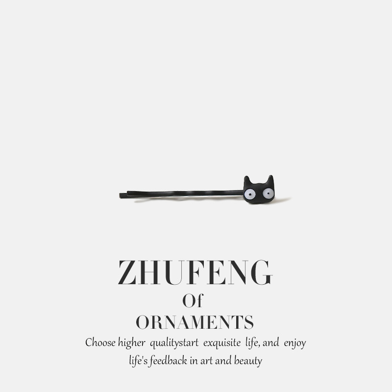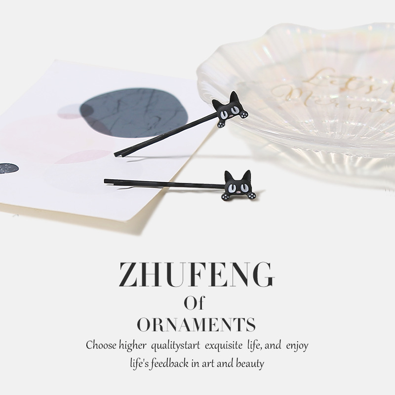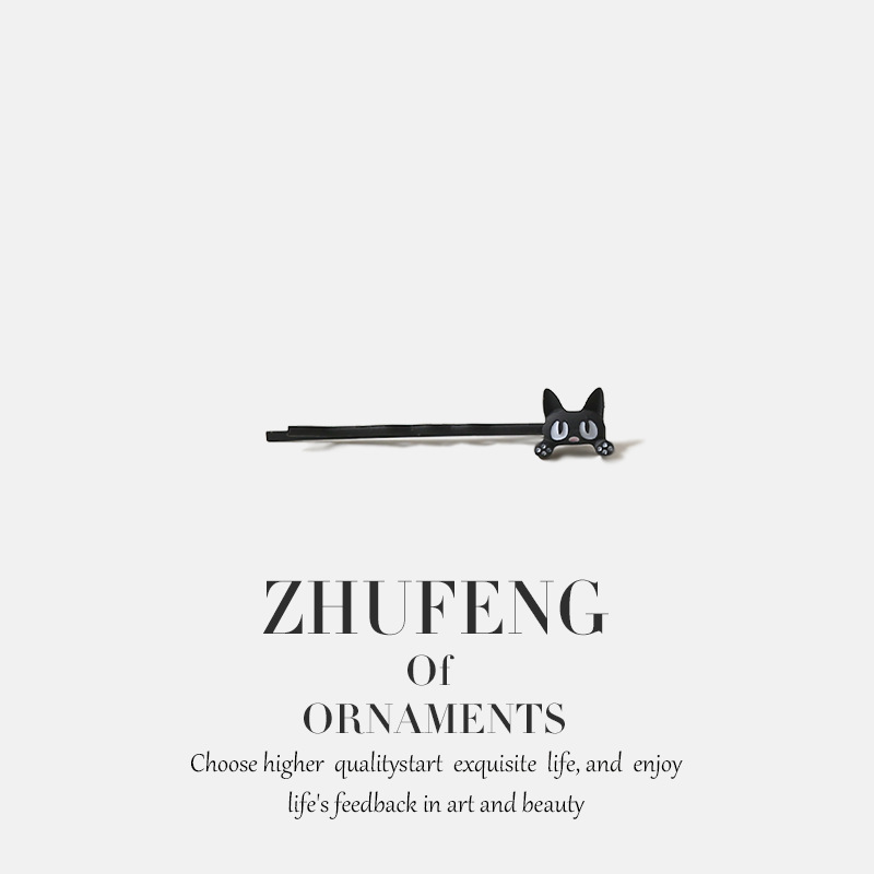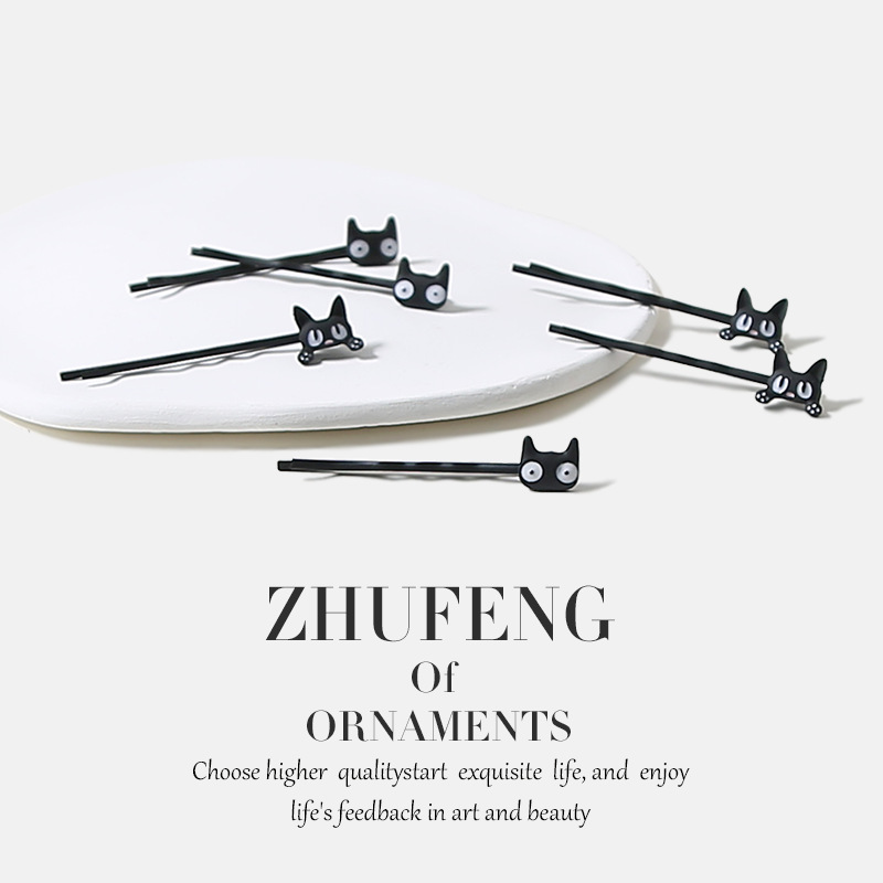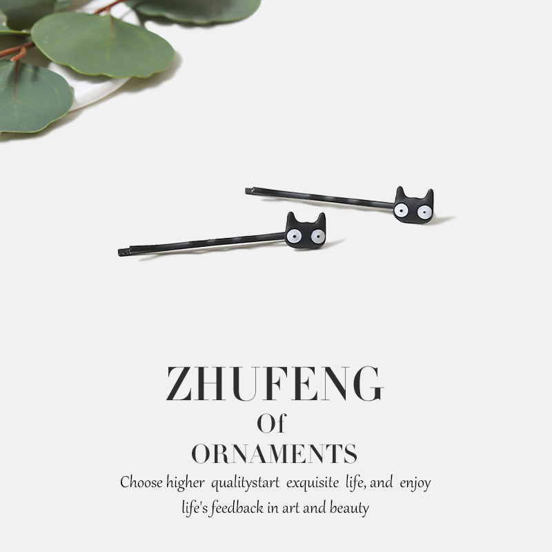 黑色小猫咪发夹日韩简约少女刘海夹可爱一字夹学生侧边夹头饰女