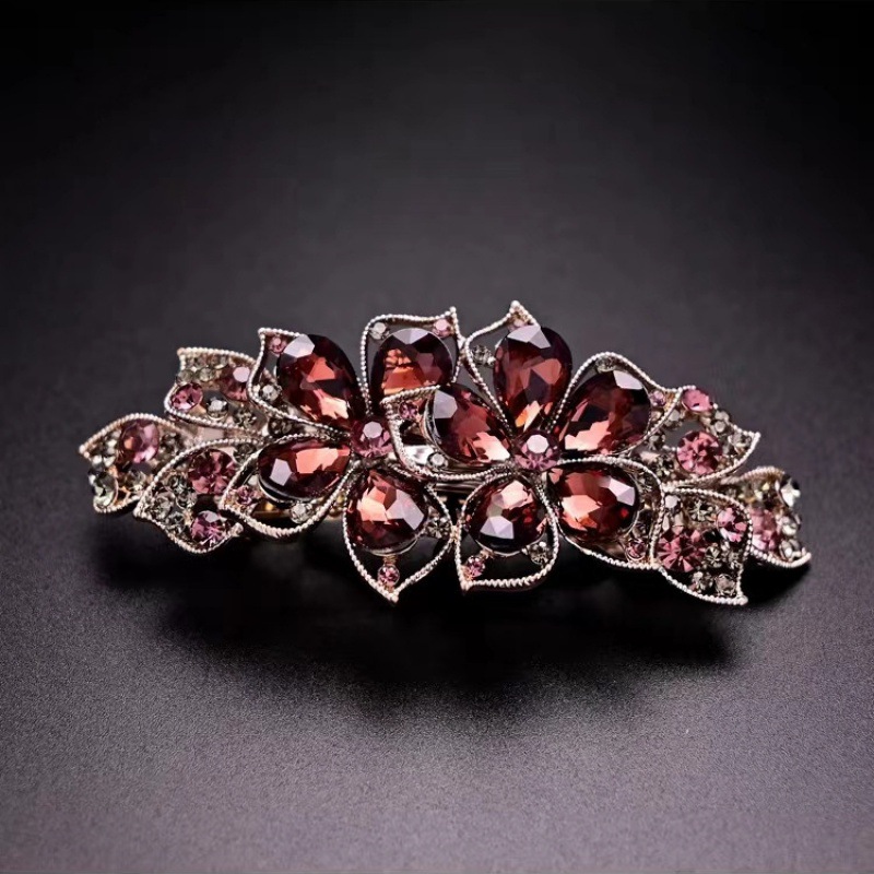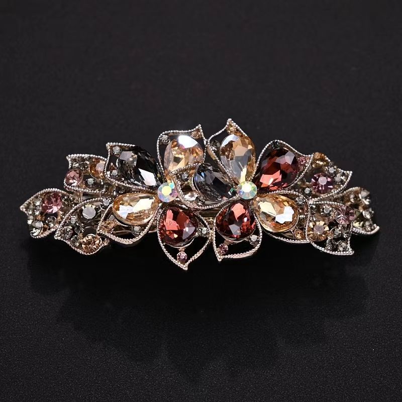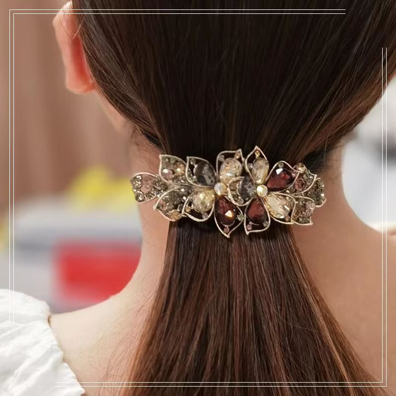 妈妈发夹高端仿水晶头饰简约优雅盘头马尾大号弹簧厂家直销代发