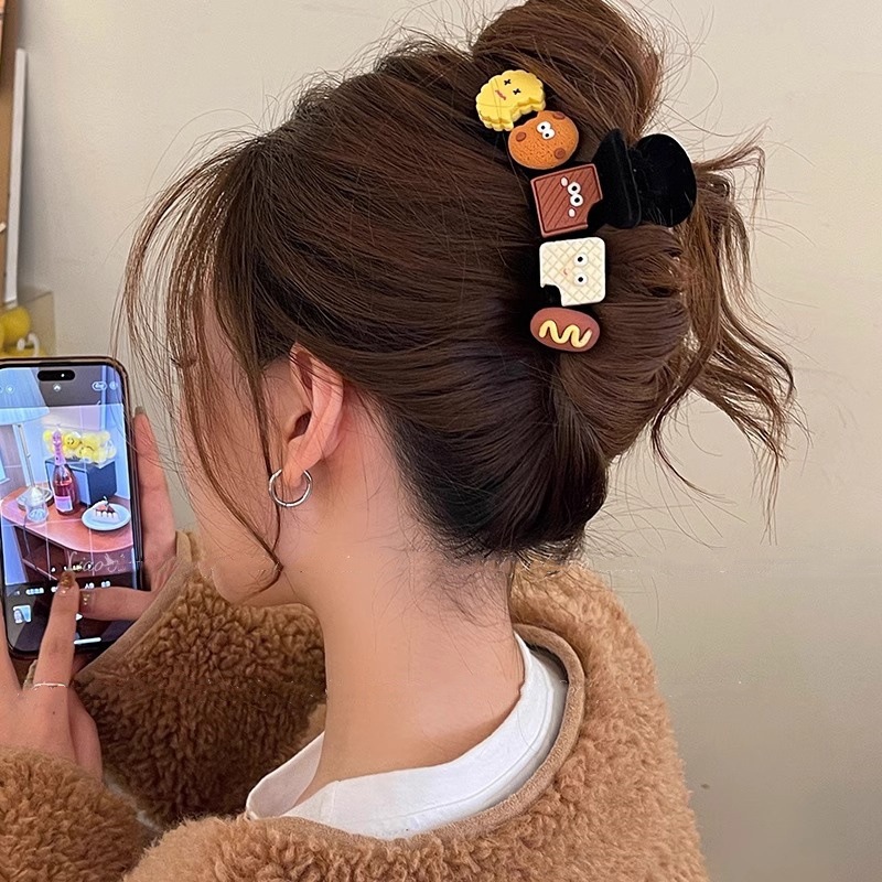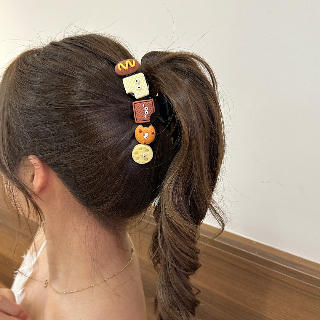小吃货~饼干抓夹女2024新款高级感发夹后脑勺春夏鲨鱼夹子头饰ins