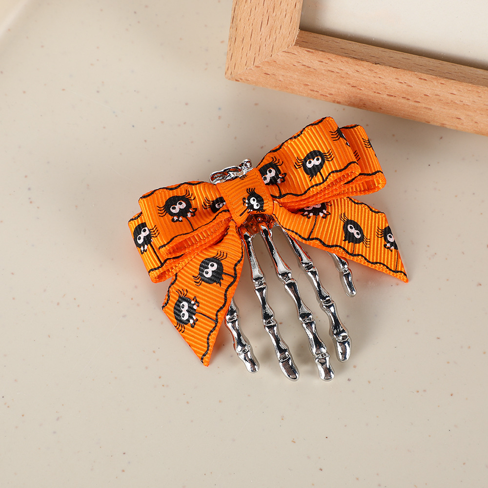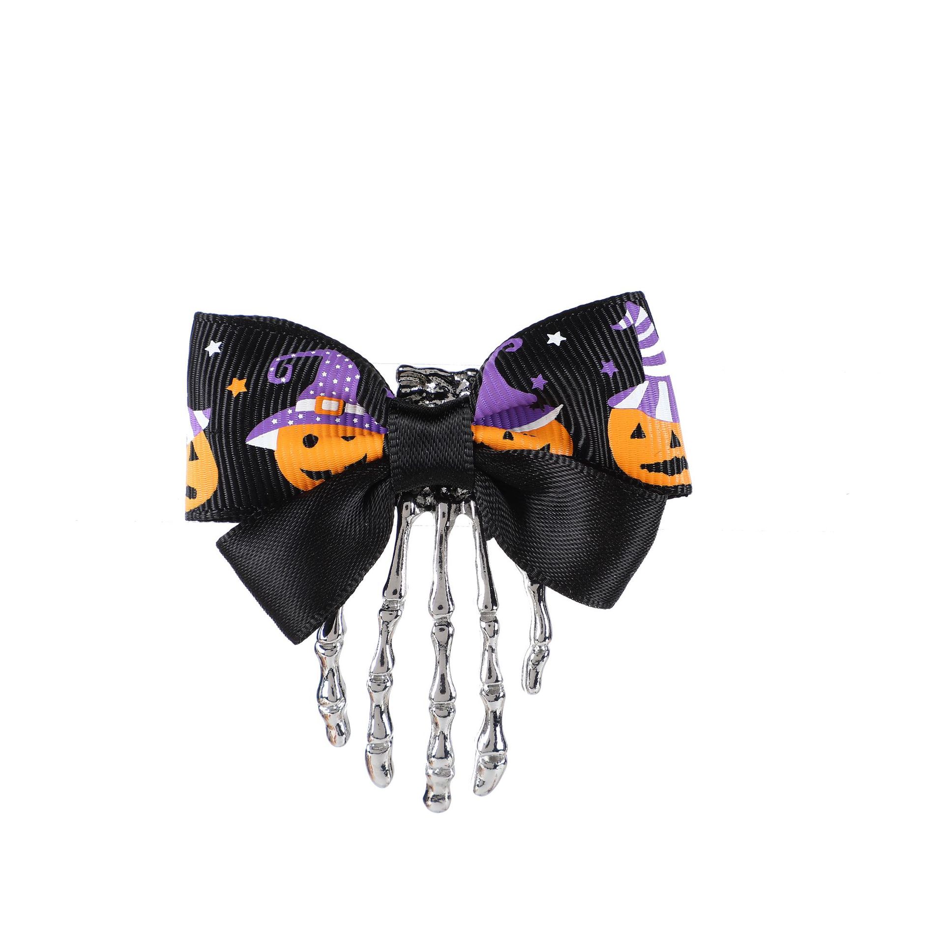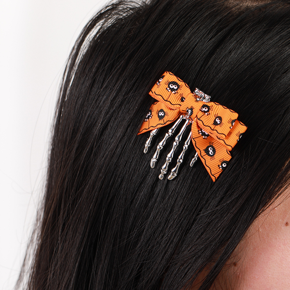 原创个性万圣节发夹复古骷髅鬼手爪蝴蝶结头饰鸭嘴夹子后脑勺发卡