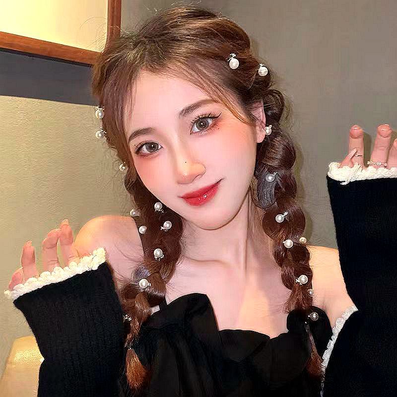 超仙珍珠豆豆发扣发夹网红盘发编发侧边发饰迷你小扣夹子头饰点缀