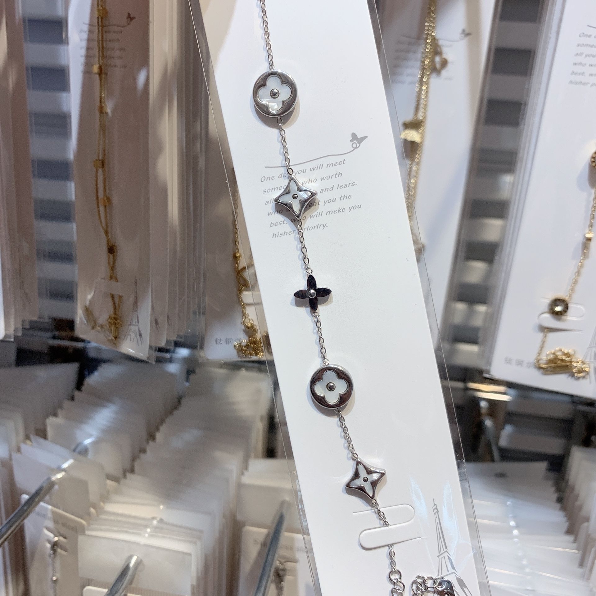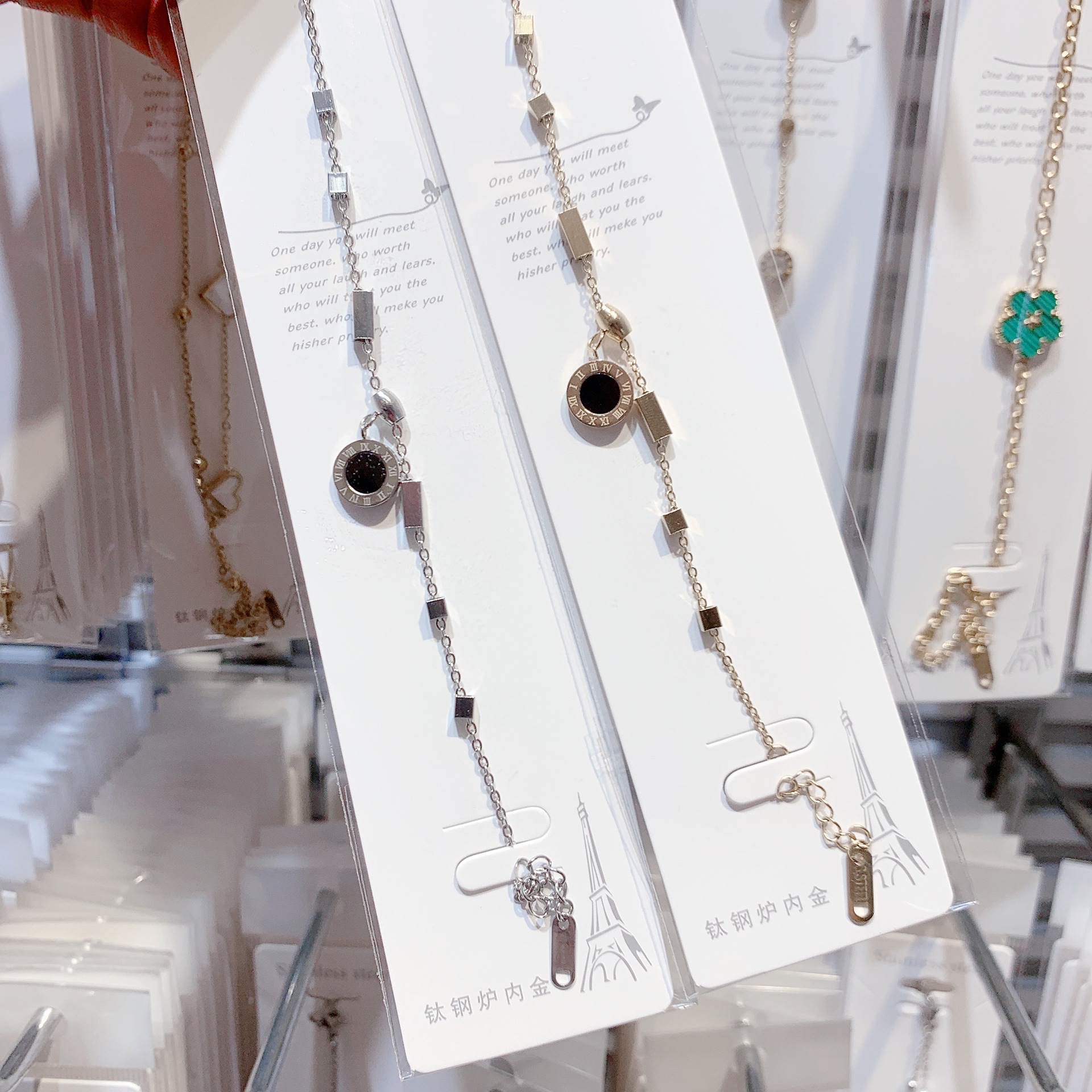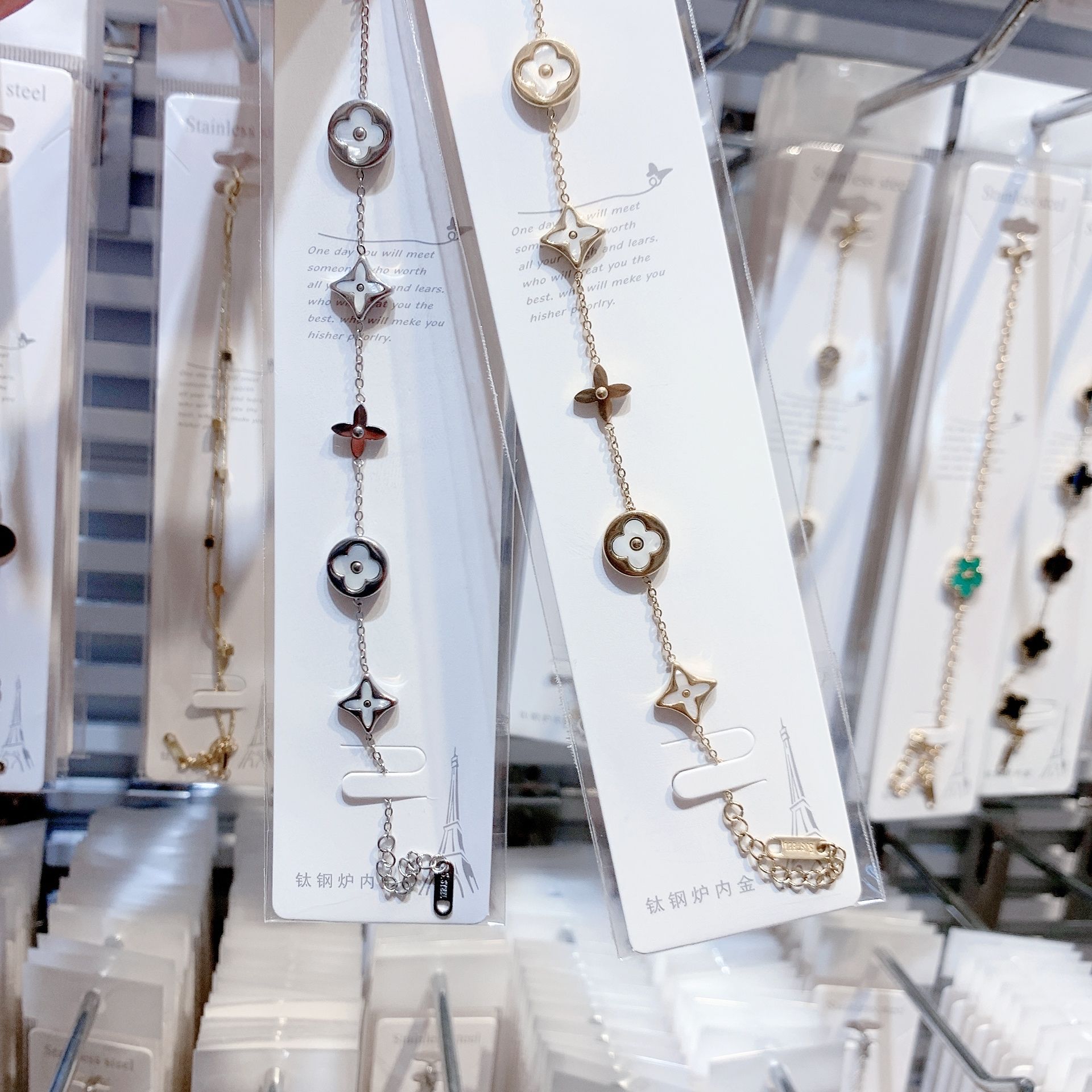 【洗澡可带不掉色】跨境大牌手链钛钢手链四叶草手链双面手链