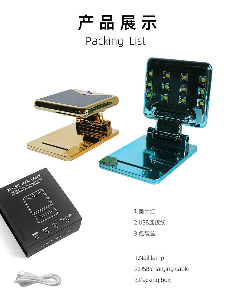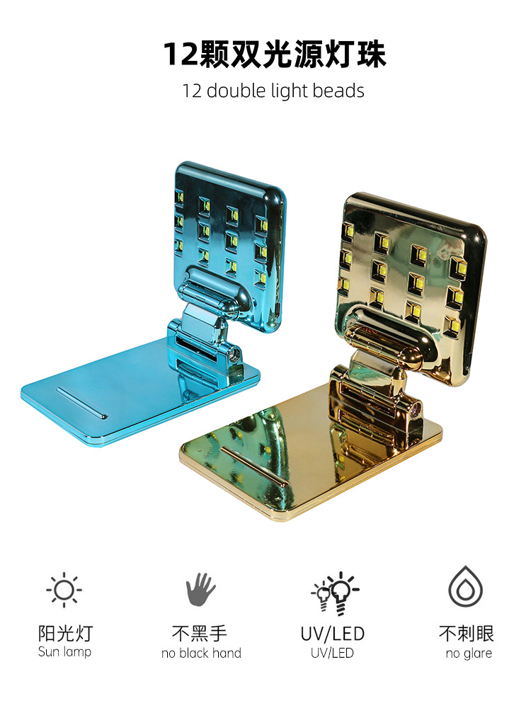 镜子便携可折叠充电美甲灯28W迷你蓄电光疗机一字灯速干不黑手