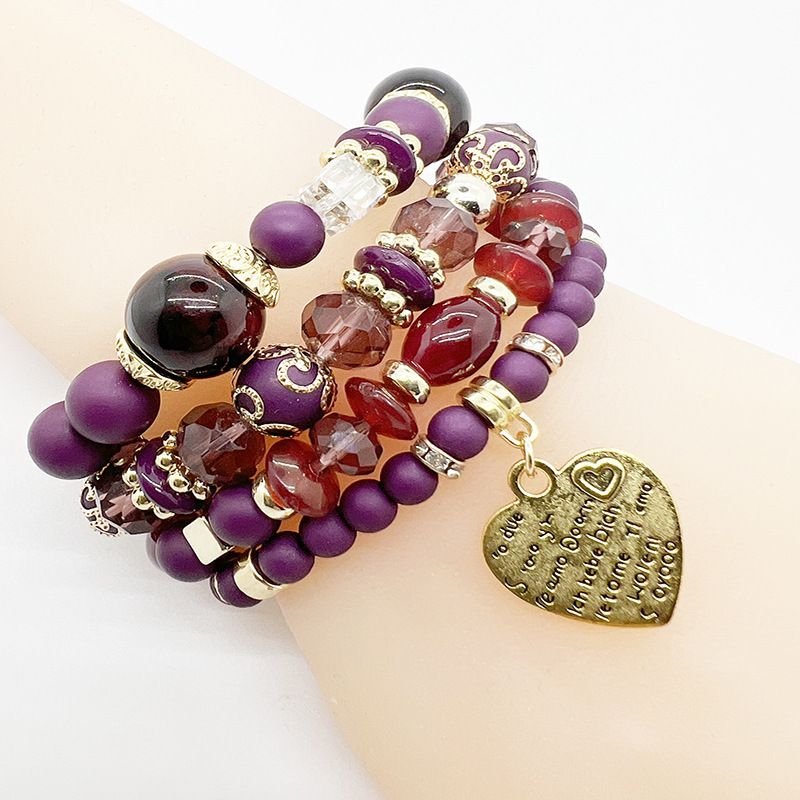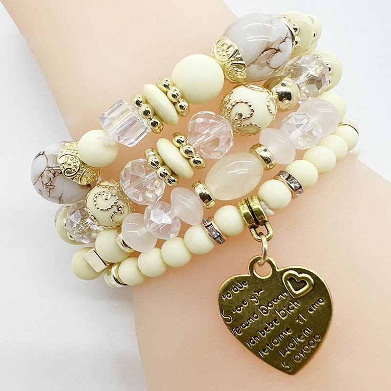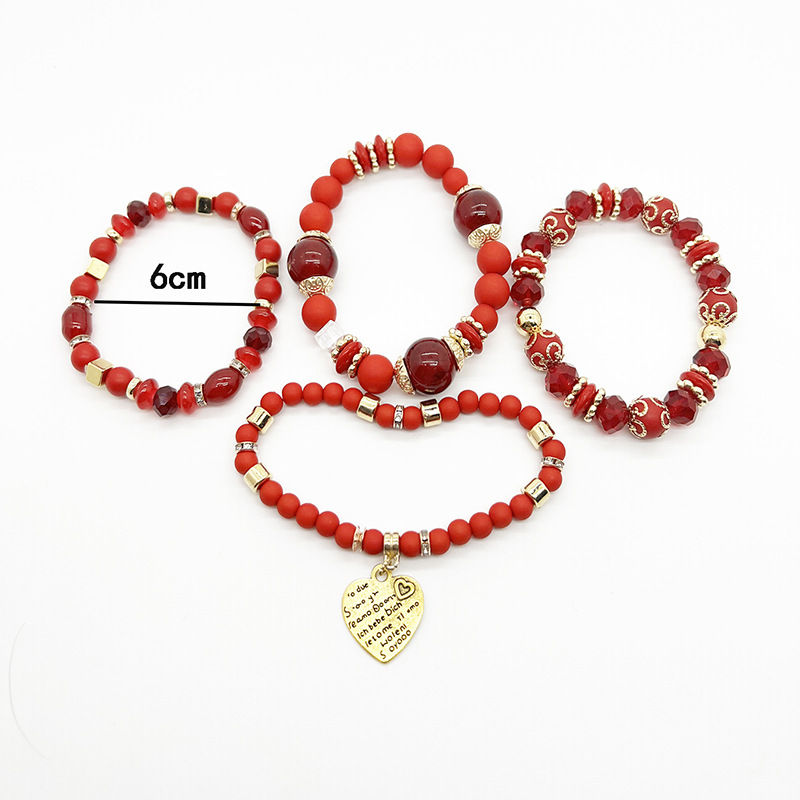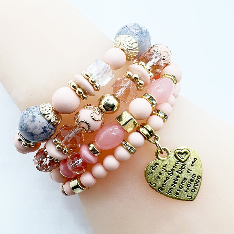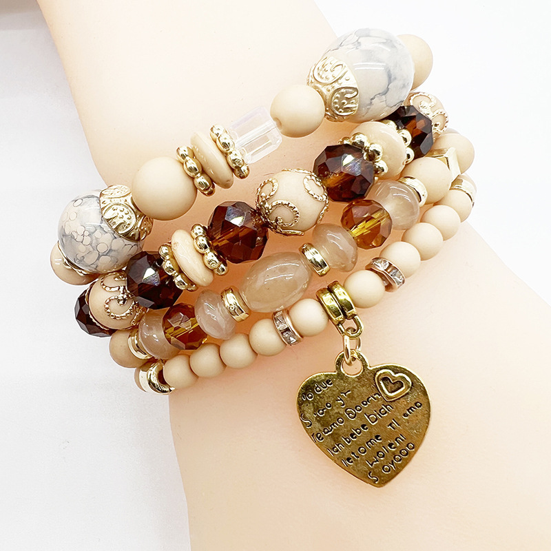 ins博主复古波西米亚串珠手链爱心吊坠跨境多条叠戴组合百搭首饰