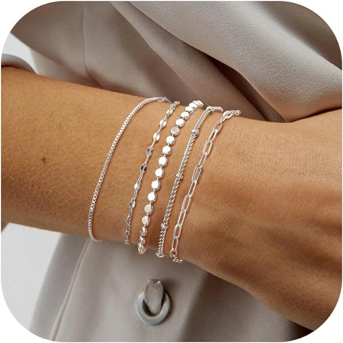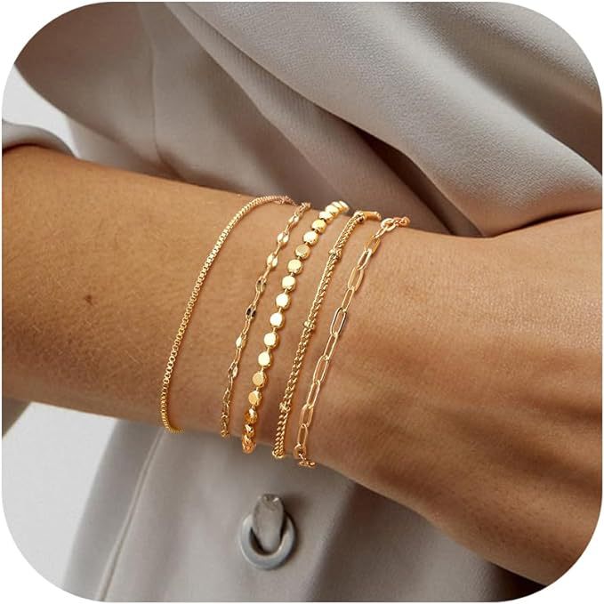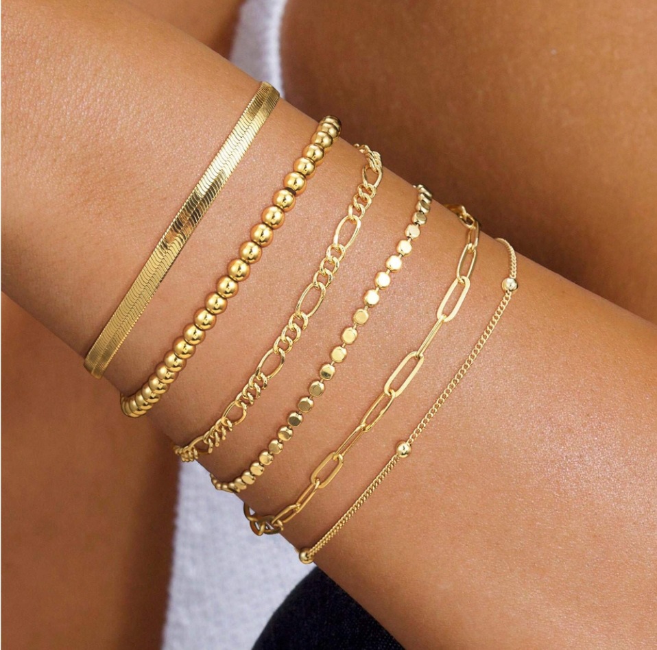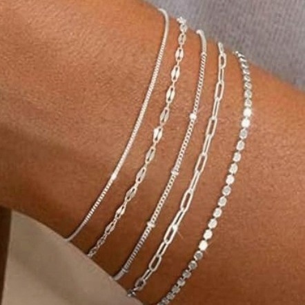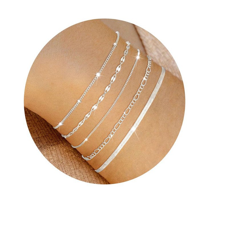 亚马逊5件套手链 欧美跨境金属费加罗链女士手链套装时尚简约手链