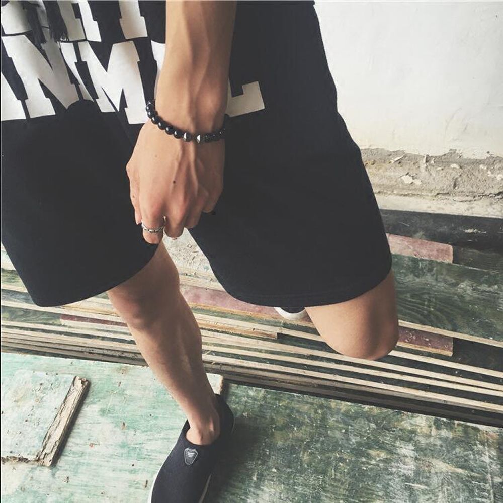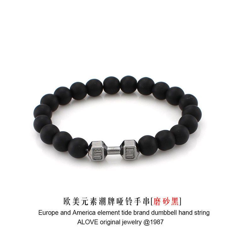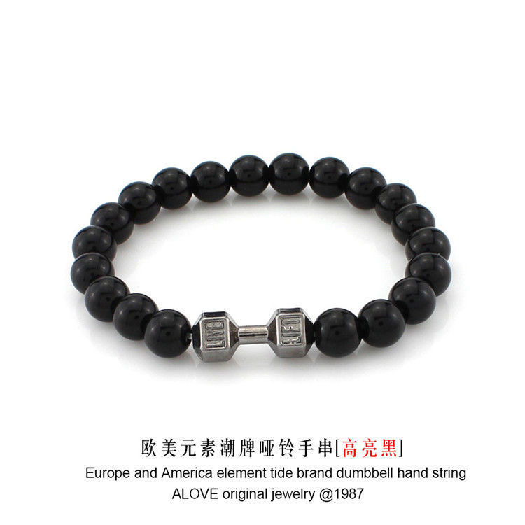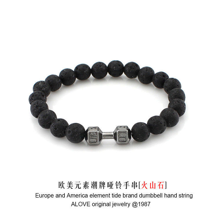 欧美潮牌手串黑金刚火山石金属哑铃手链佛珠串珠百搭手饰厂家直销