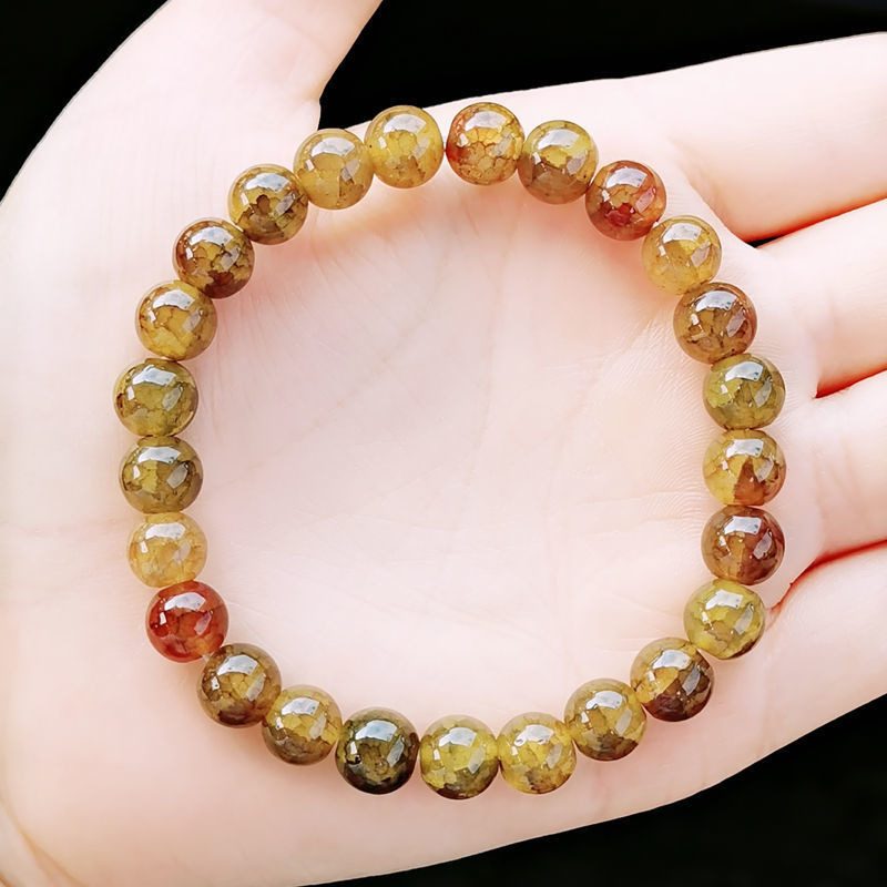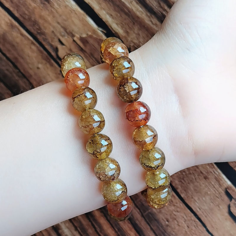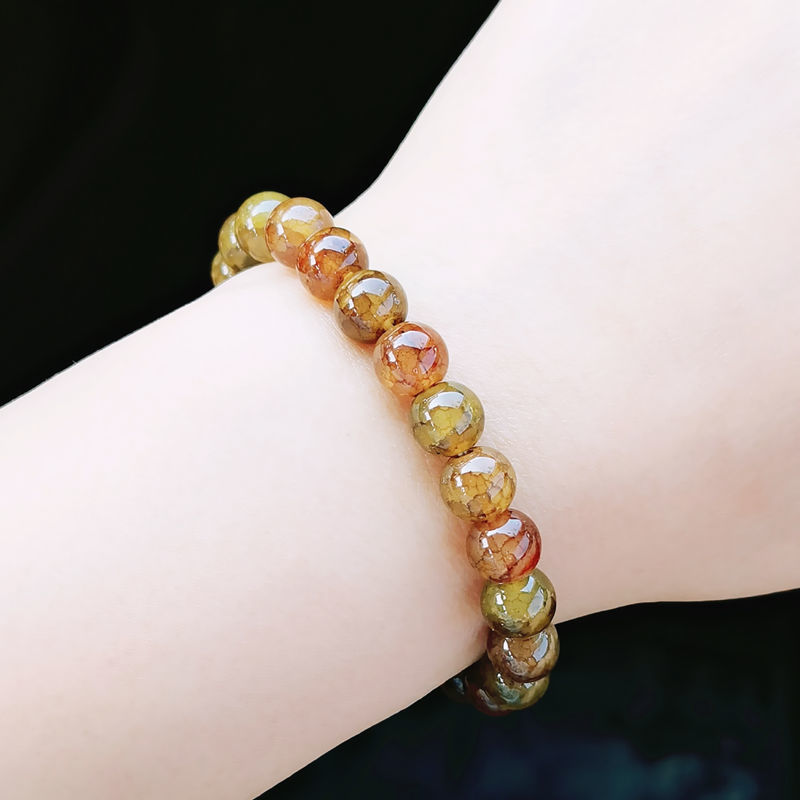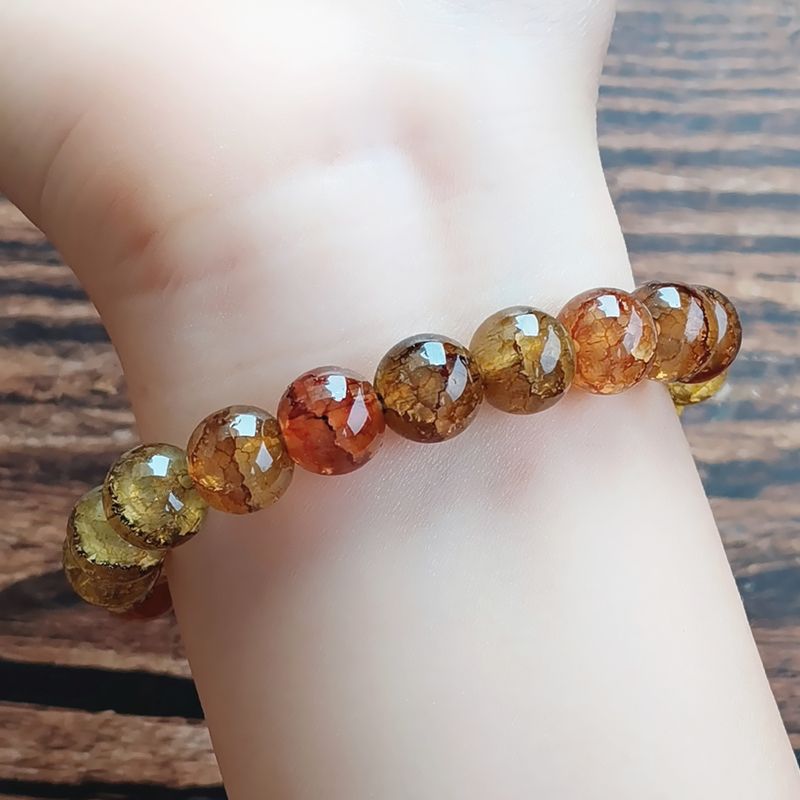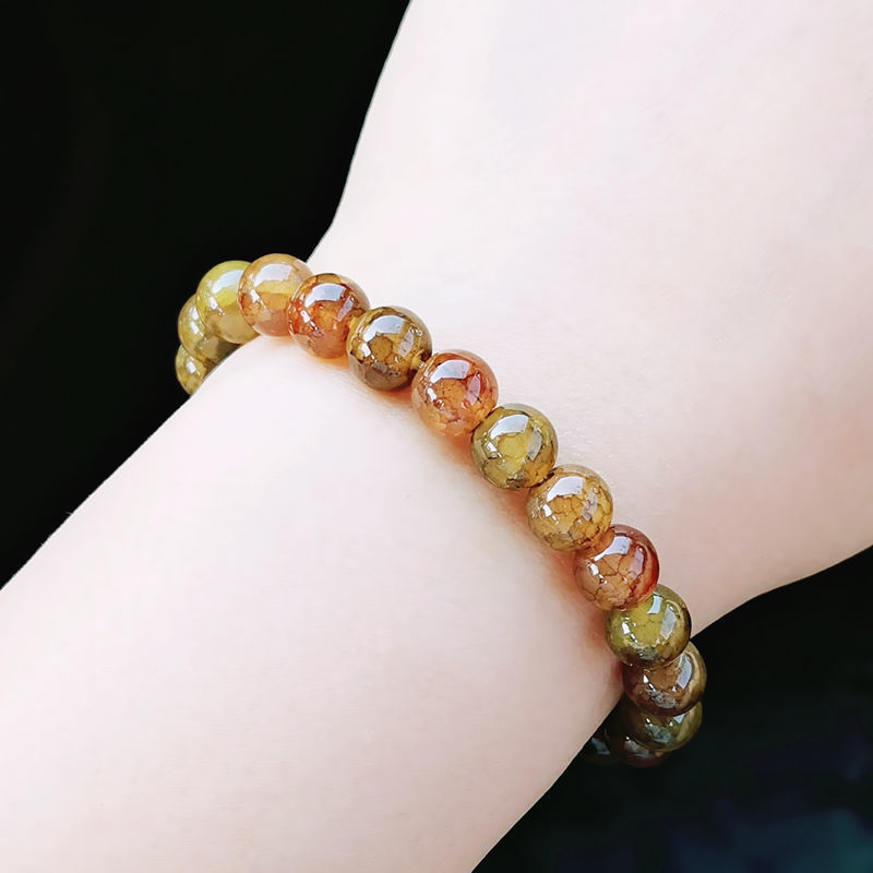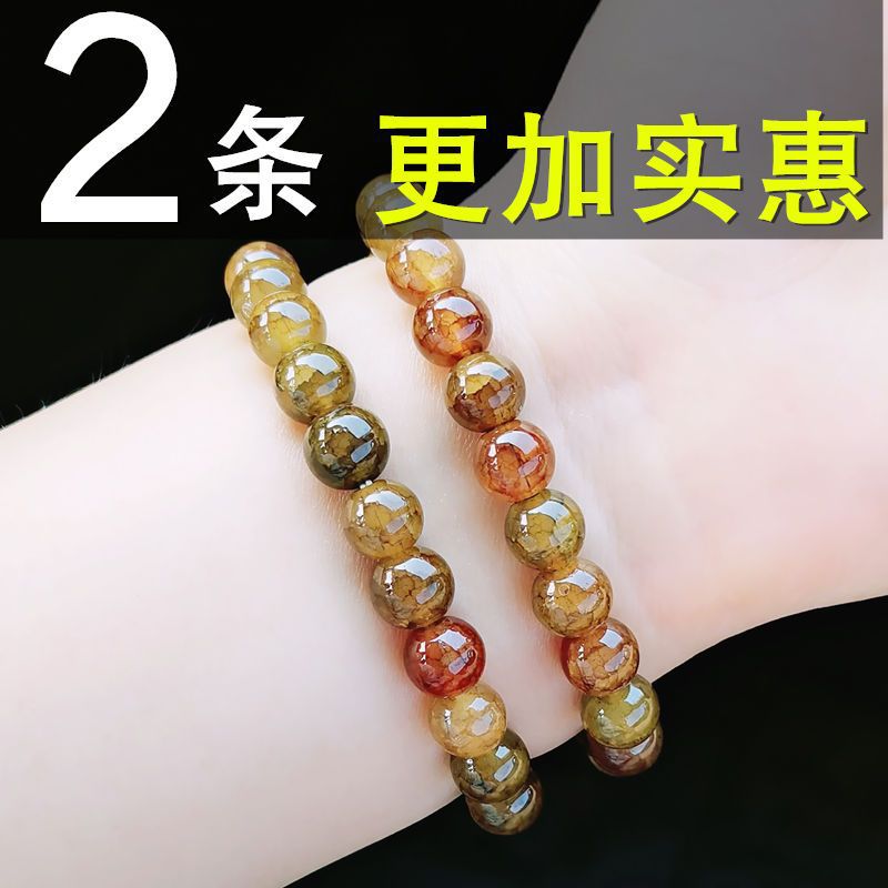 义乌手串感8茶色龙纹珠手链女款个性裂纹圆珠气质女士闺蜜