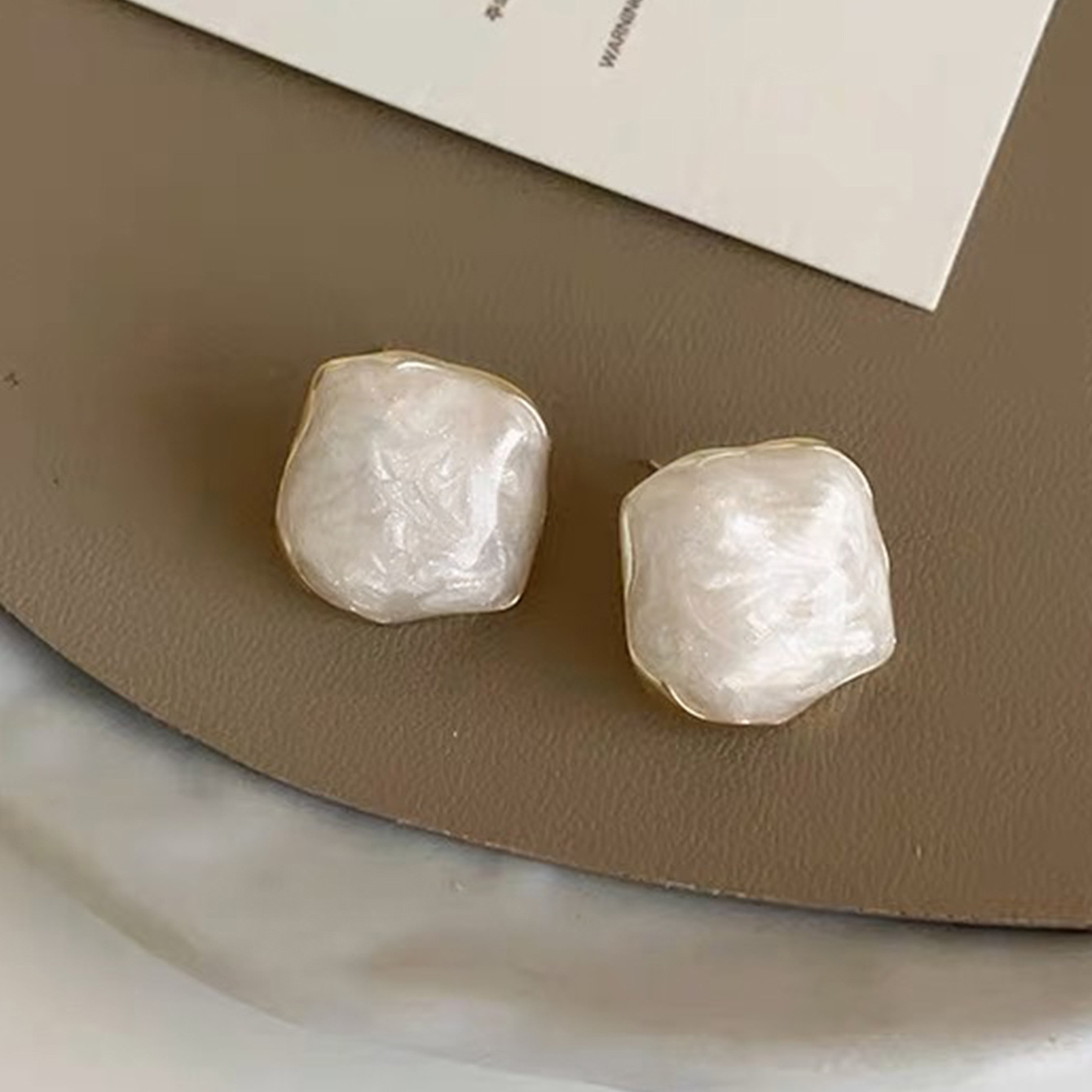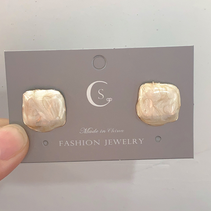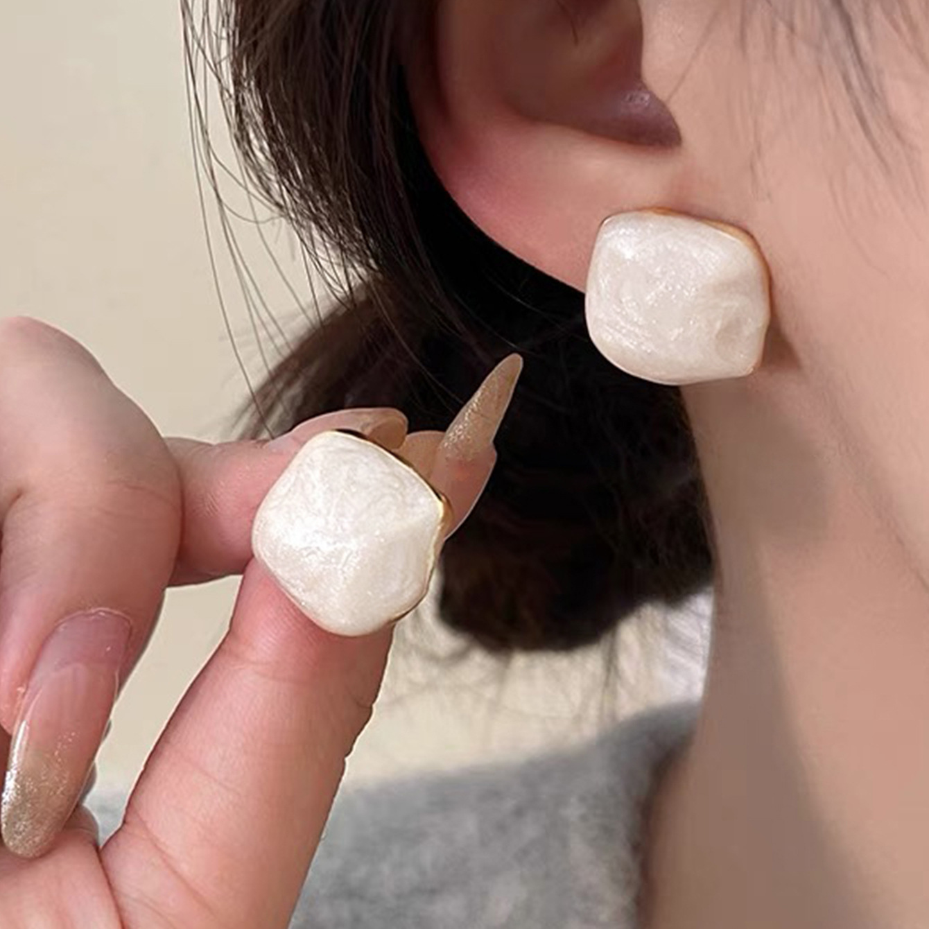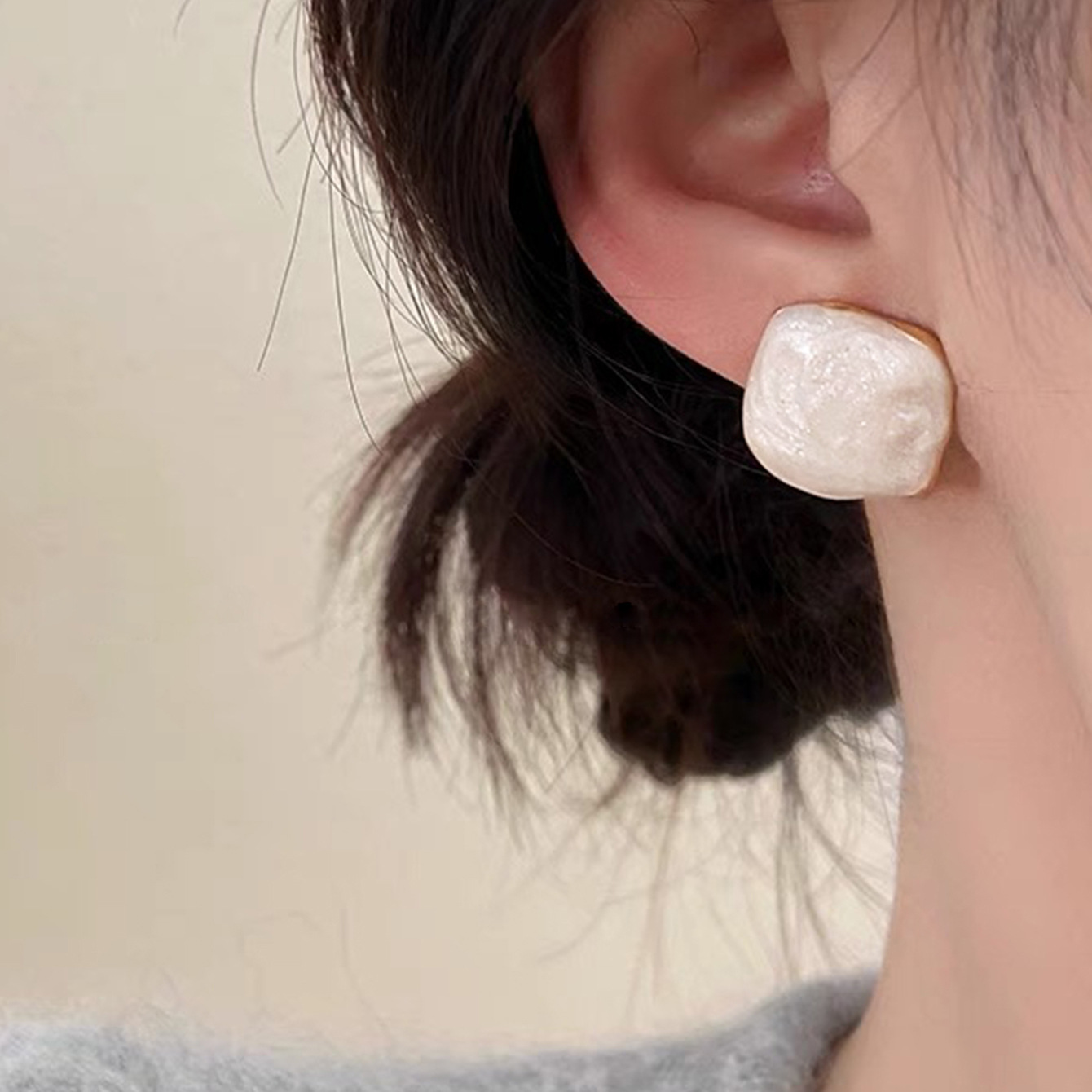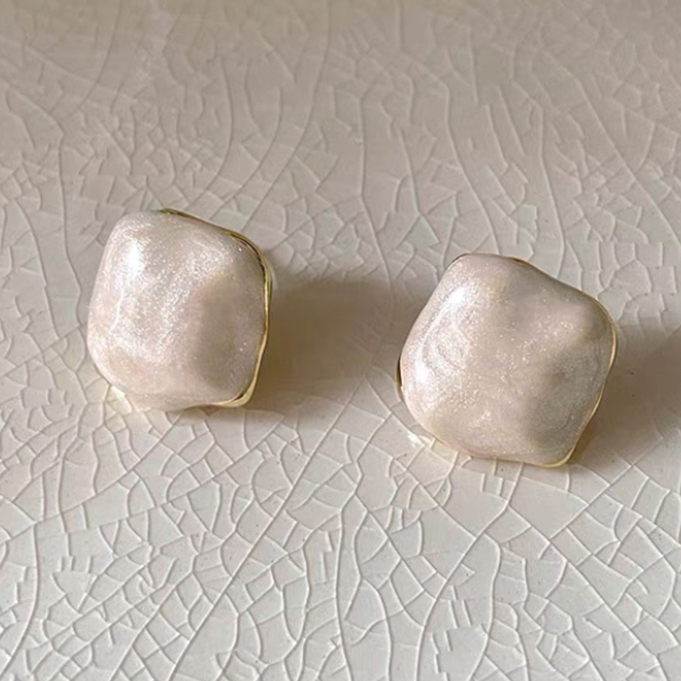 S925银针高级感不规则方形滴油耳钉法式复古气质简约大气耳环耳饰