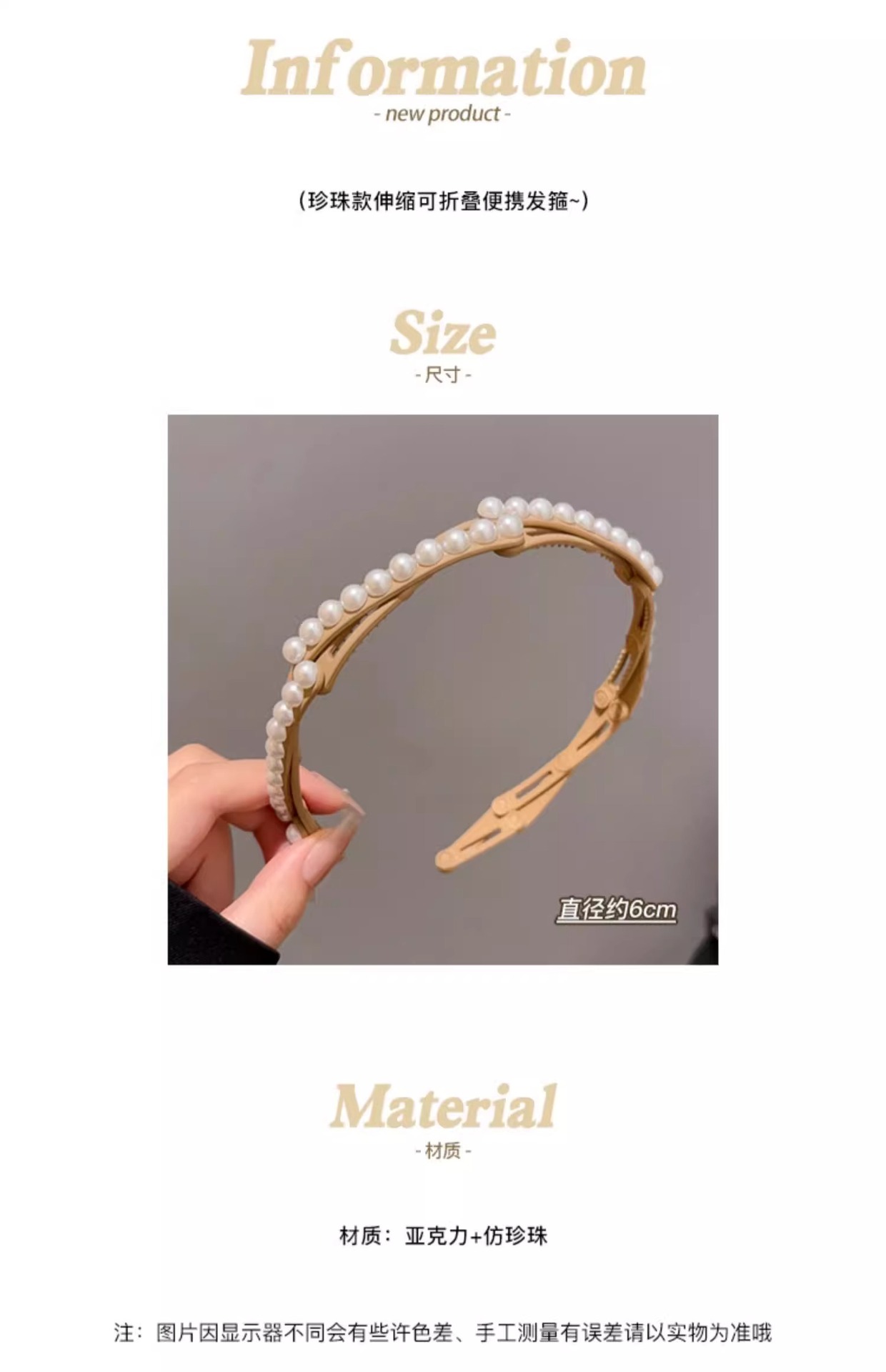 珍珠可伸缩旅行折叠发箍女2024新款发旅头箍碎发发卡洗脸专用发捆