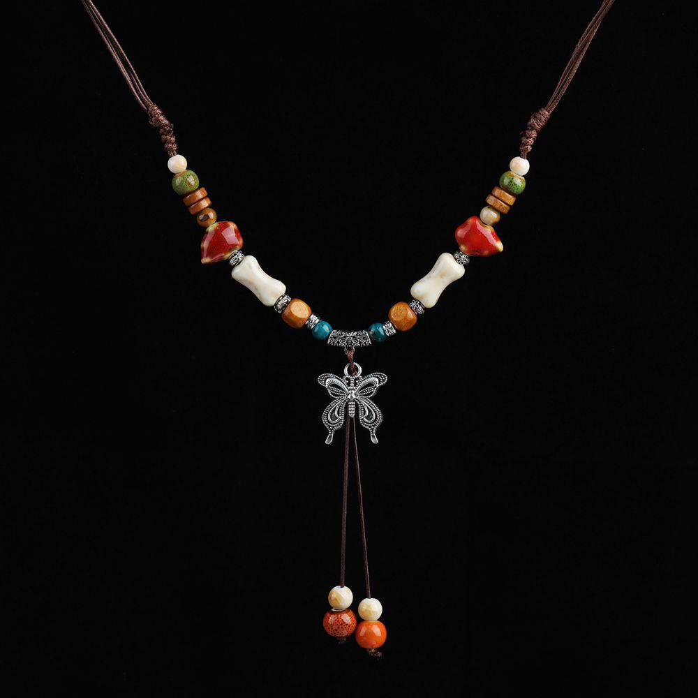 厂家货源批发中式民族风蝴蝶项链小众古风长款毛衣链编织锁骨链潮