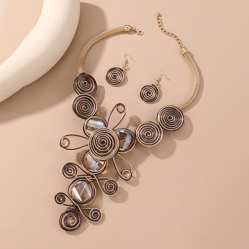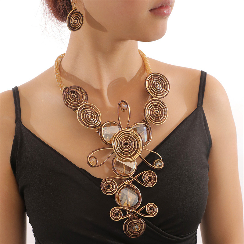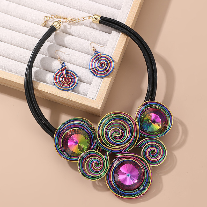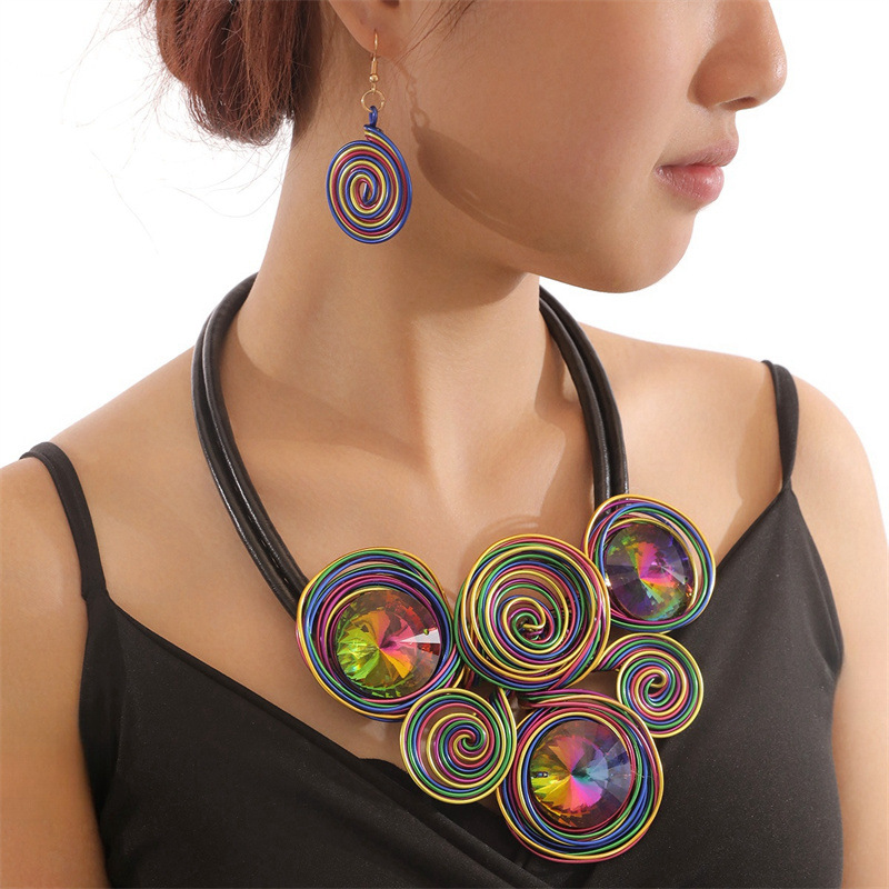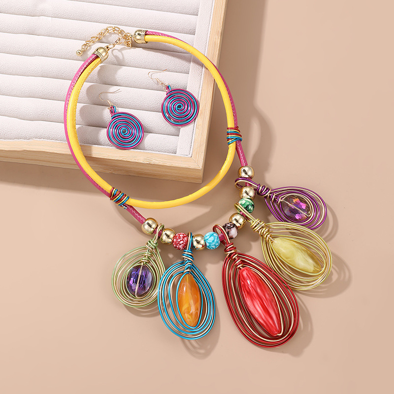 SZ0796跨境欧美销非洲部落民族节日夸张项链编织耳环项链套装批发