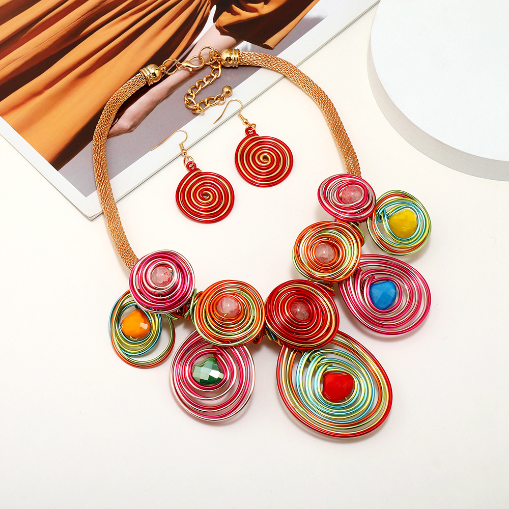 跨境热销欧美时尚夸张项饰波西米亚非洲部落金属手工线圈项链项圈
