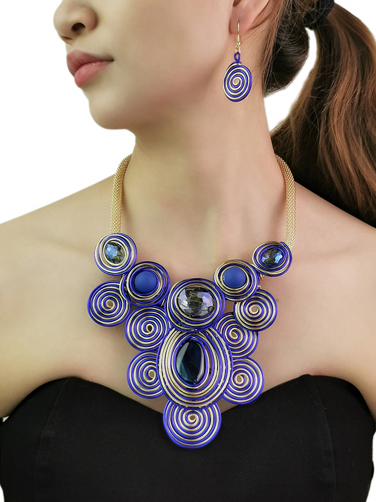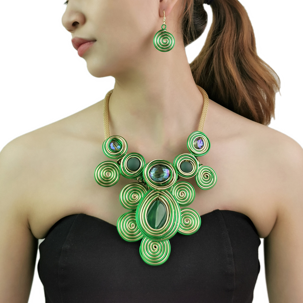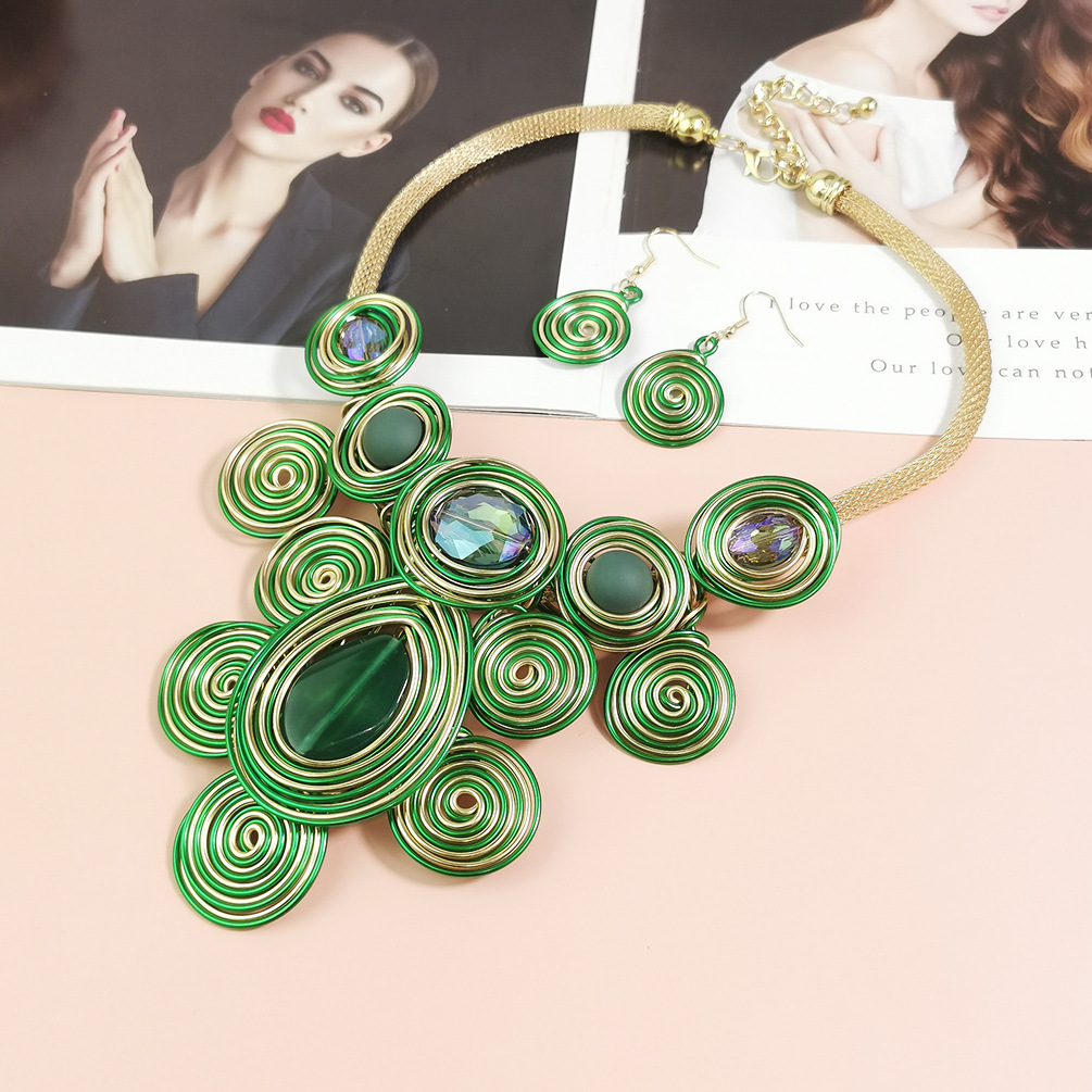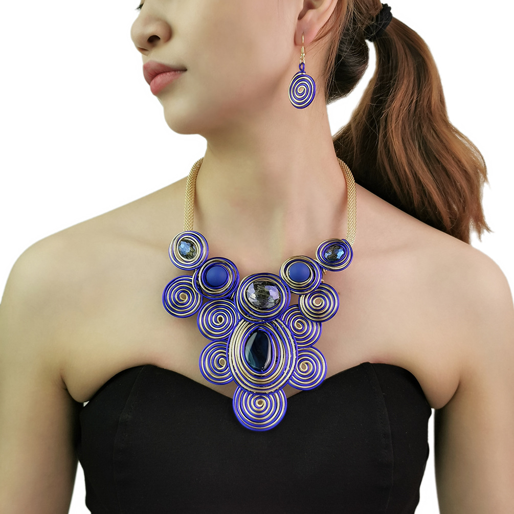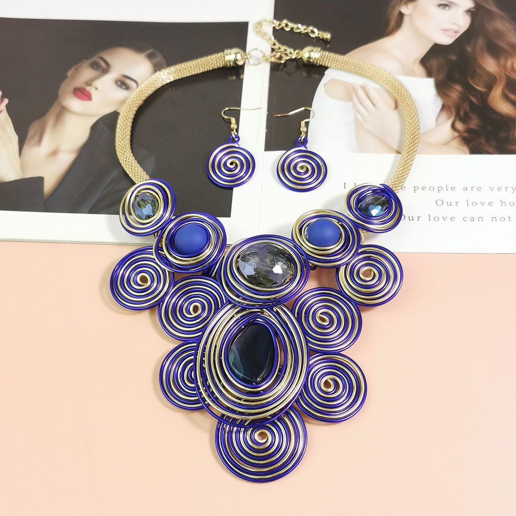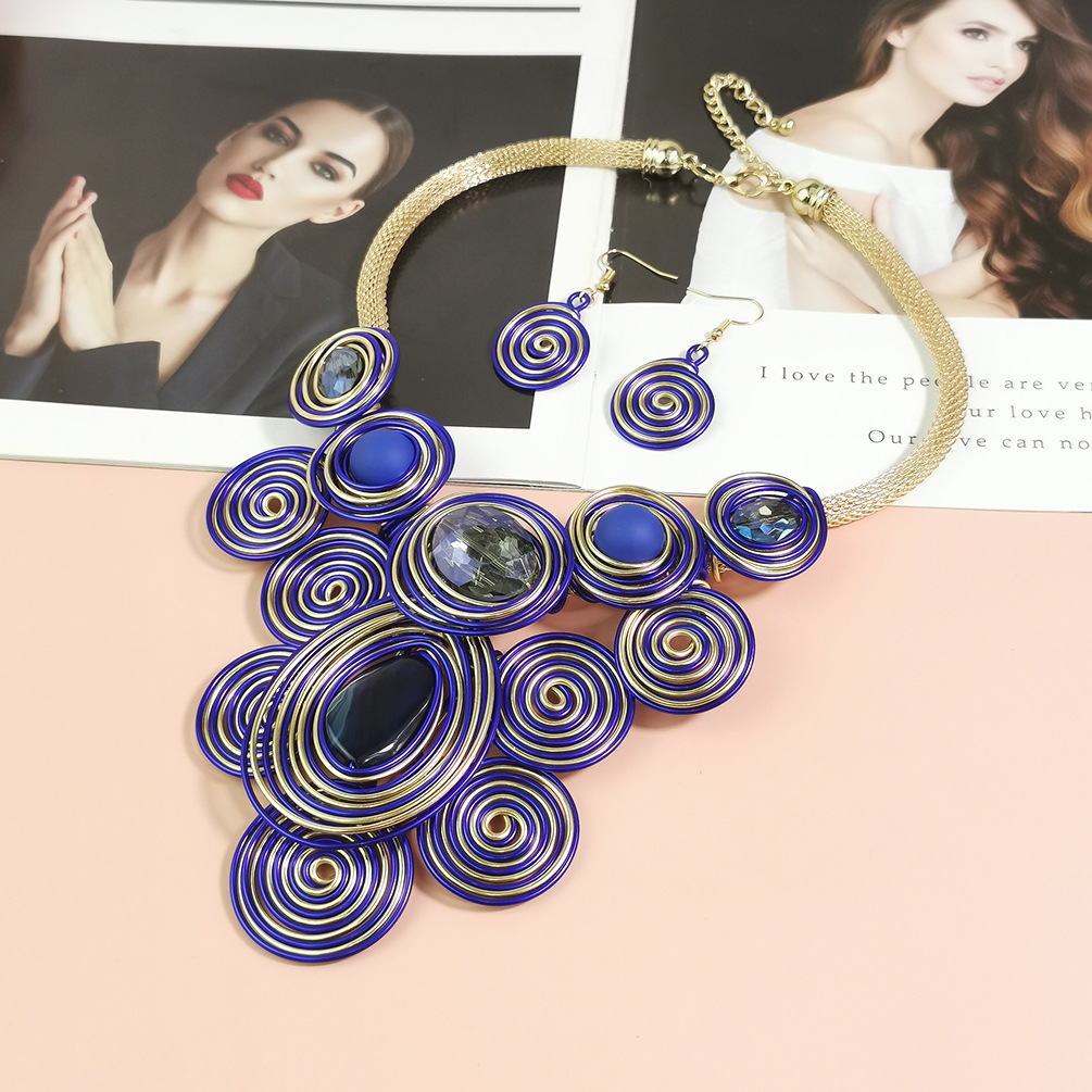 非洲夸张民族部落choker项圈 手工编织耳环项链套装亚马逊爆款