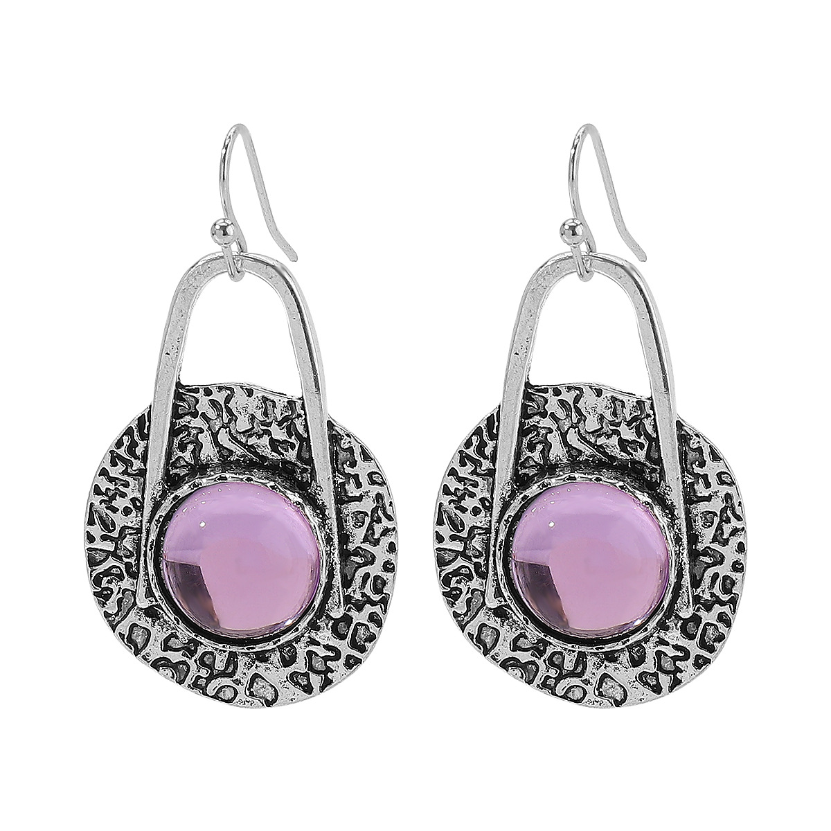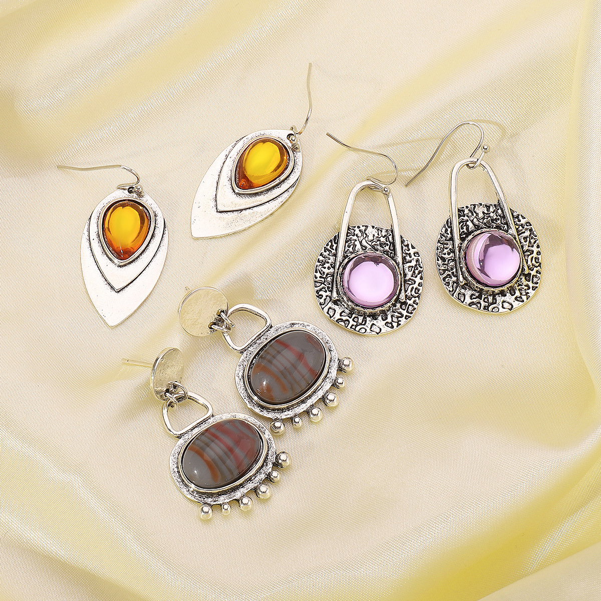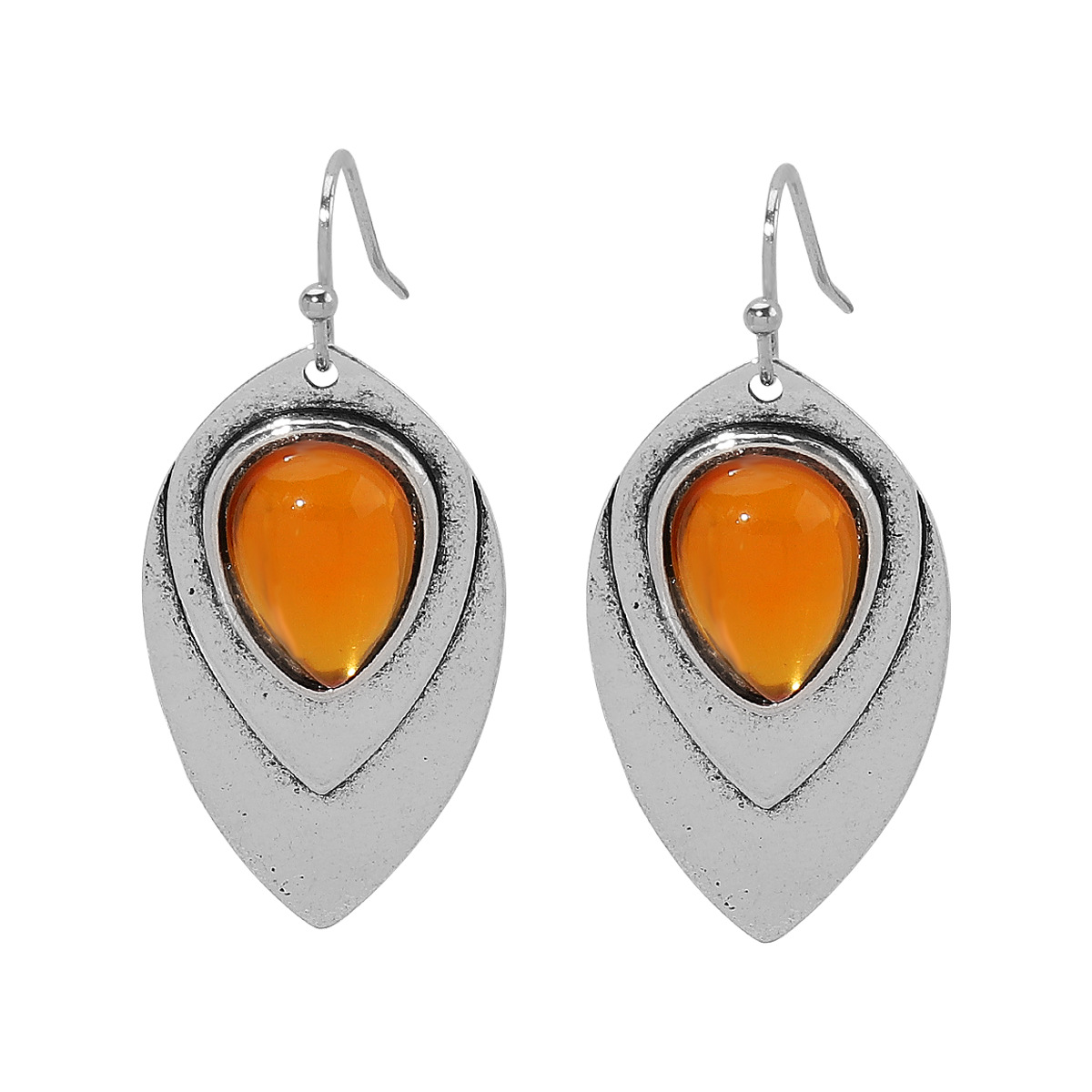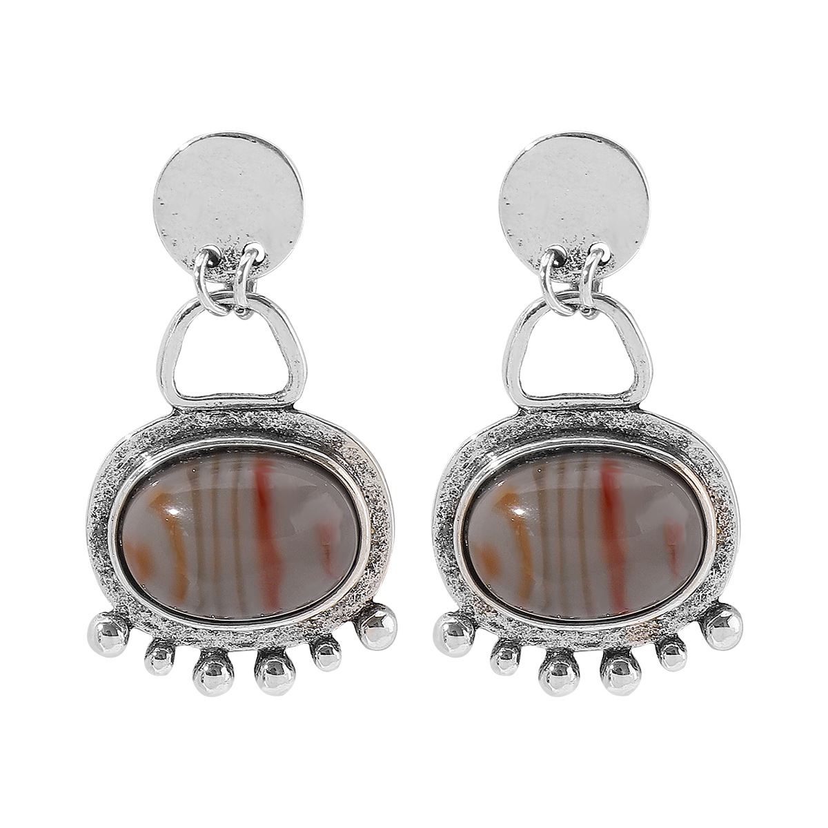 E12606欧美新款文艺复古珐琅天然石镶嵌耳环 民族风部落几何耳饰