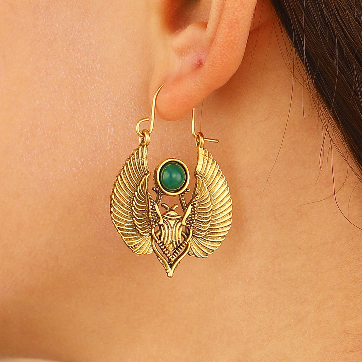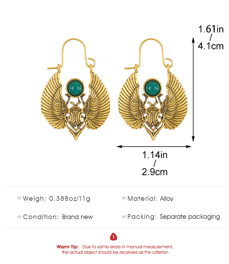 复古埃及灵感设计神圣翅膀飞蛾大耳环吉普赛部落妇女耳环派对礼物